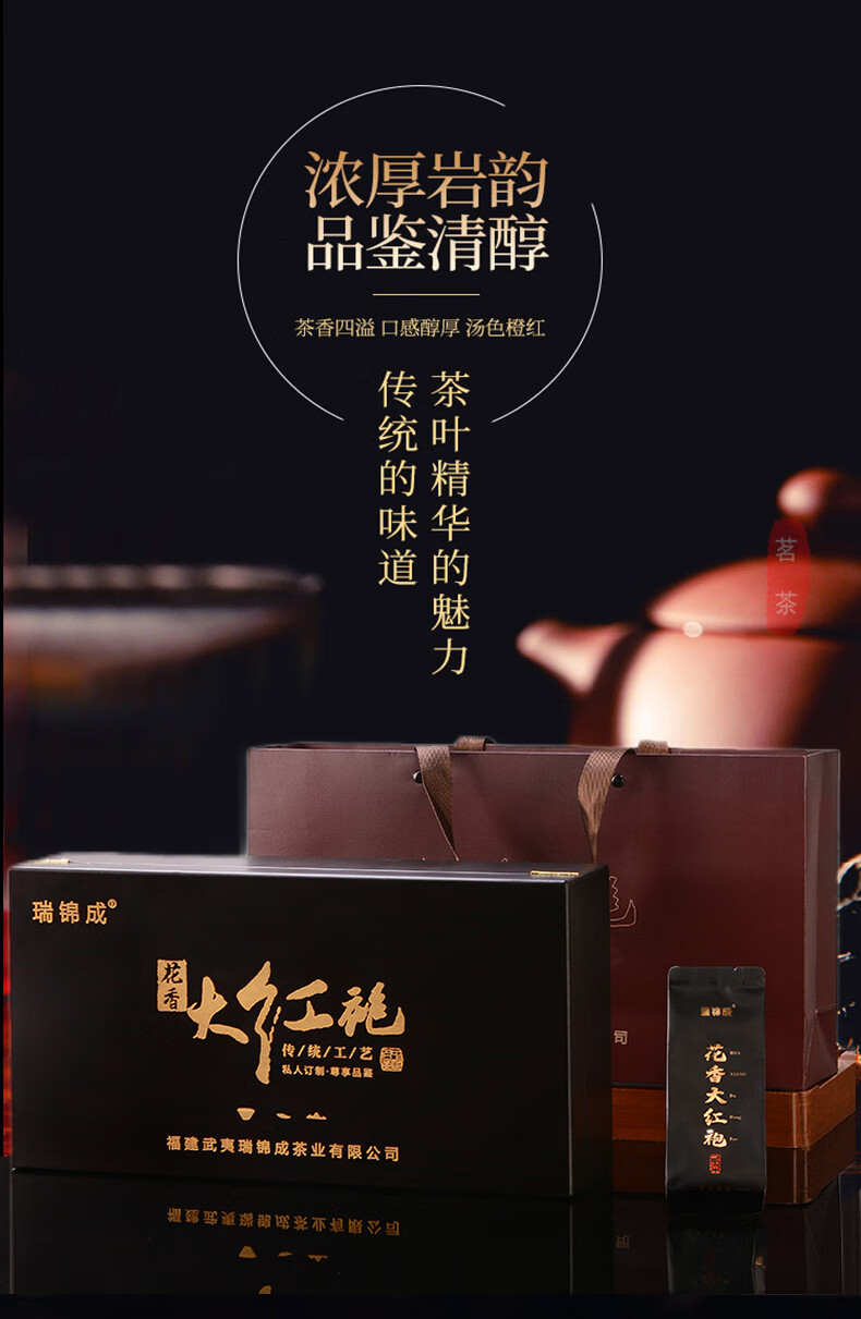 瑞锦成礼品茶花香大红袍茶叶泡袋木质礼盒装武夷山乌龙茶送礼茶叶 一等奖大红袍礼盒装 9g*20包