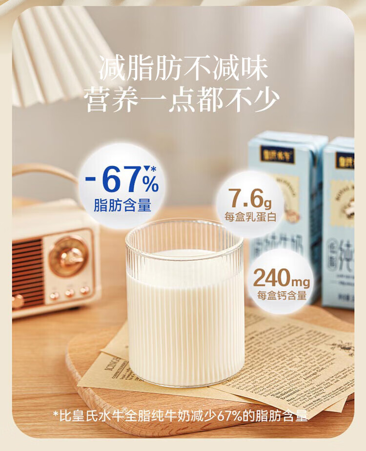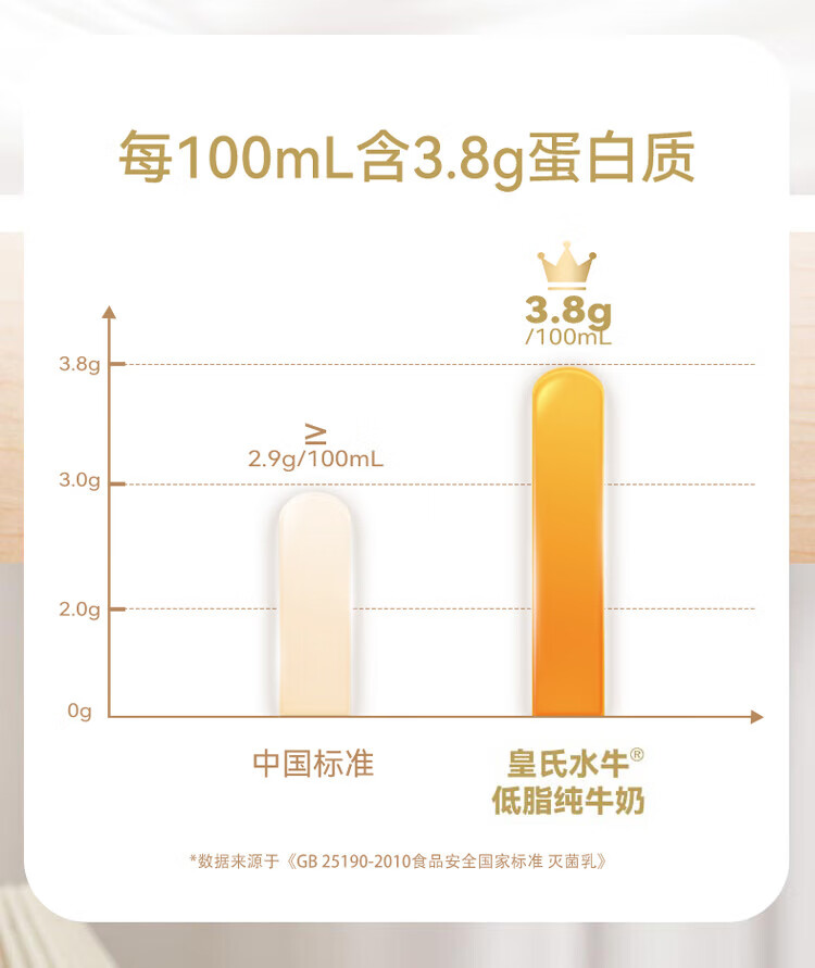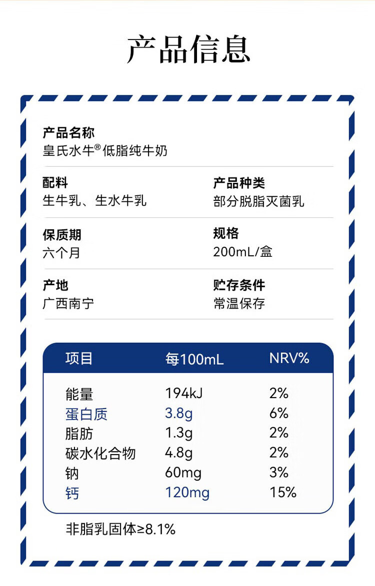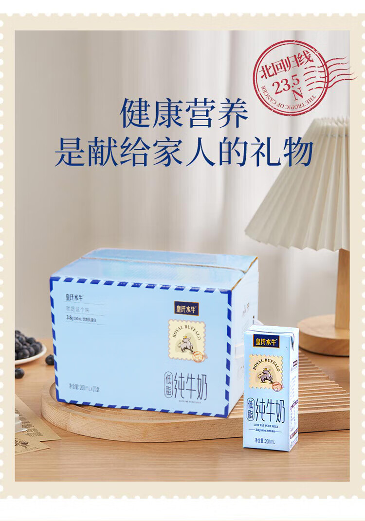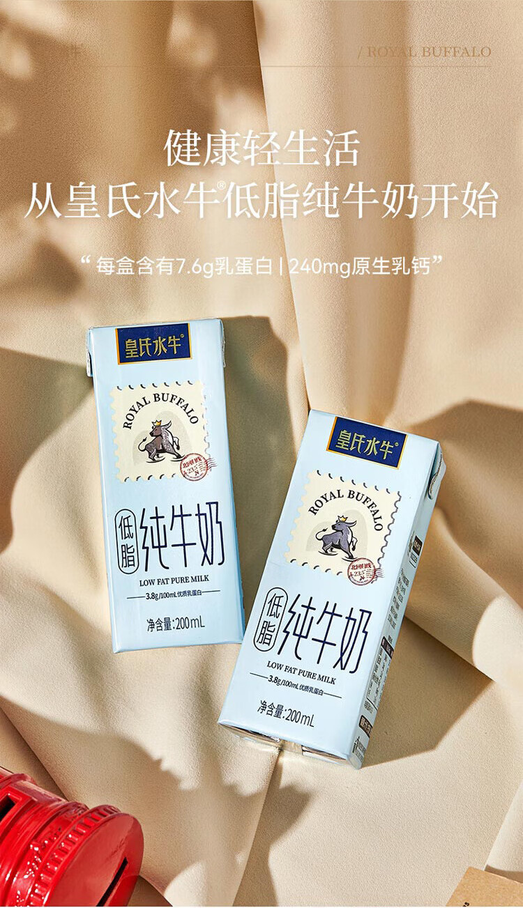 一只水牛皇氏水牛低脂纯牛奶3.8g蛋白添加水牛奶儿童学生早餐奶整箱 200ml *10盒x1箱