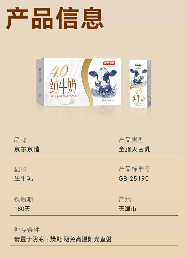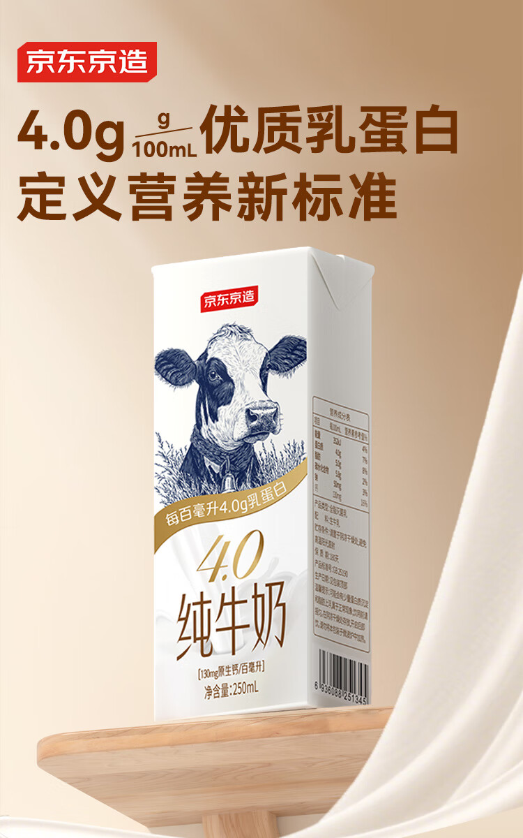京东京造 4.0g纯牛奶250ml*16 4.0g蛋白质130mg高钙性价比早餐奶