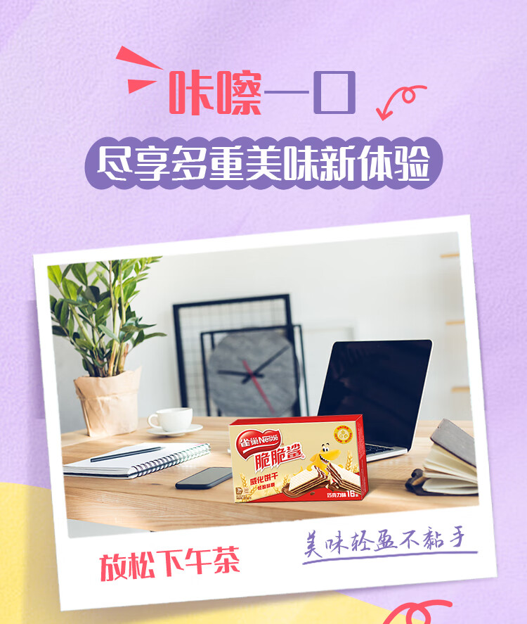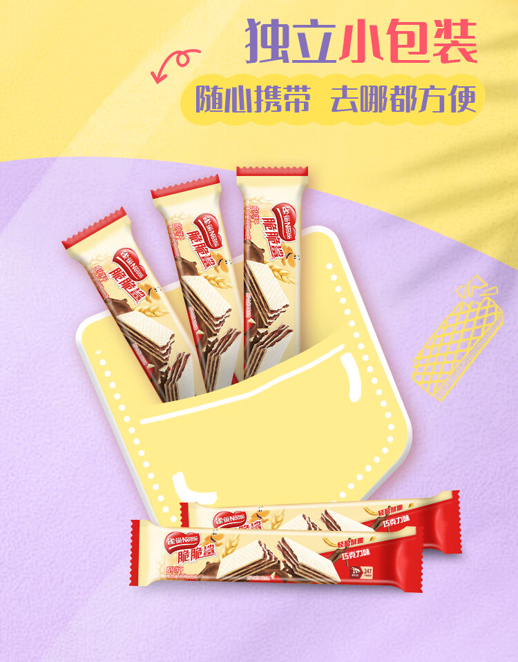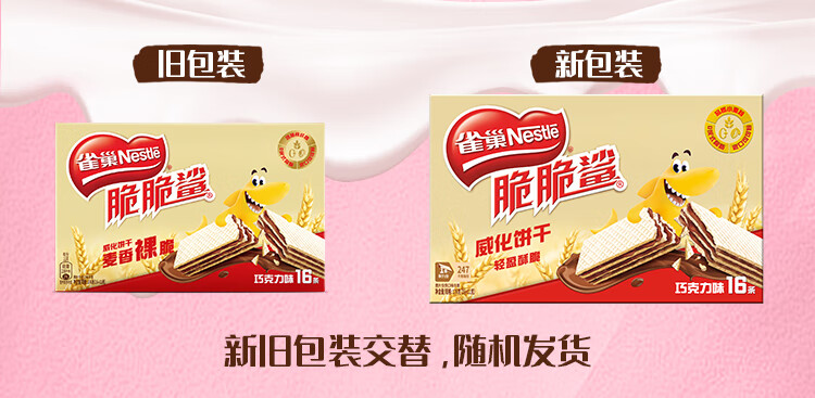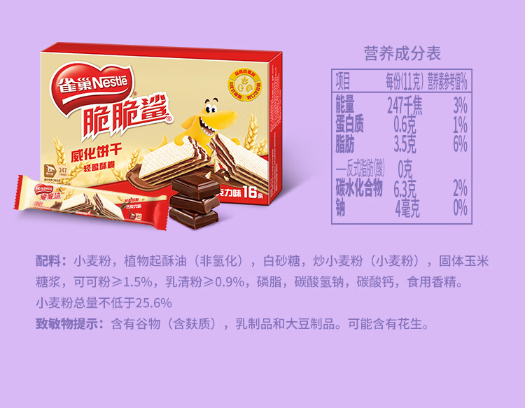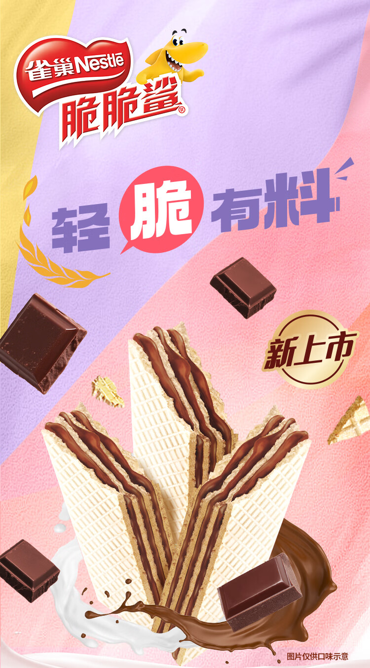 雀巢(Nestle)脆脆鲨夹心裸威化饼干巧克力味16条176g 办公室零食新年年货礼盒