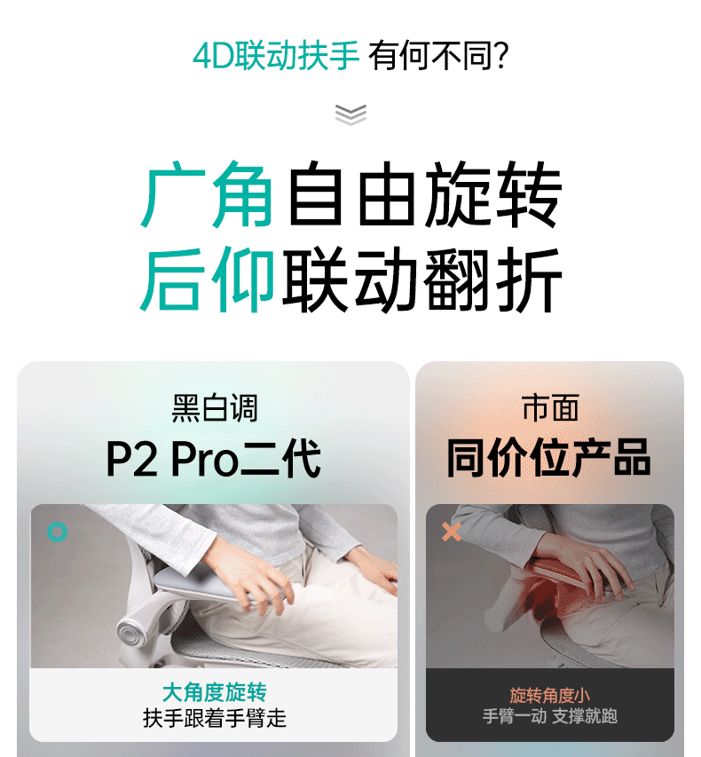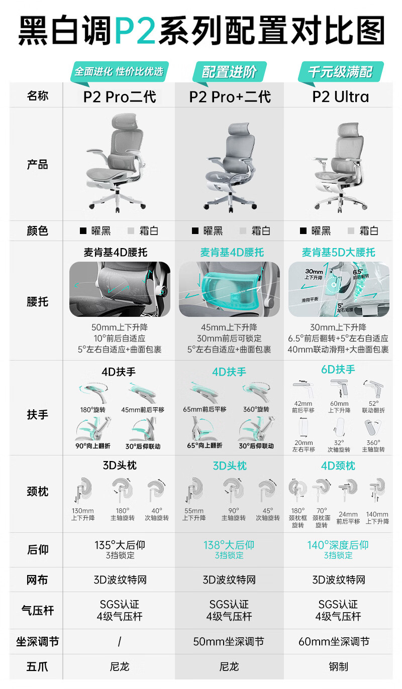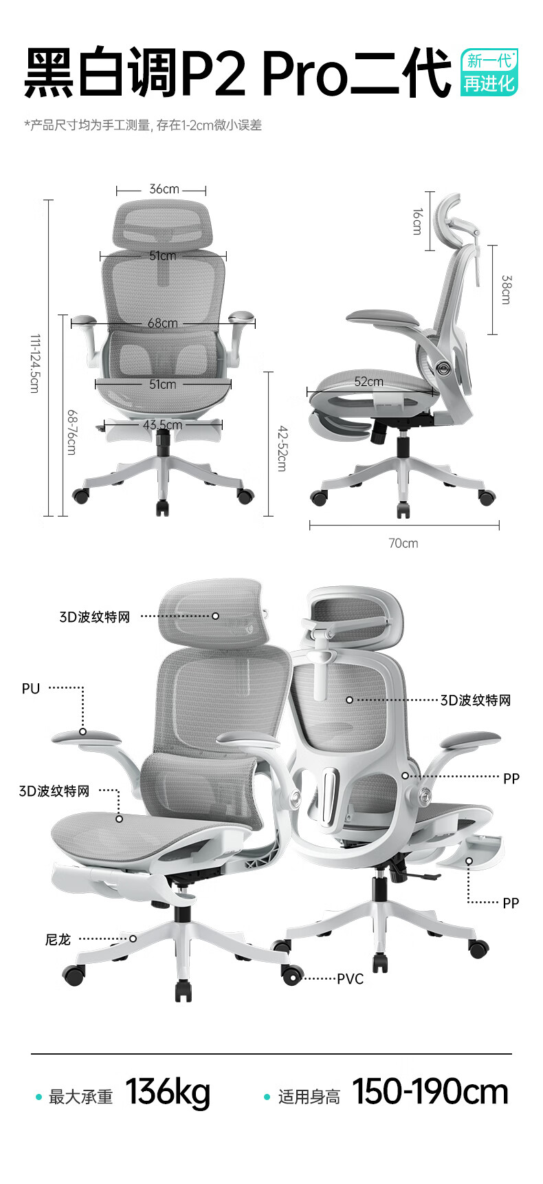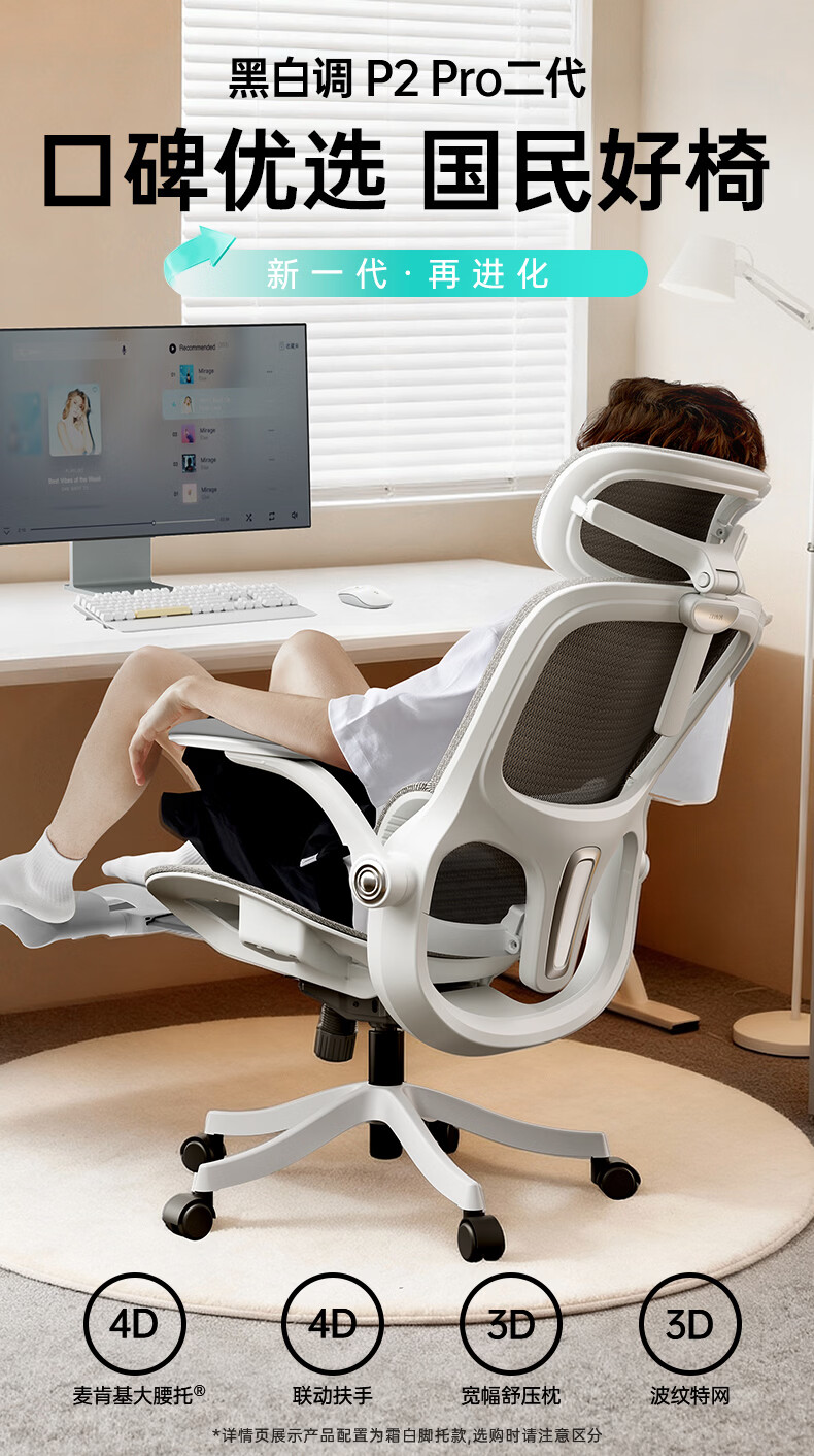 黑白调P2 Pro二代人体工学椅电脑椅办公椅电竞椅子人工力学座椅4D腰托