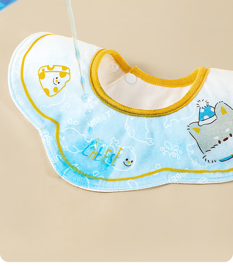 贝肽斯婴儿口水巾四季宝宝围嘴导湿速干纯棉防水围兜 飞象3条装 28*26cm