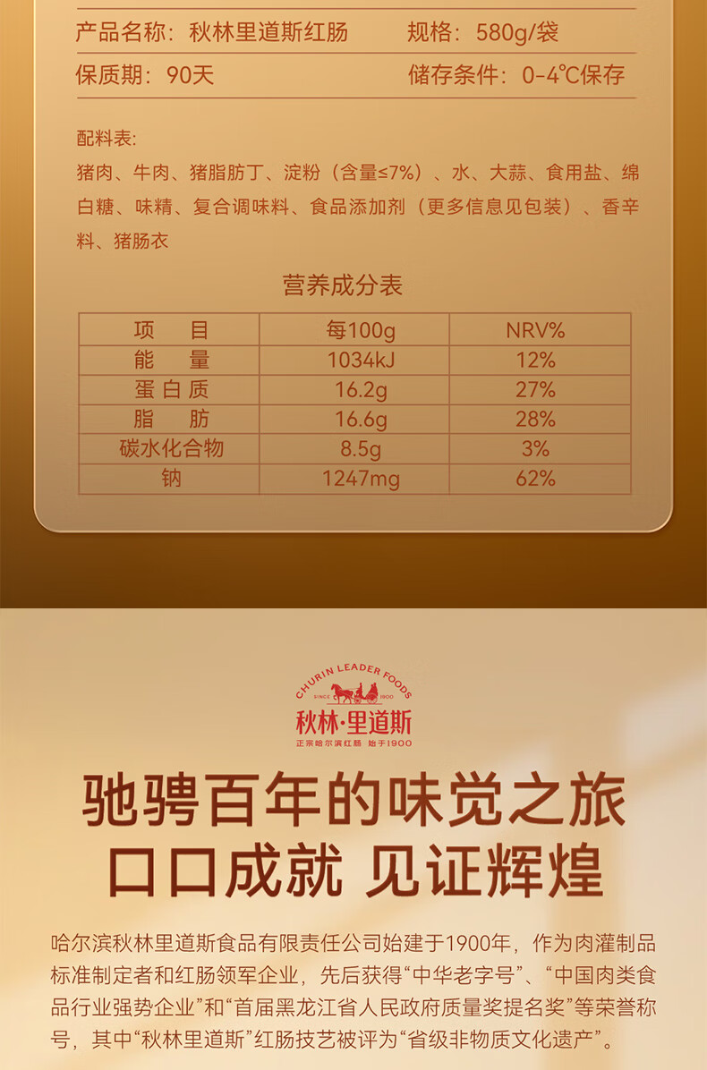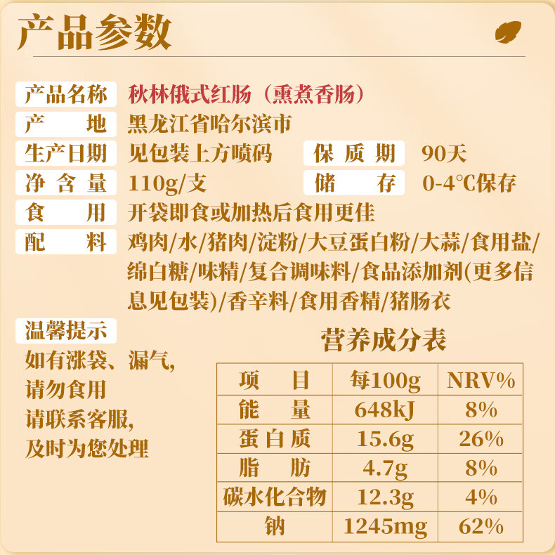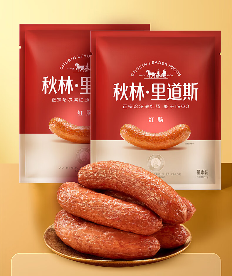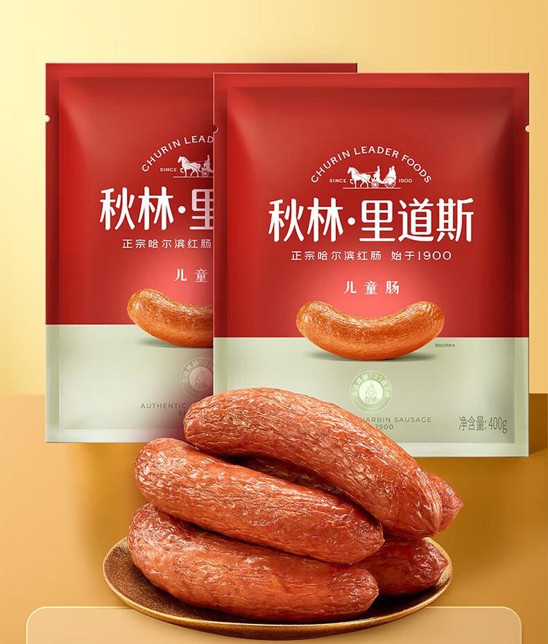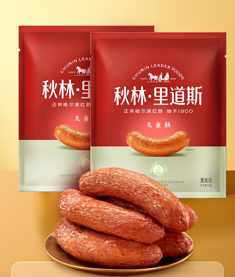 秋林里道斯哈尔滨红肠 东北特产肉肠 开袋即食速食火腿肠 猪肉牛肉香肠 540g【红肠80g+儿童肠80g+俄式红肠110g】各2支