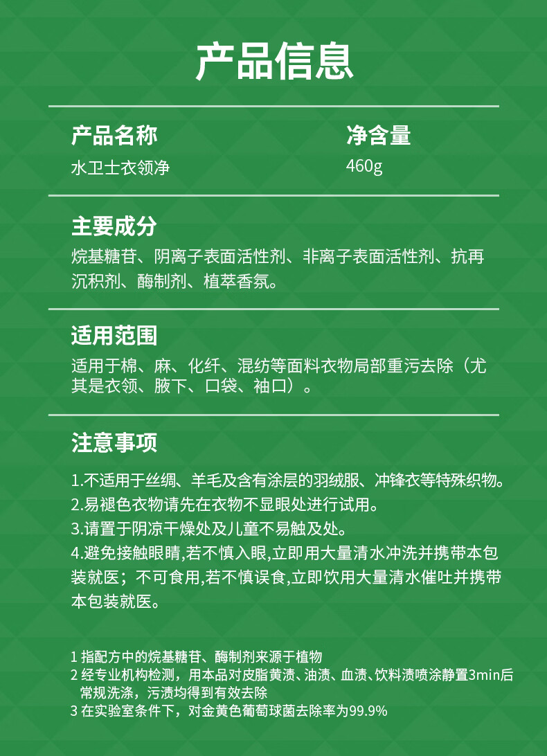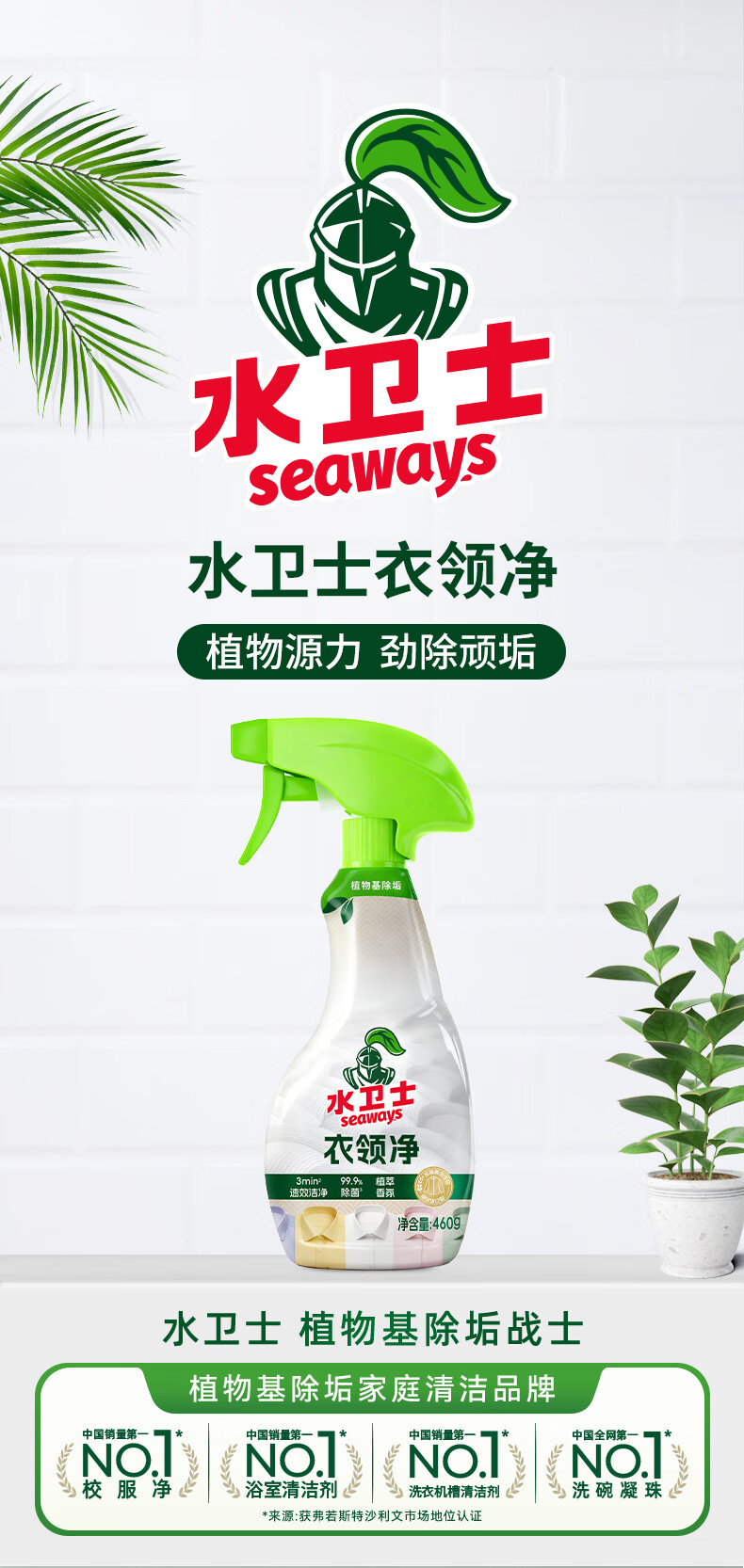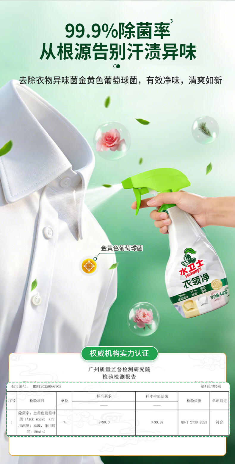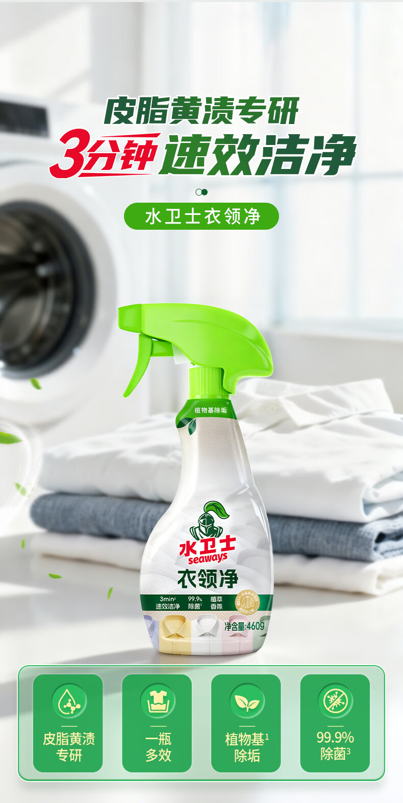 水卫士 衣领净深层去渍免揉搓 喷雾型衣领袖口助洗剂 衣领去黄丨460g*2瓶