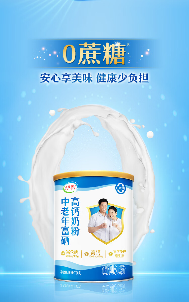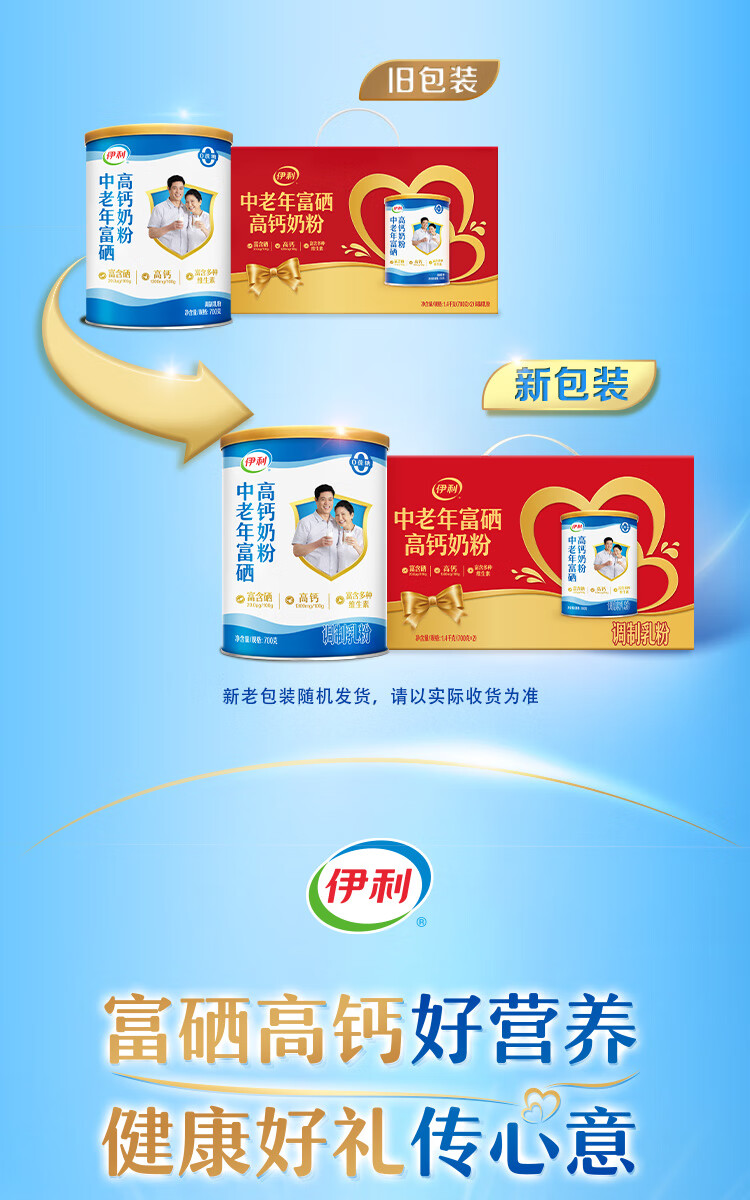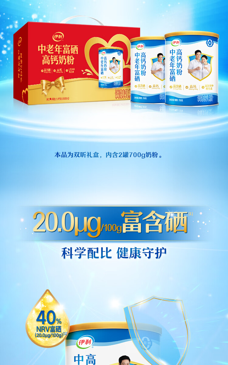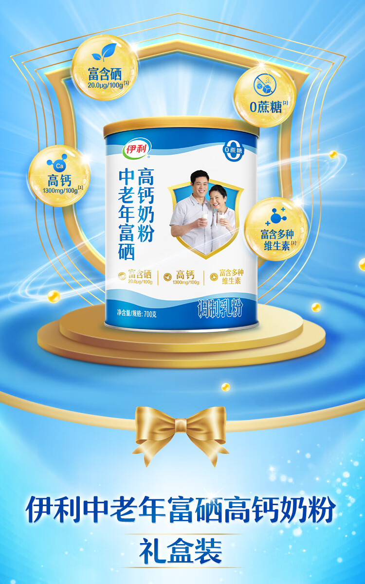 伊利中老年富硒高钙奶粉 多维营养 0蔗糖健康营养早餐 礼品 【礼盒装】送礼送健康-700g*2