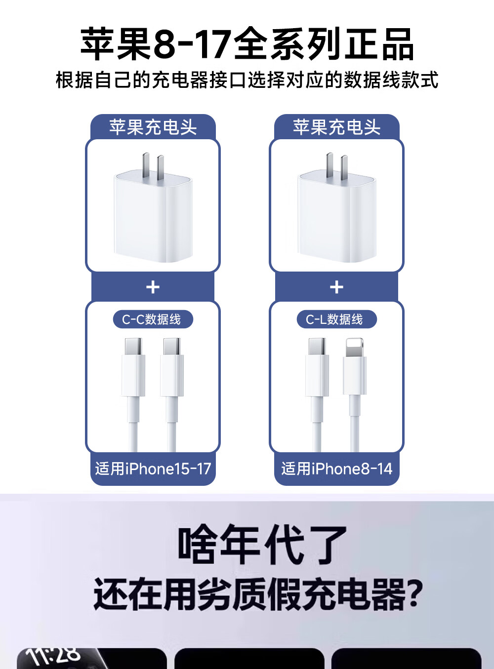 尊匠苹果充电器6-17系列正品充电线氮化镓30/40W快充线PD套装适配原装iPhone14ProMax手机充电头数据线 【苹果6-14系列】20w快充头+闪充线丨1米套装