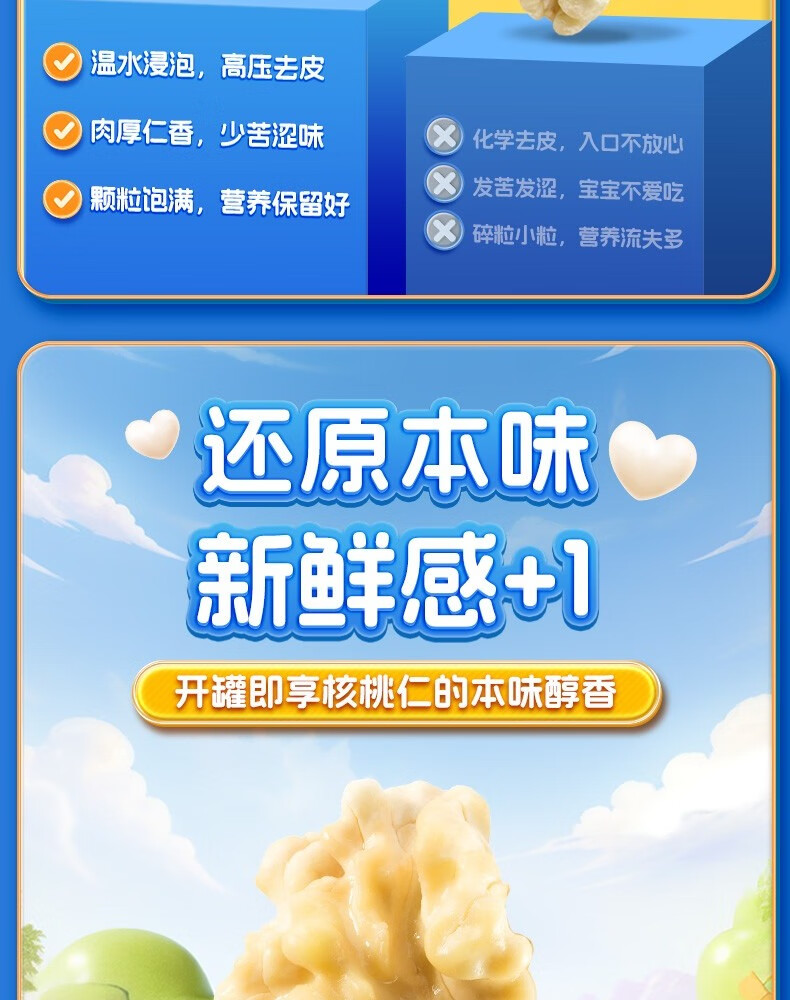 沃隆 每日坚果 核桃仁原味坚果炒货办公室休闲健康孕妇健康零食 【清甜不涩】去皮核桃100g*3