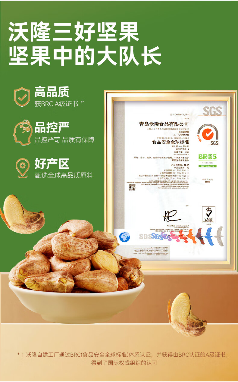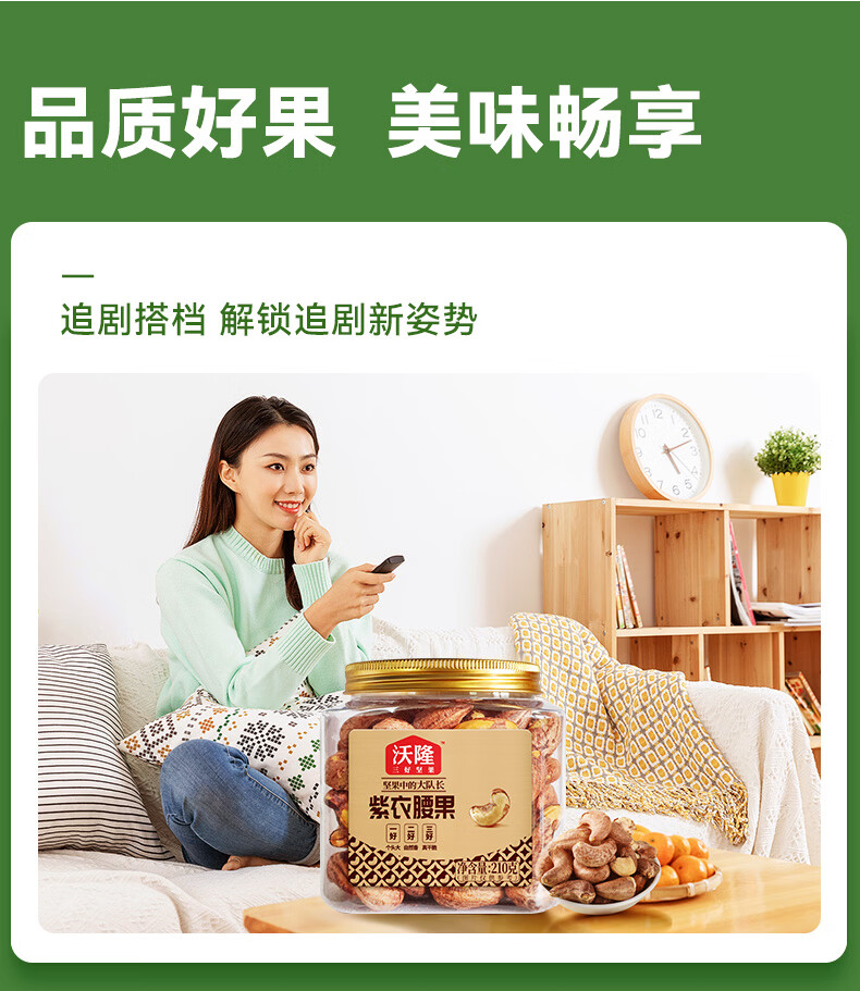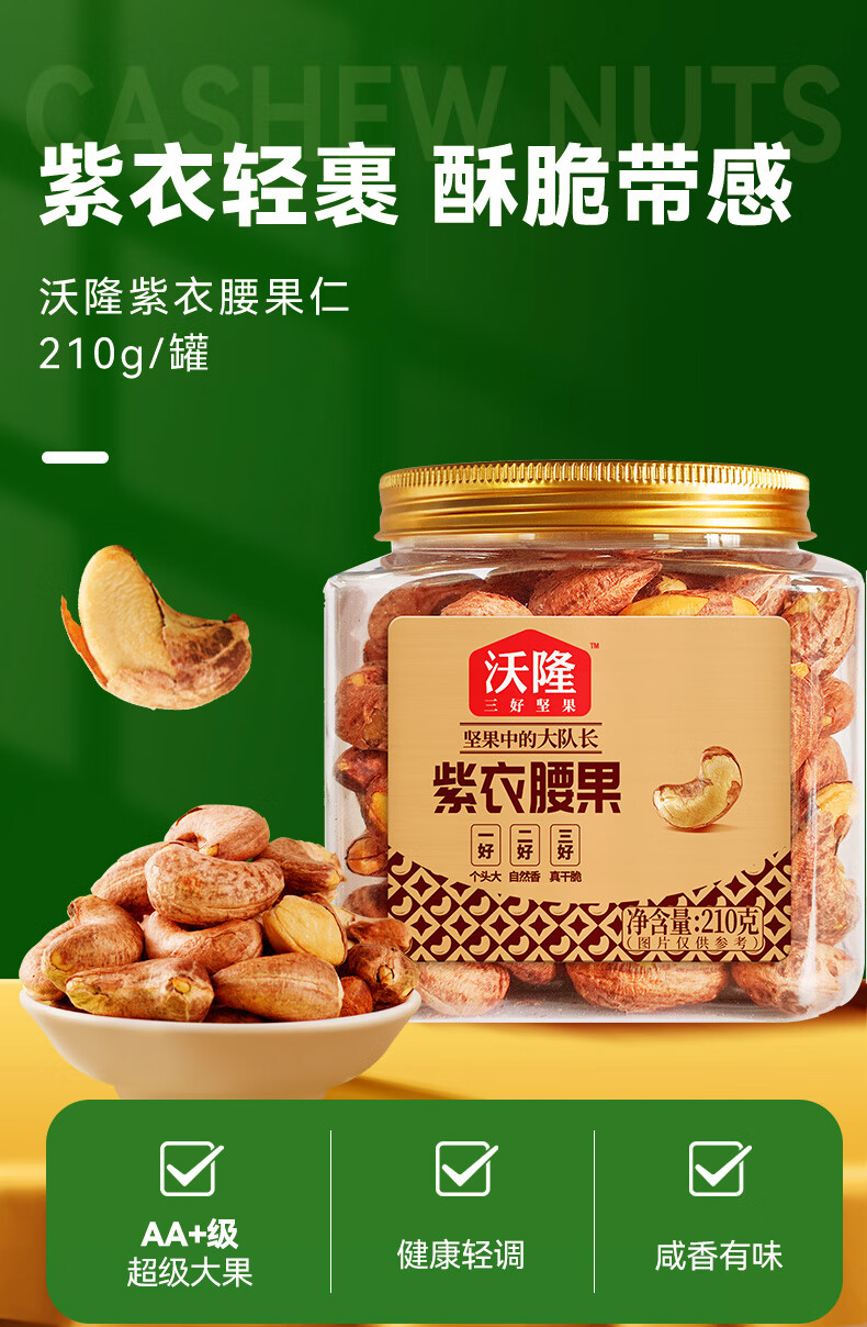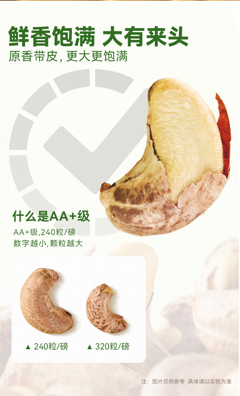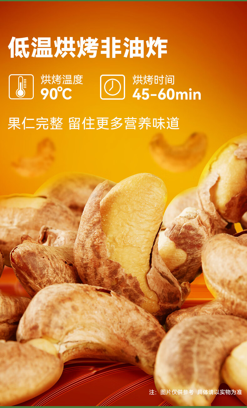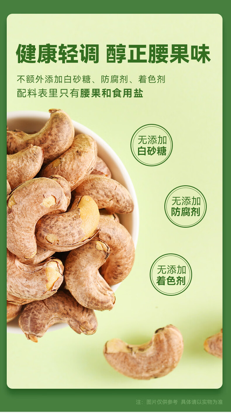 华味亨500g带衣腰果桶装约22小包独立包装送礼坚果大颗粒果仁年货零食 500g桶装