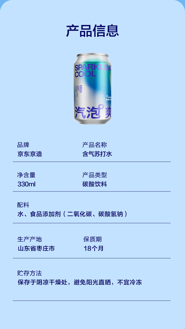 京东京造鲜来多气泡苏打水饮料330ml*6罐【绵密汽泡】0糖0脂0卡原味无糖