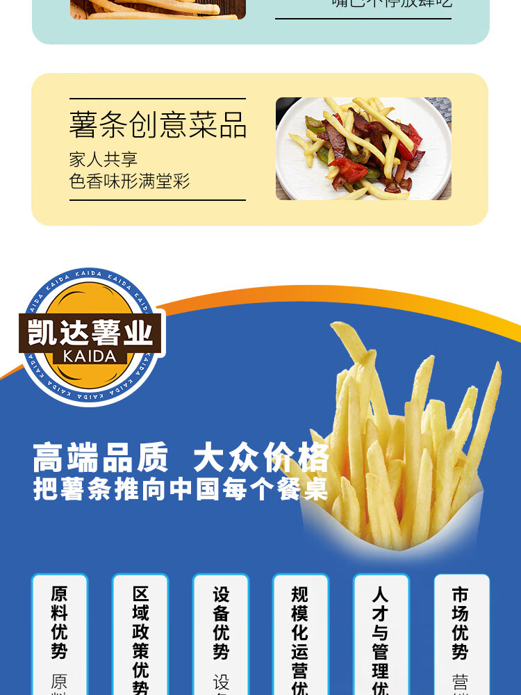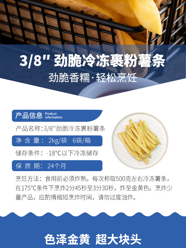 凯达薯业3/8裹粉粗薯劲脆冷冻薯条半成品4斤/袋空气炸锅油炸食品方便速食