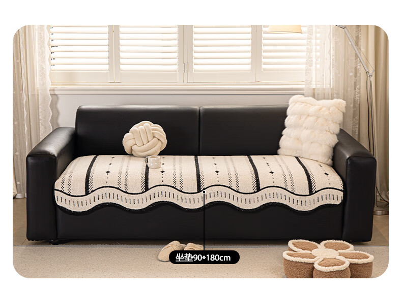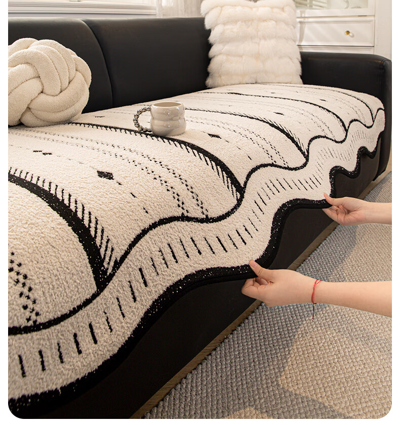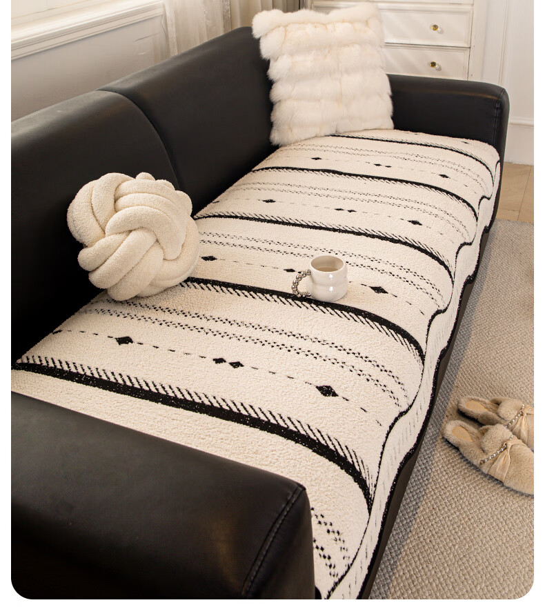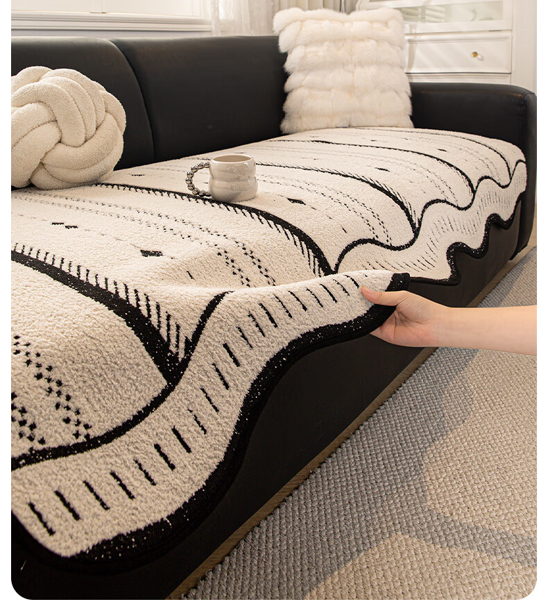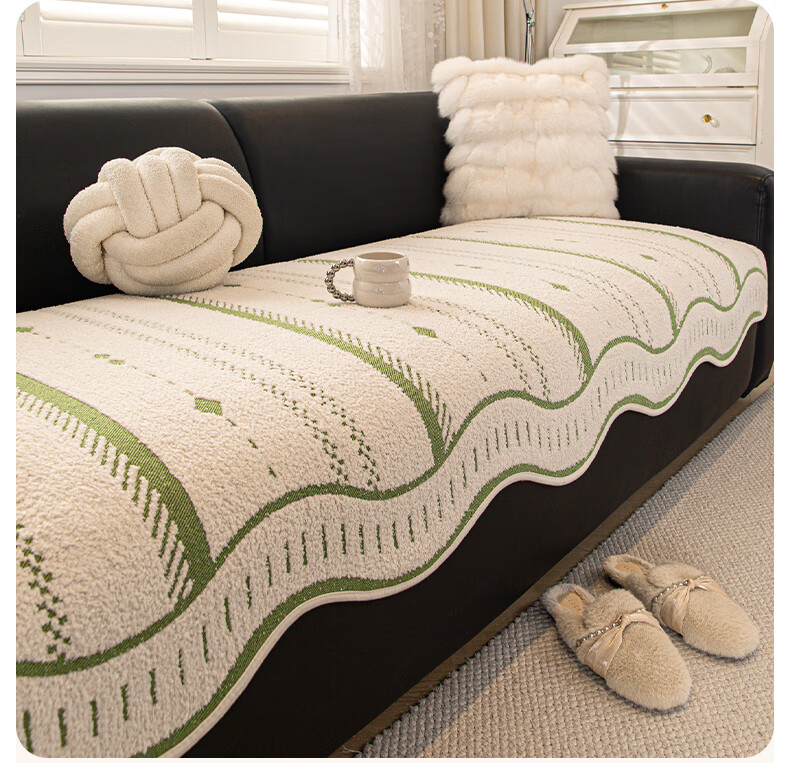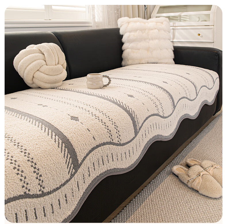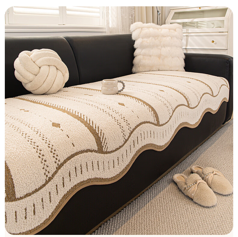 无印良品2025新款秋冬款薏米绒沙发盖布巾防滑沙发套罩加厚冬季毛绒沙发毯 山海-米咖色【加厚薏米绒软糯温暖不静电】 180*480cm【适合五人位】