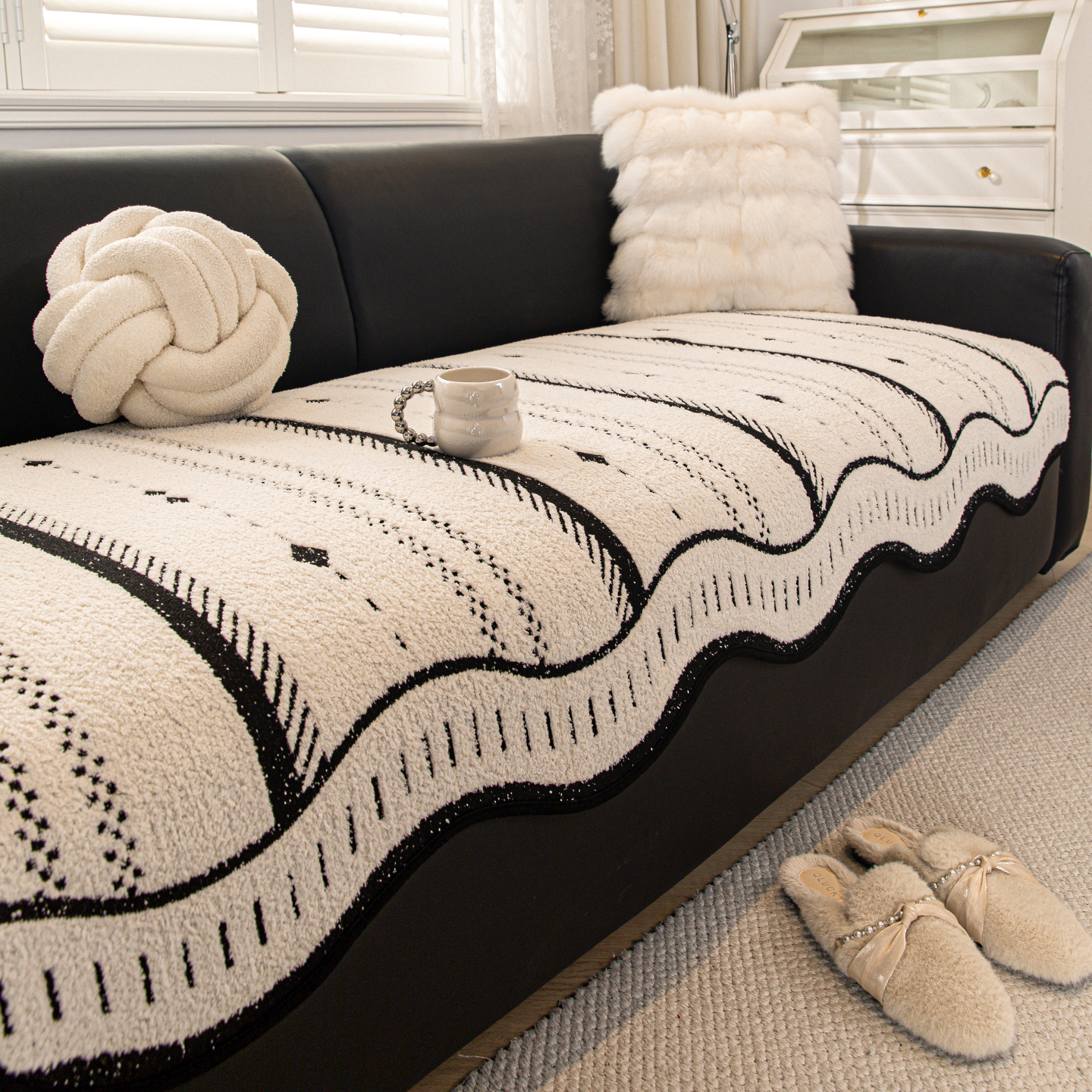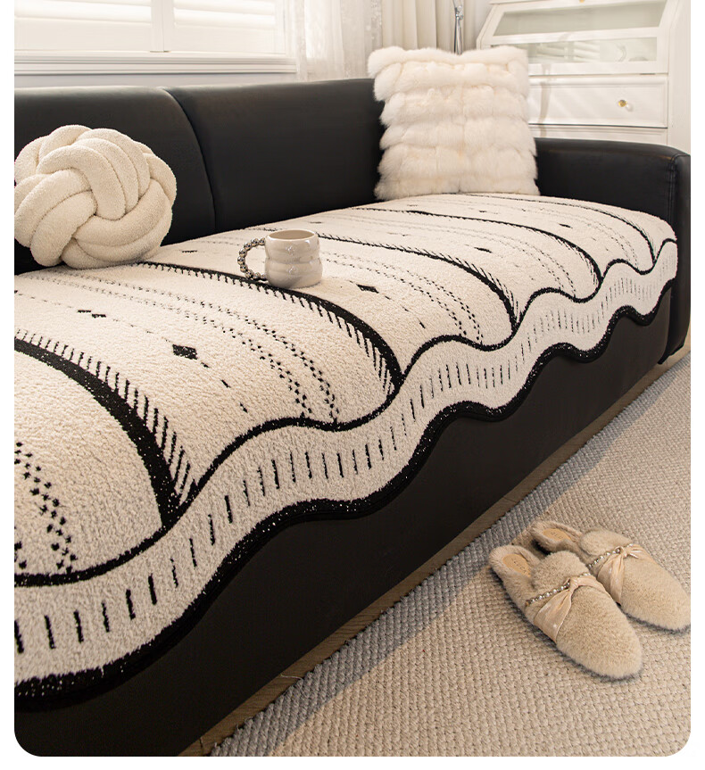 金拾美月高级异形沙发垫冬2026新款保暖坐垫盖巾固定防滑一片式毛绒套罩 异形心点-黑色 70cm*70cm