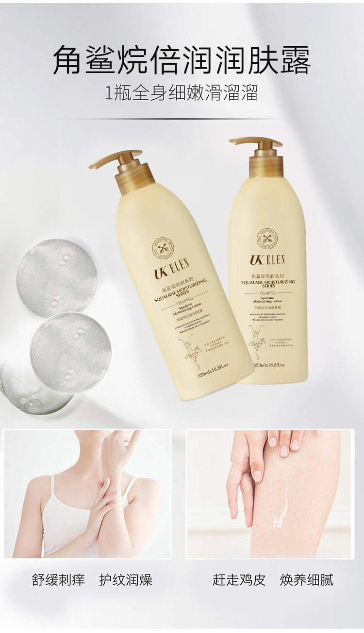 UKELEN角鲨烷倍润润肤露保湿止痒补水嫩肤身体乳 清香型 【两瓶实惠】 520ml*2支