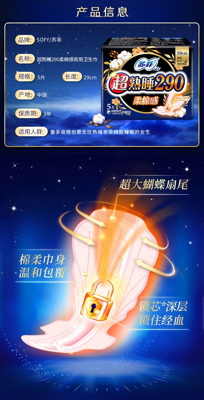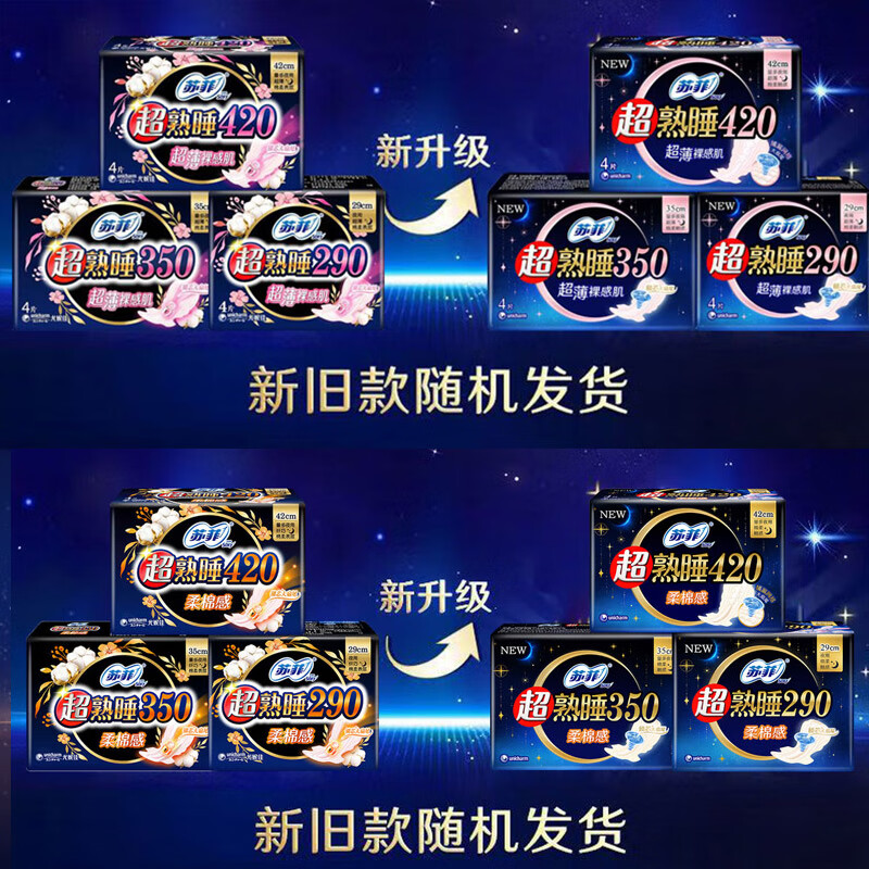 苏菲卫生巾超熟睡绵柔夜用290mm量多量大超长夜用420姨妈巾学生组合装 夜 290mm 10片 +日230mm日夜组合30片
