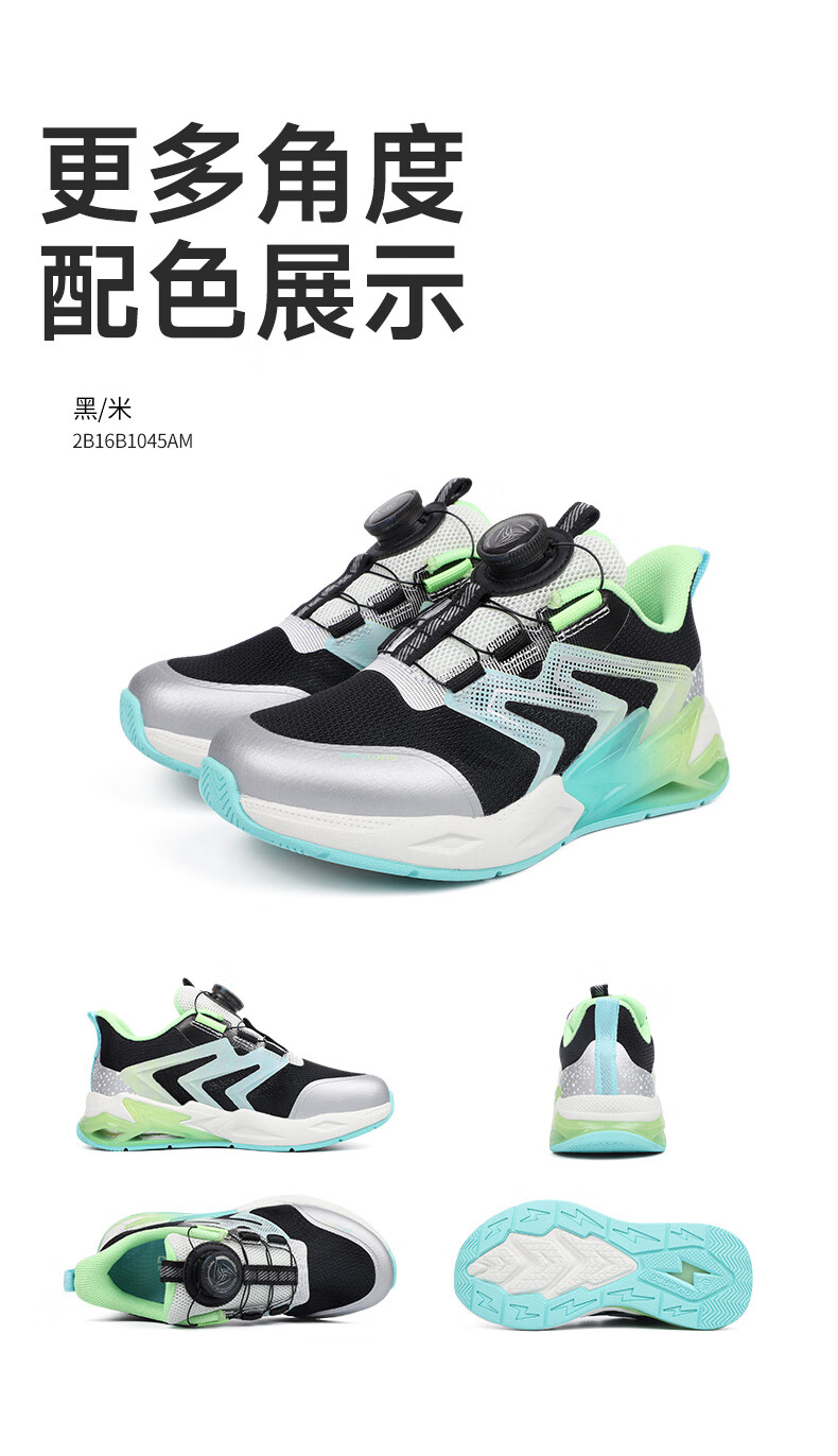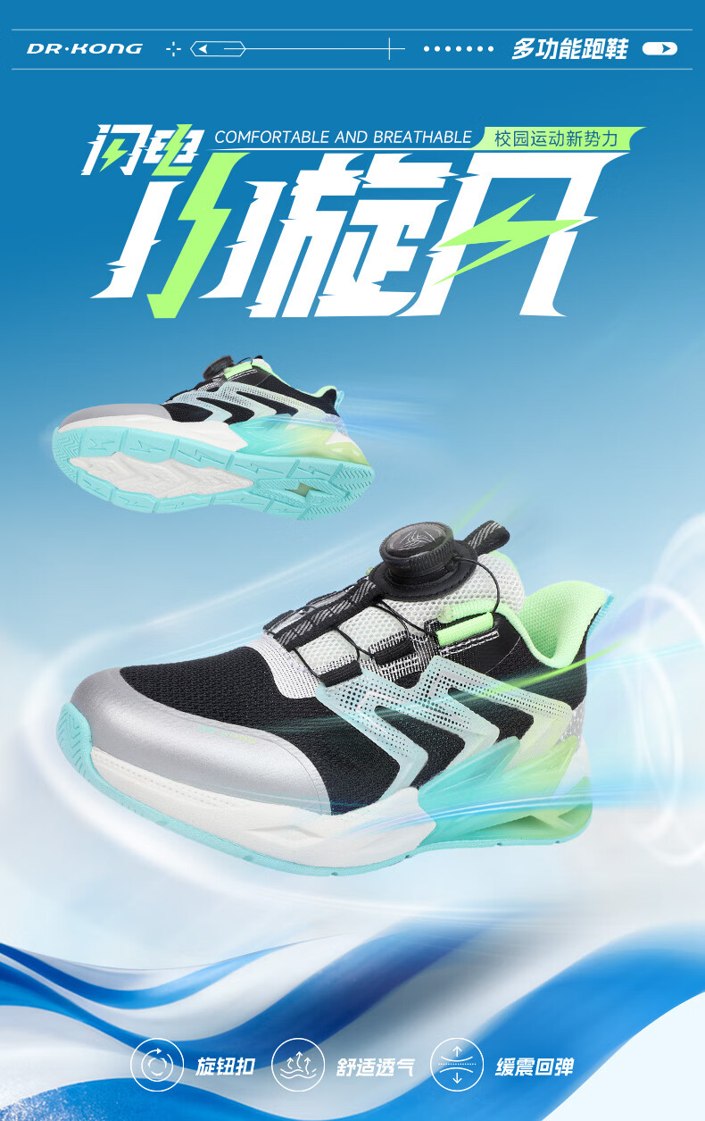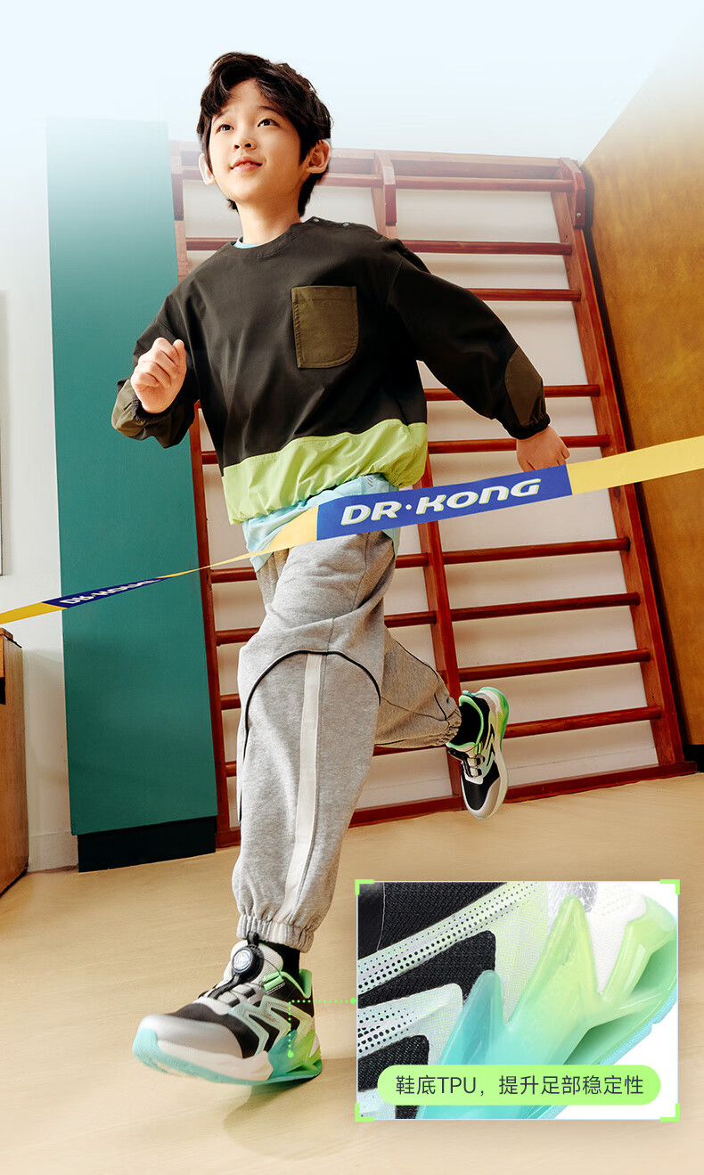 江博士(DR·KONG)春季男童潮流儿童运动鞋 免系旋钮扣鞋带儿童鞋 黑/米 32 脚长约19.6-20.1