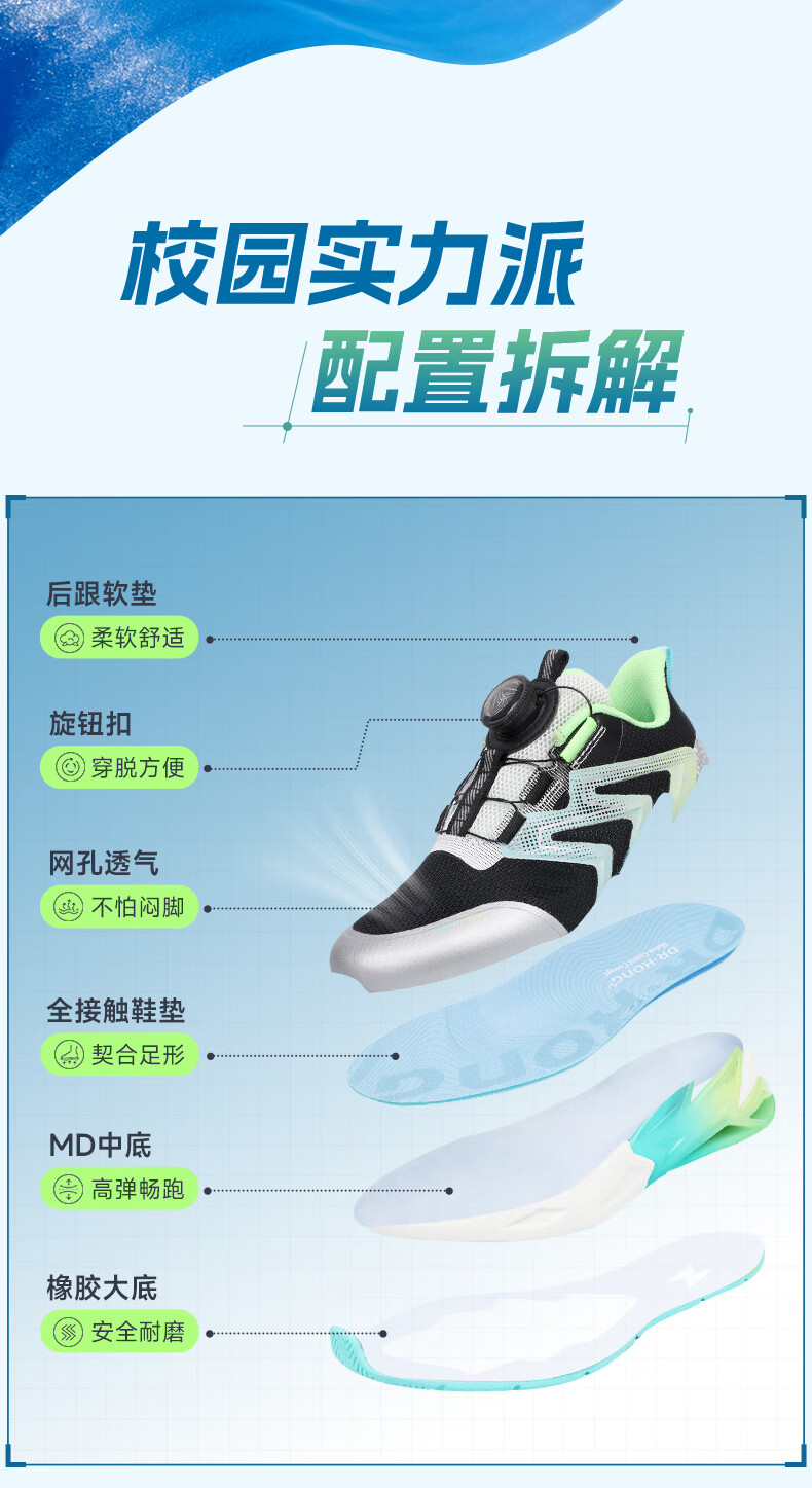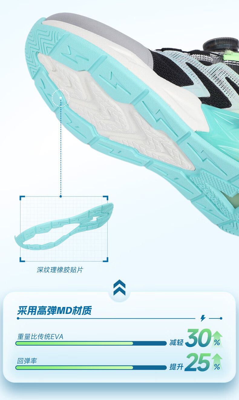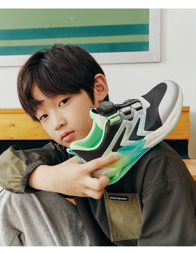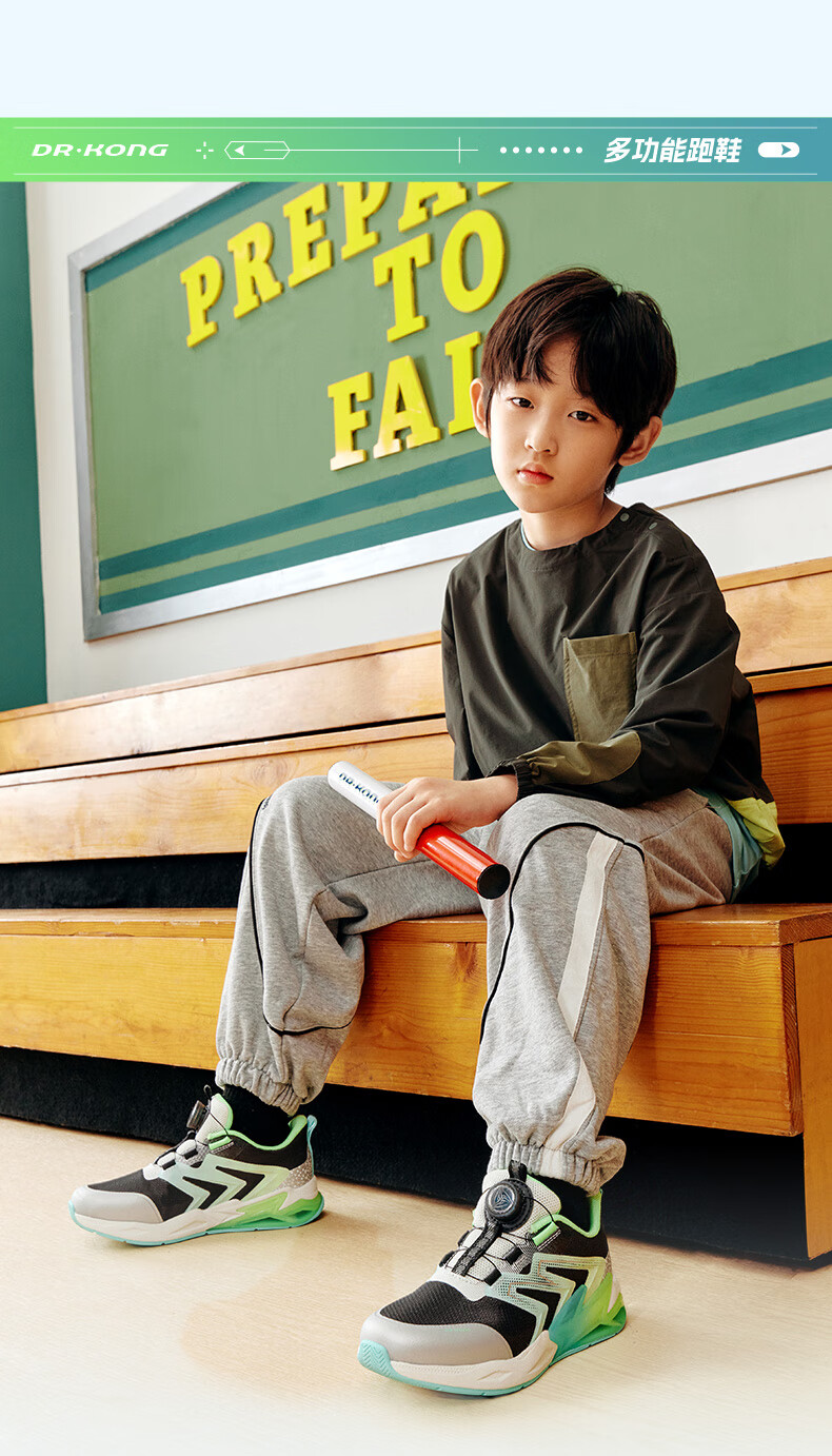 江博士(DR·KONG)春季男童潮流儿童运动鞋 免系旋钮扣鞋带儿童鞋 黑/米 32 脚长约19.6-20.1