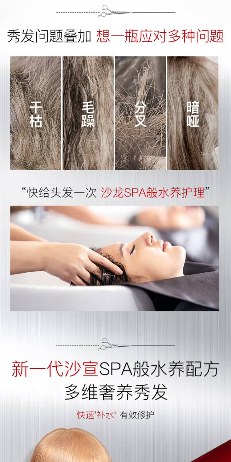 沙宣(VS)洗发水 去屑洗发露 大红瓶男士女士通用红瓶 洗发皂 洗发膏 【大包装】修护水养洗发水750g