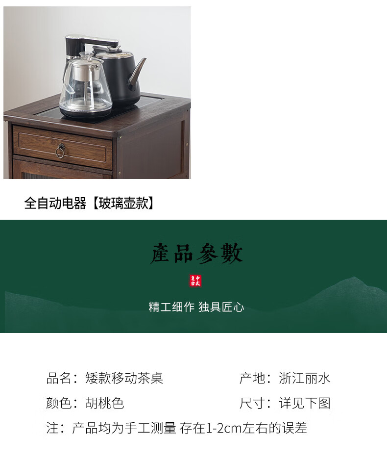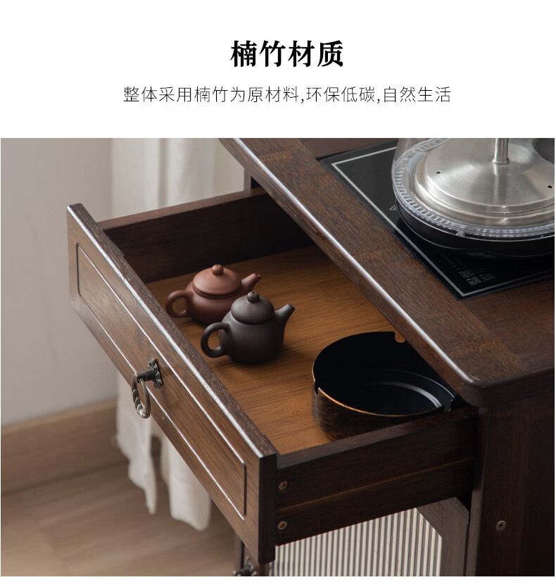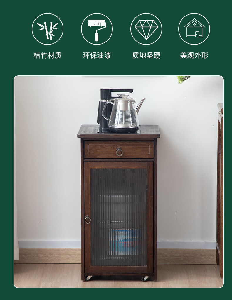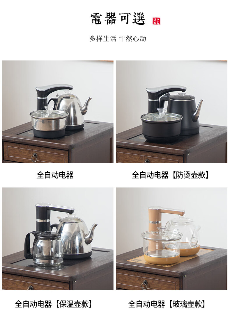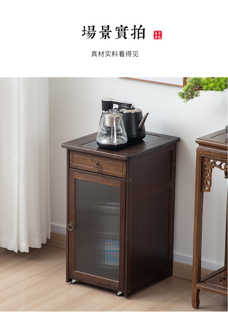 咏幻家用烧水壶一体茶边柜茶桌边柜移动茶水柜泡茶台办公室茶具置物柜 带门带抽茶水柜[底部上水煮茶壶款]
