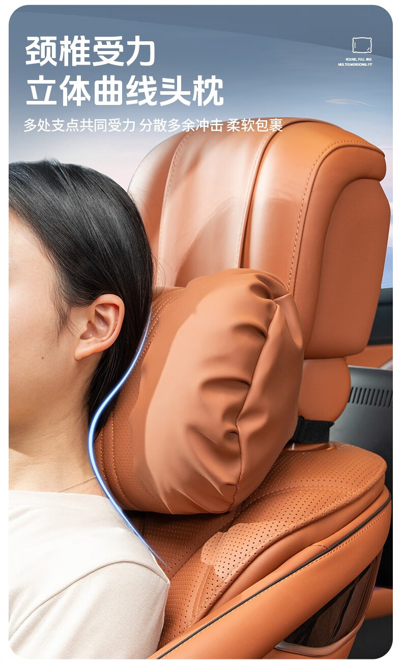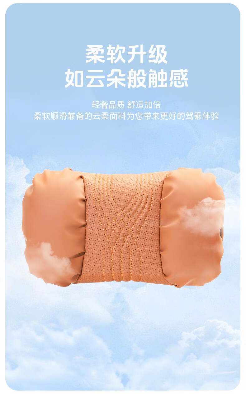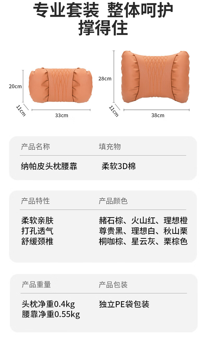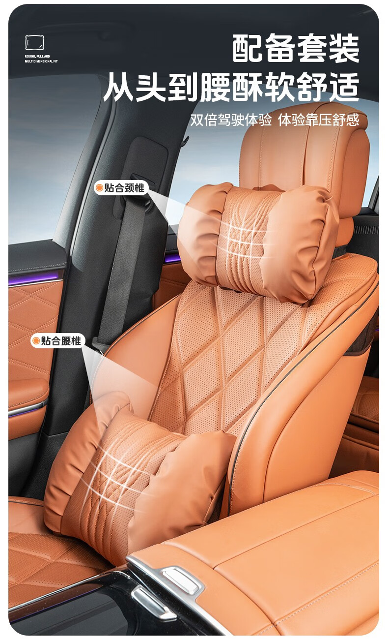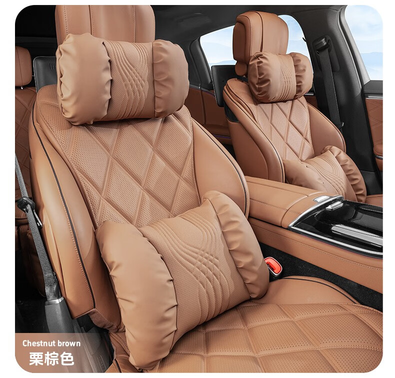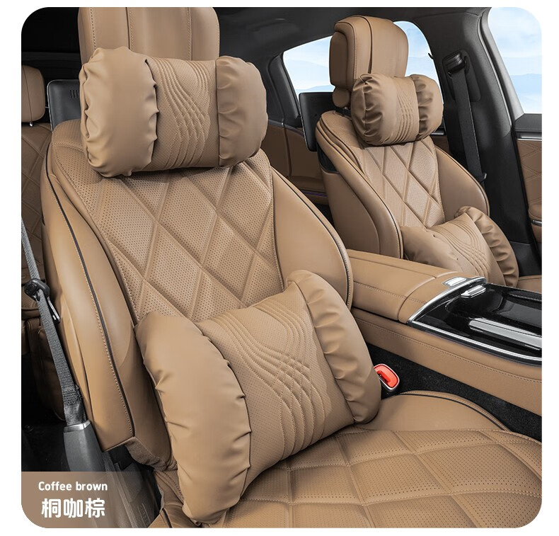 齐选汽车头枕腰靠车载座椅护颈枕靠背腰垫纳帕皮四季通用透气高档 【桐咖棕】 头枕腰靠一套