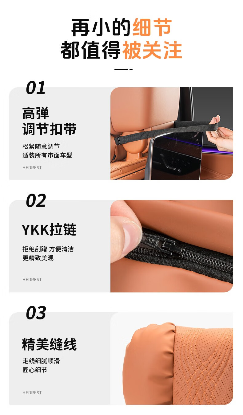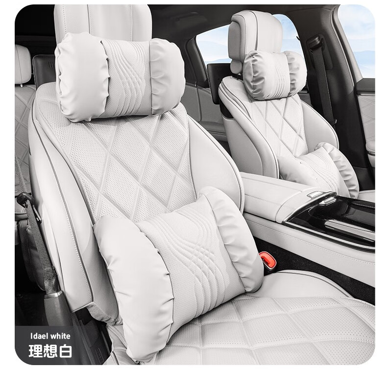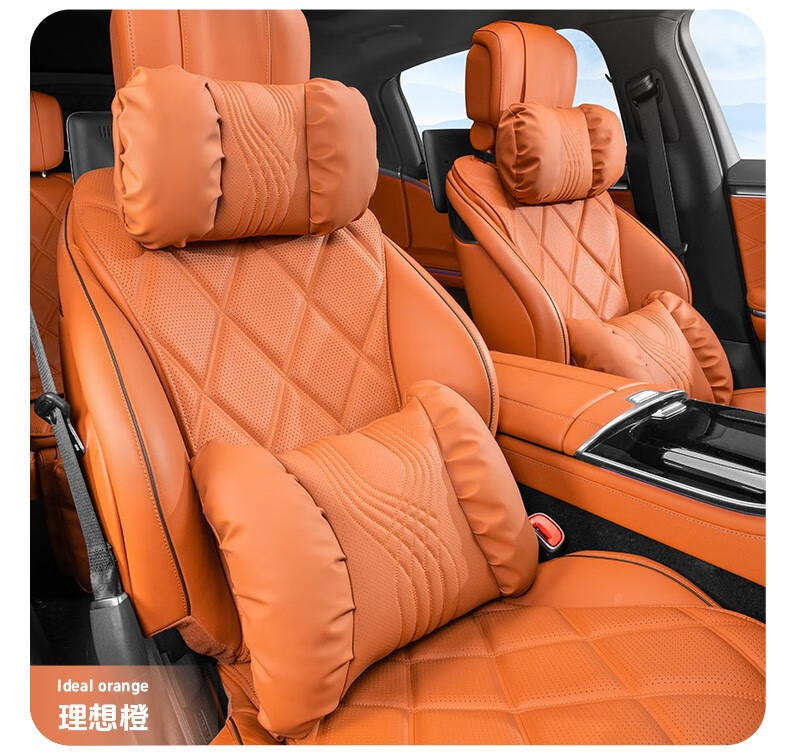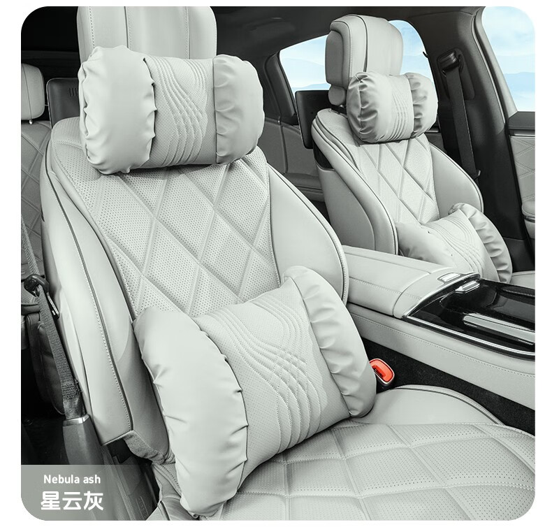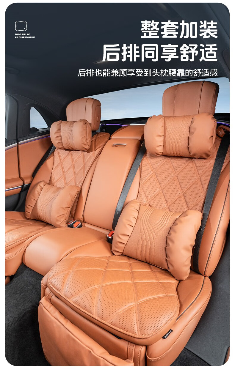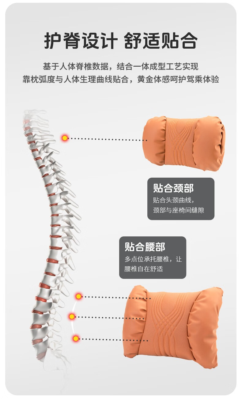 齐选汽车头枕腰靠车载座椅护颈枕靠背腰垫纳帕皮四季通用透气高档 【桐咖棕】 头枕腰靠一套