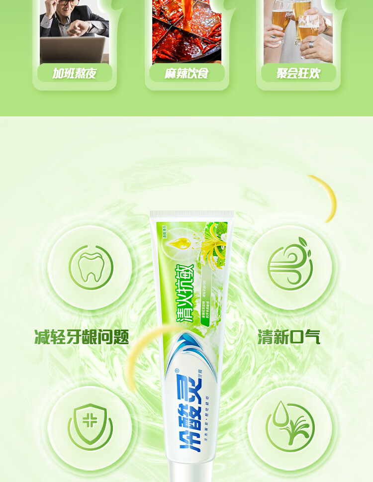 冷酸灵极地白抗敏感牙膏多效护理套装清新口气洁白牙齿抑牙菌斑清火护龈 极地白2支+清火益齿+乐齿护龈+抑牙菌斑 500g*1套