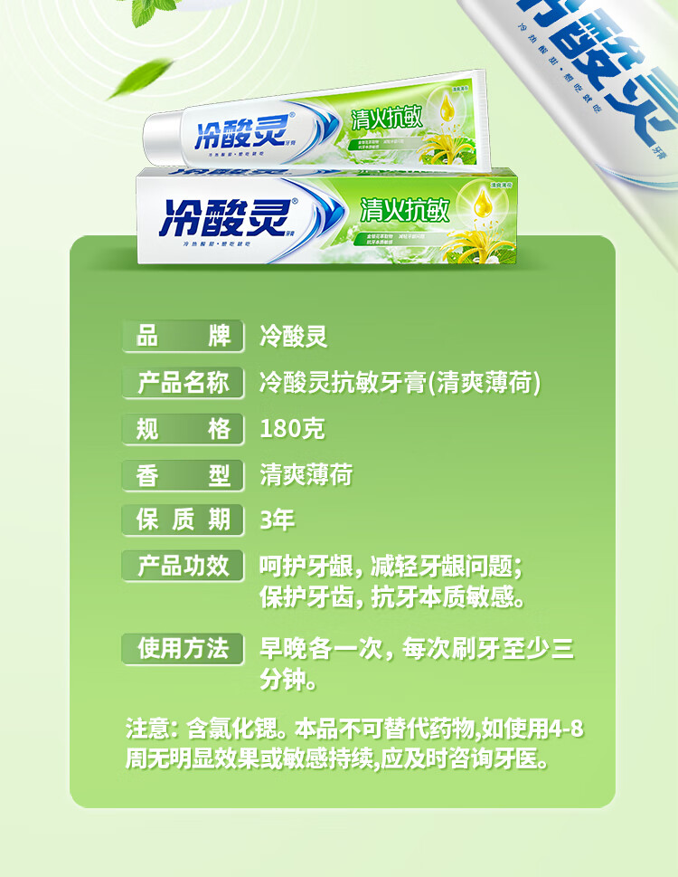 冷酸灵草本抗敏感牙膏 富含金银花 减轻牙龈问题180g升级版【吴磊同款】