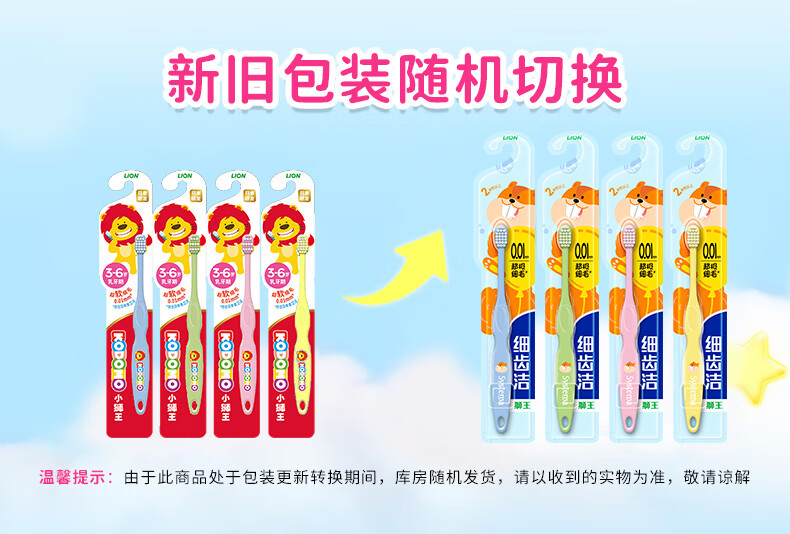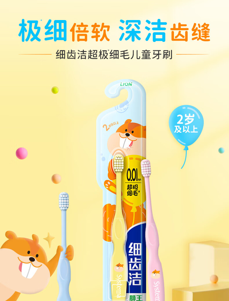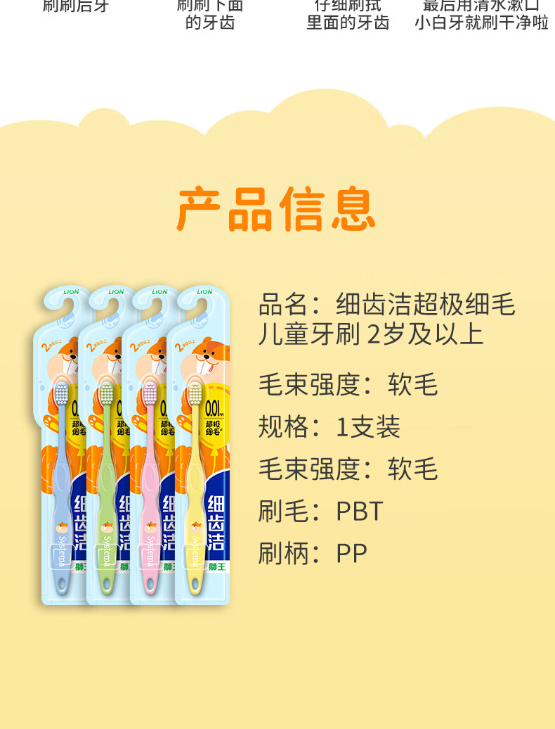 狮王(Lion)细齿洁儿童牙刷2岁以上*3儿童超细软毛牙刷 呵护乳牙新老包装随机