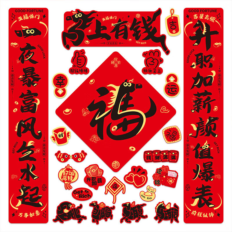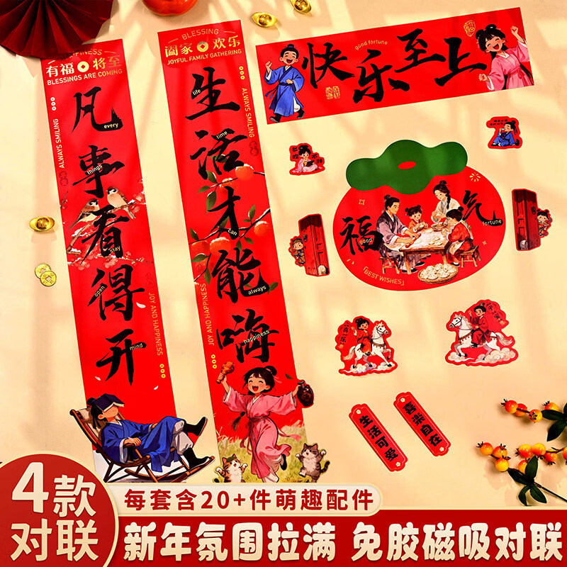 其他文教文化用品 文创用品对联送红包 全背胶对联-吉祥如意73件套【送红包】 欢喜过大年