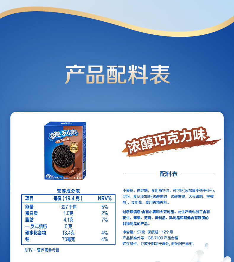 奥利奥(Oreo)浓醇巧克力味夹心饼干 小胖盒 早餐休闲零食办公室下午茶 97g
