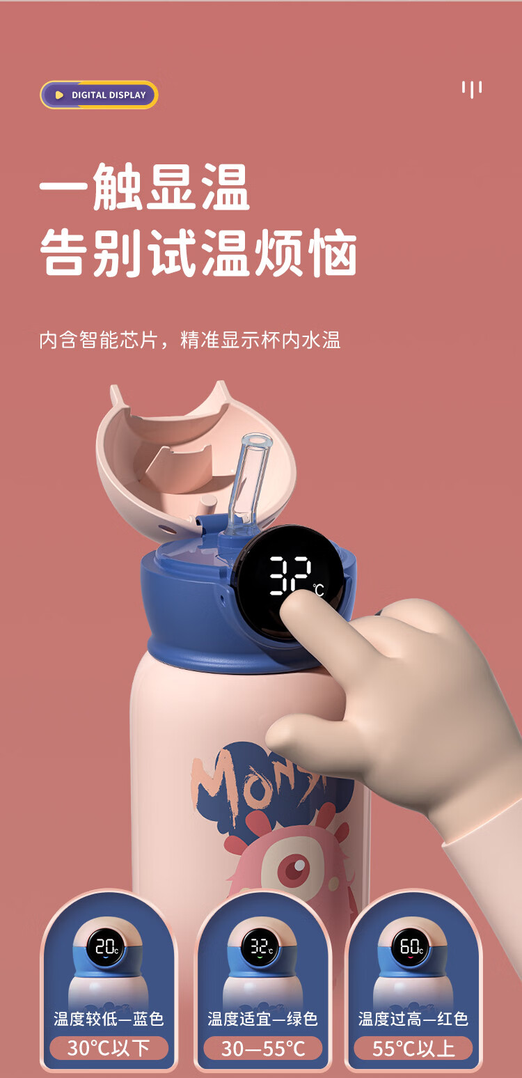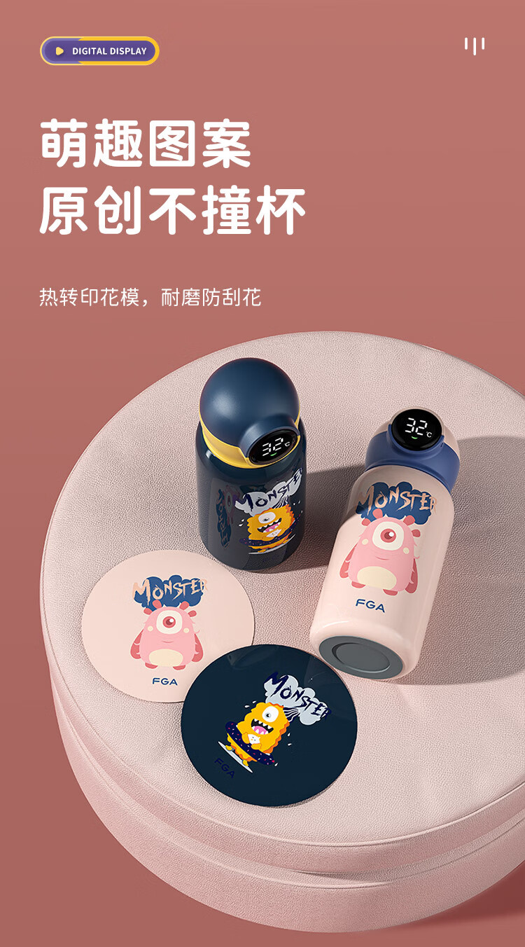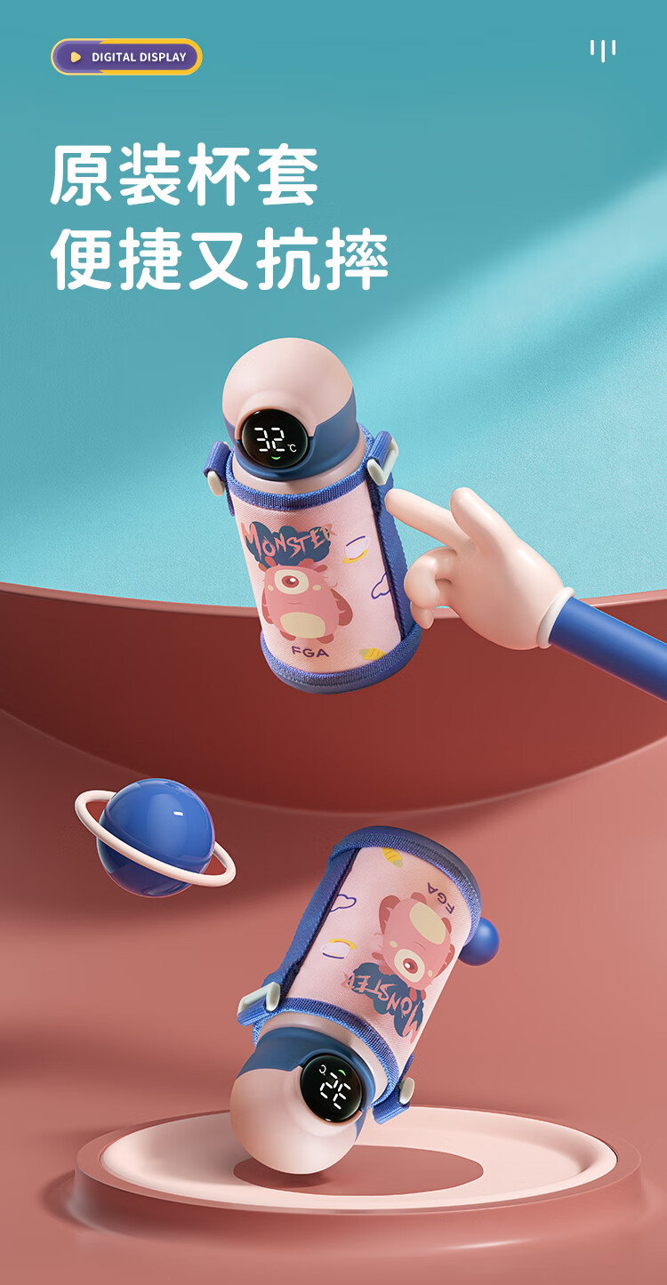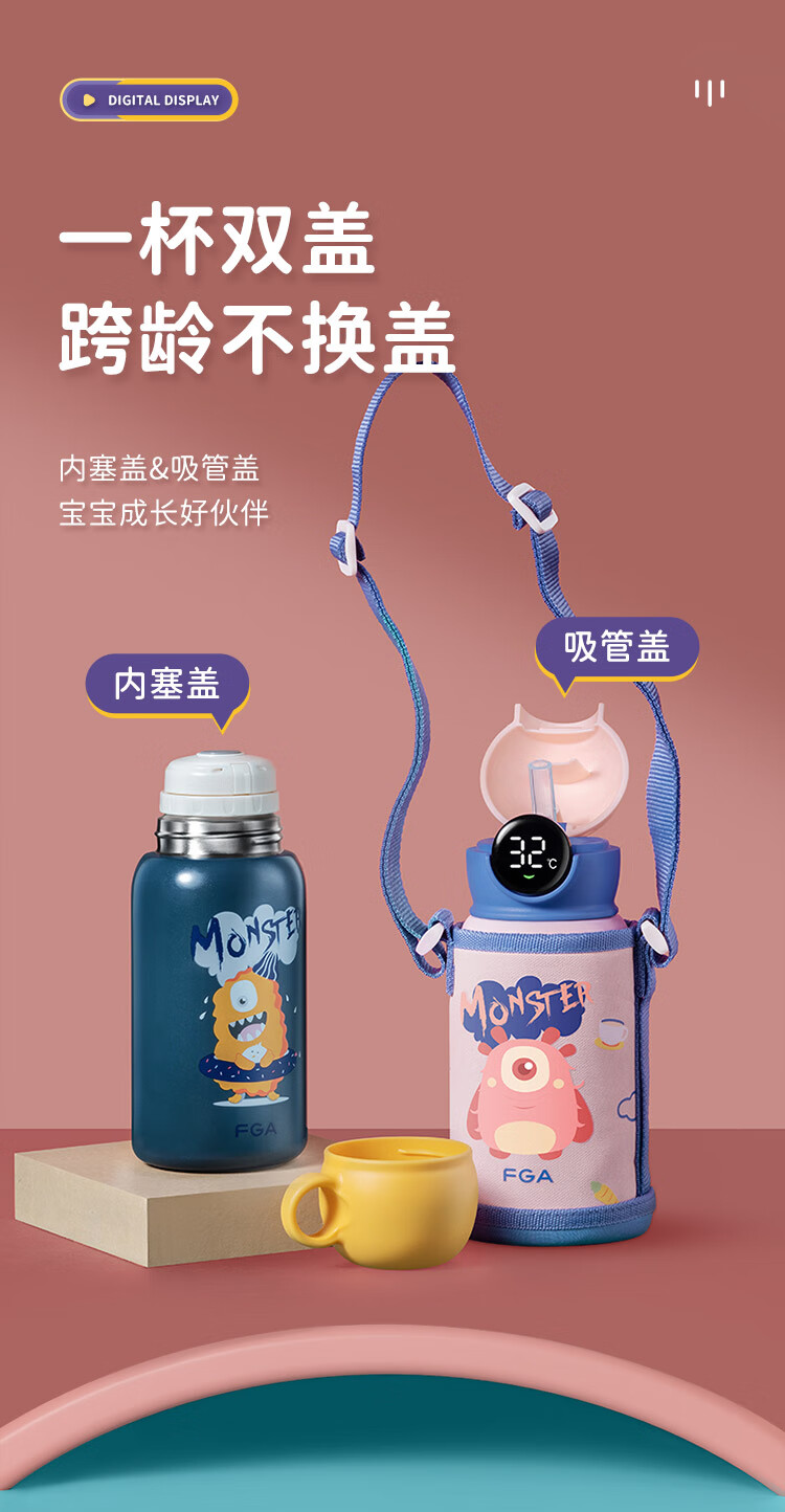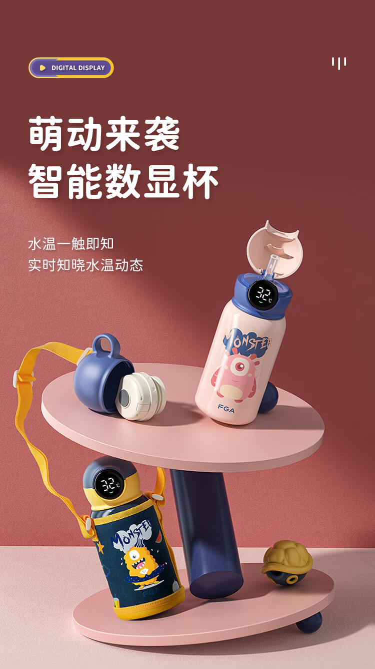 FGA富光儿童保温杯316不锈钢智能数显学生吸管大容量水杯壶双盖杯子