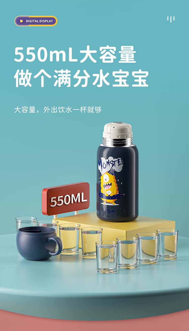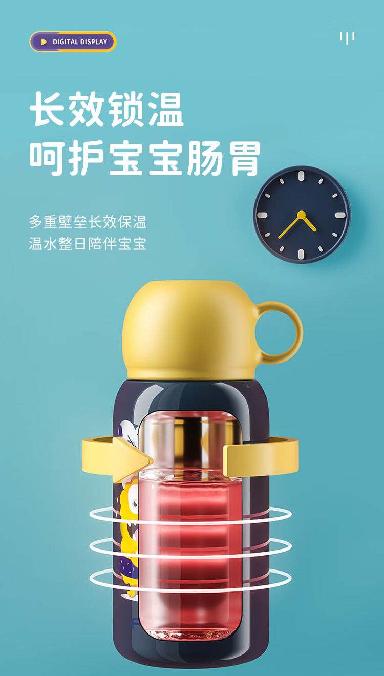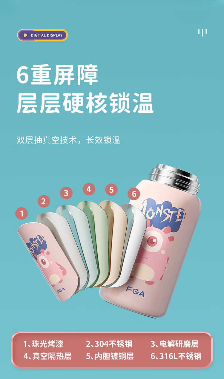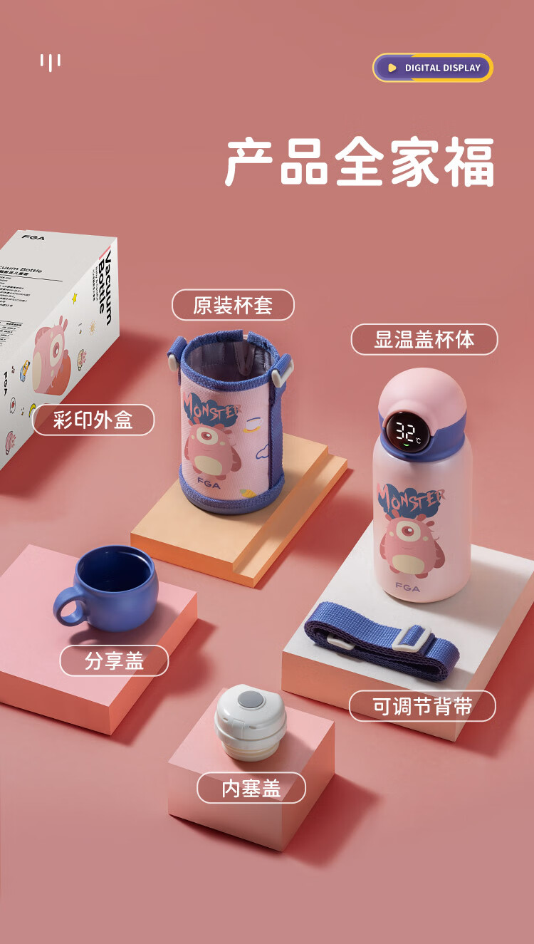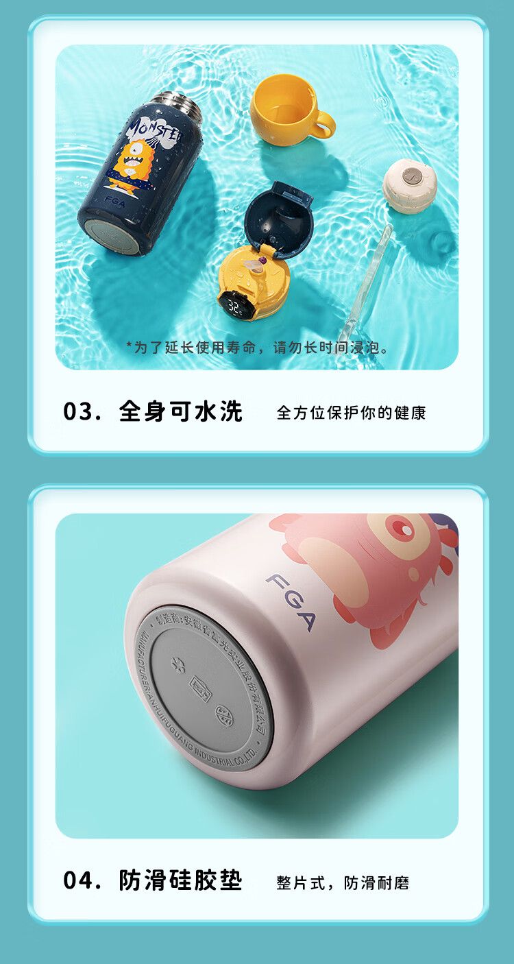 FGA富光儿童保温杯316不锈钢智能数显学生吸管大容量水杯壶双盖杯子