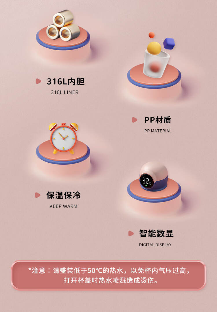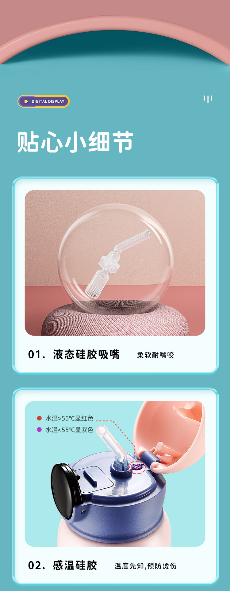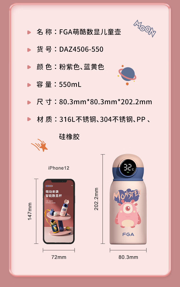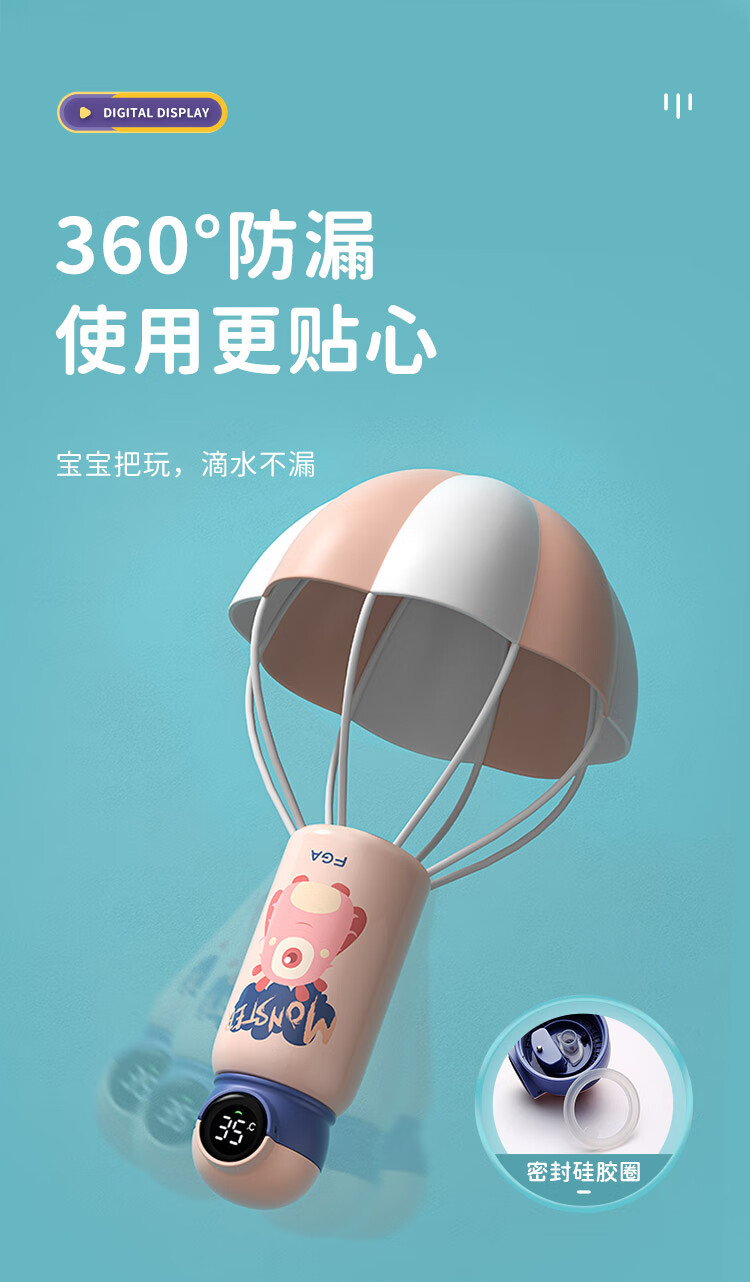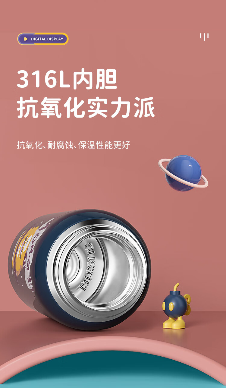 FGA富光儿童保温杯316不锈钢智能数显学生吸管大容量水杯壶双盖杯子