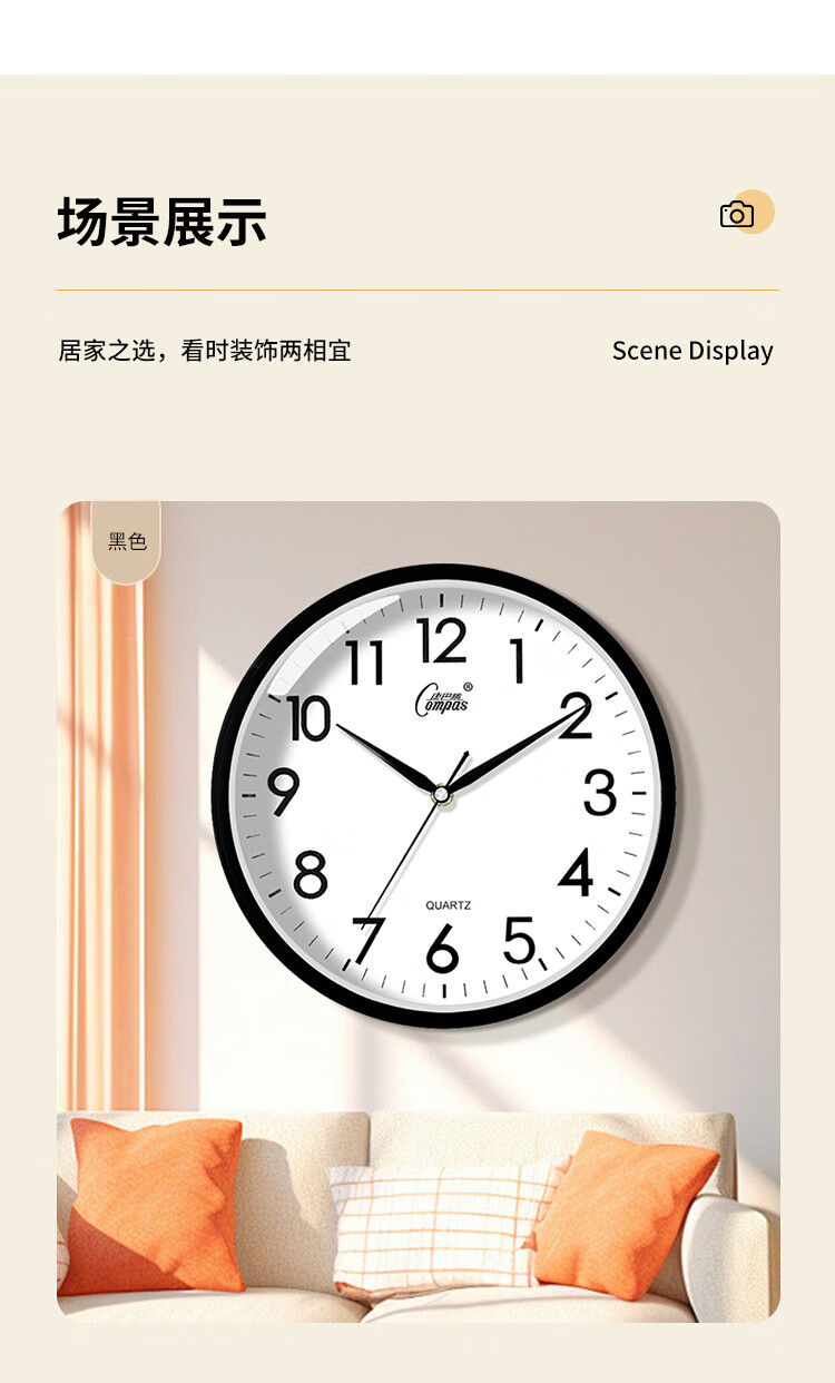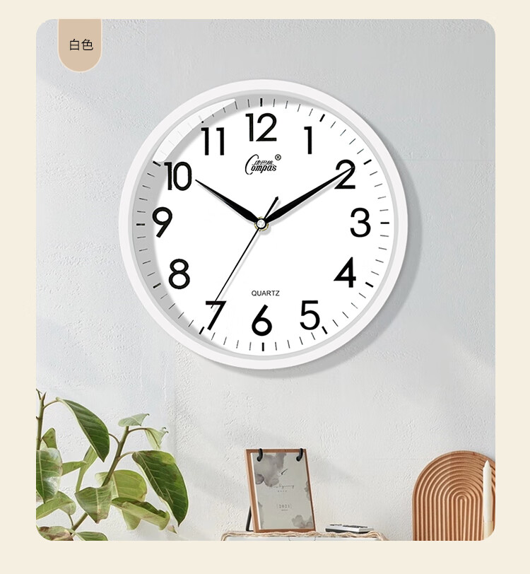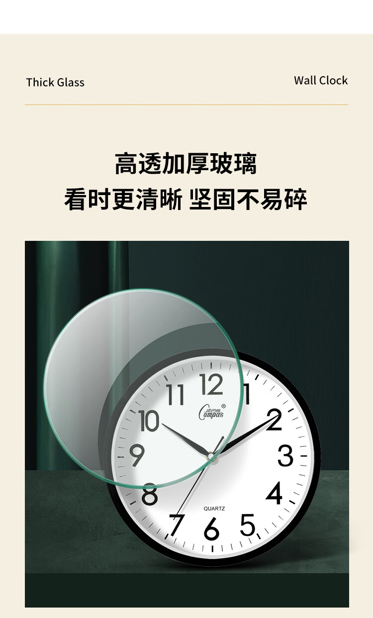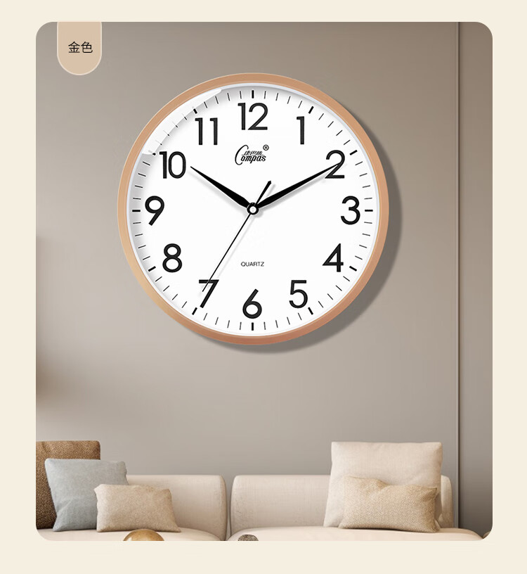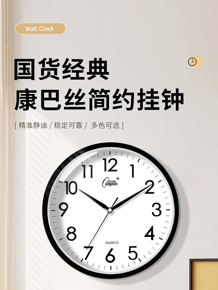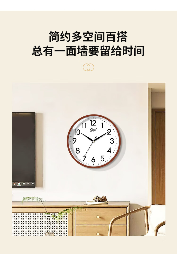 康巴丝(Compas)挂钟 创意简约钟表客厅石英钟表挂墙时钟 c2855 咖木色 26cm直径