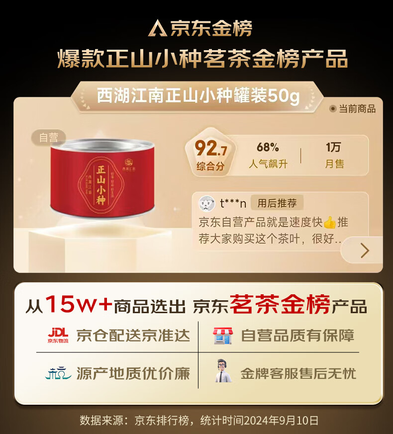 西湖江南红茶茶叶自己喝正山小种试饮装小袋散罐装送生日长辈礼货品物50g