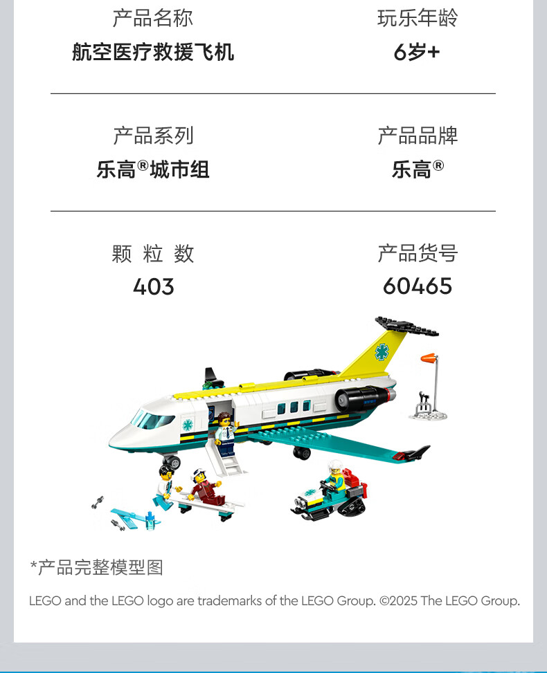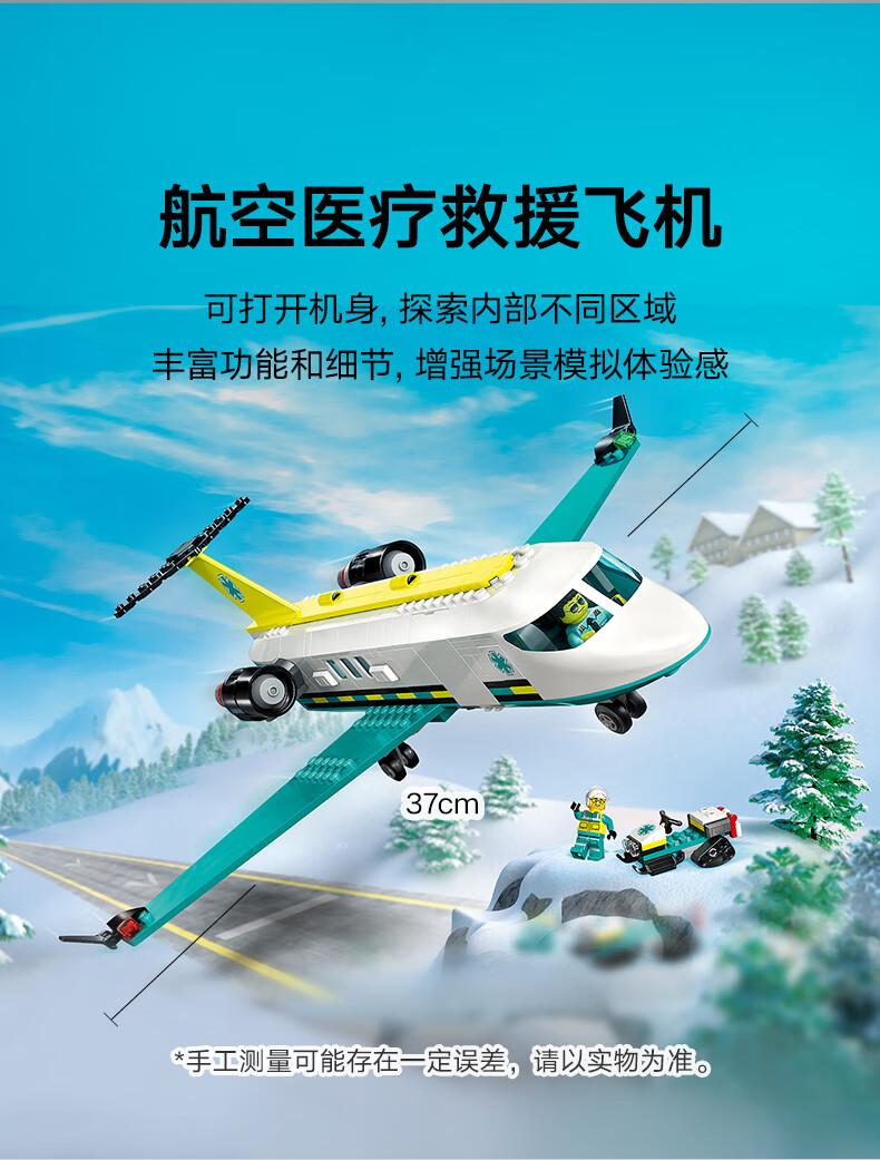 乐高(LEGO)积木城市60465 航空医疗救援飞机男孩儿童玩具生日礼物新年货装饰
