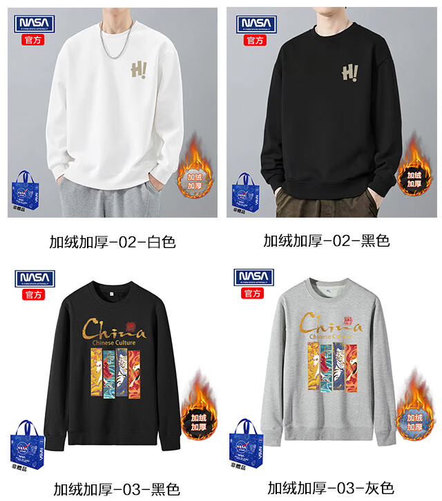 NASAR-FARM 加绒加厚圆领卫衣男春秋季新款卫衣男士国潮棉质套头休闲打底衫 加绒加厚-03-灰色 XL (130-145斤)