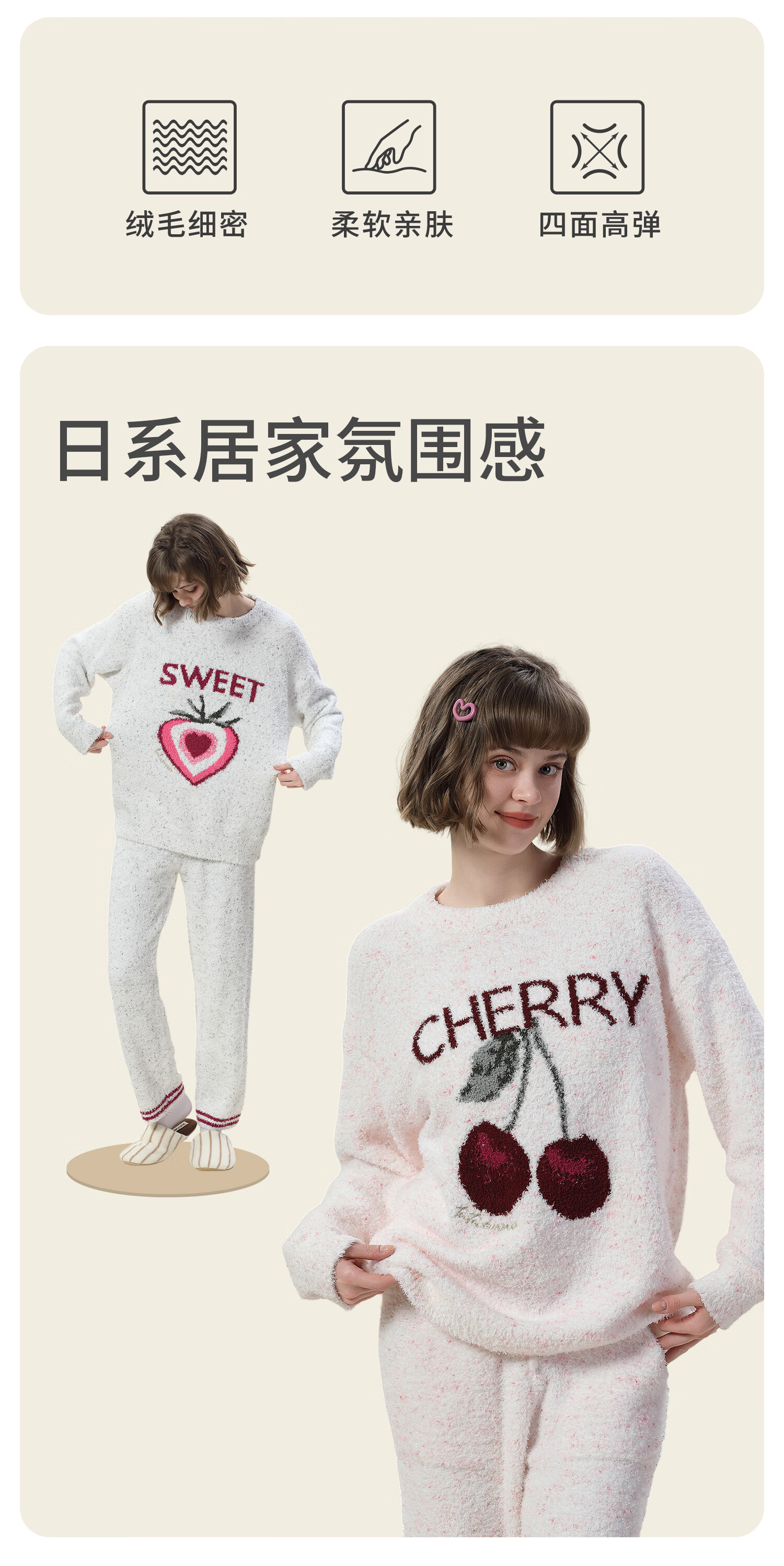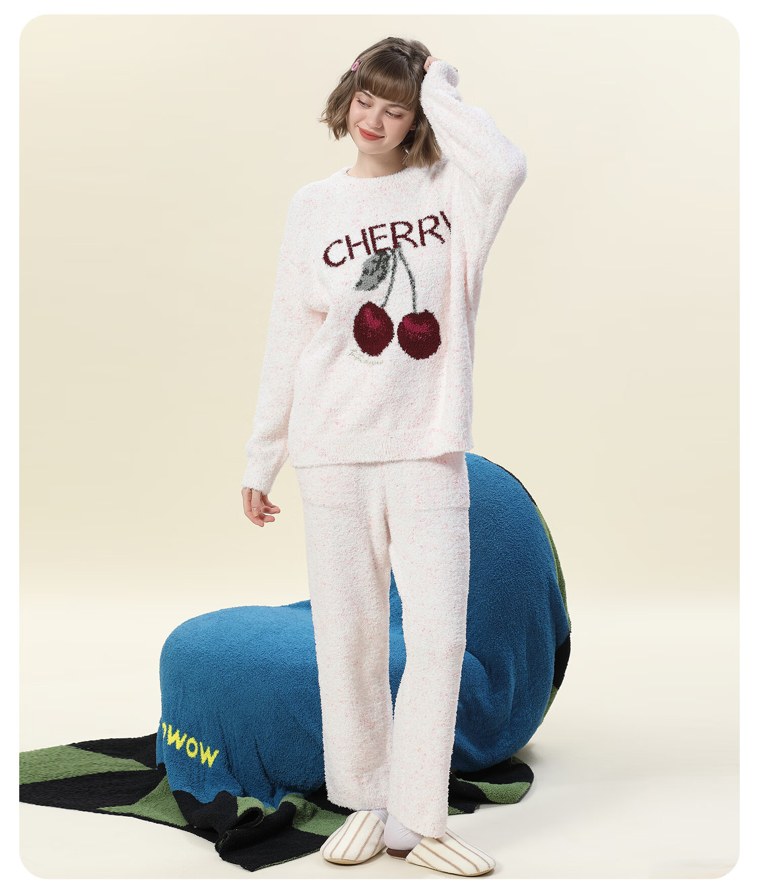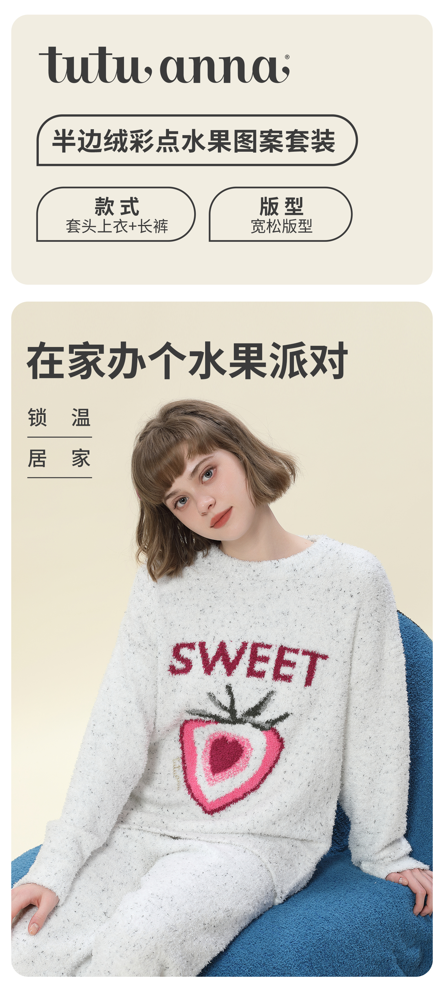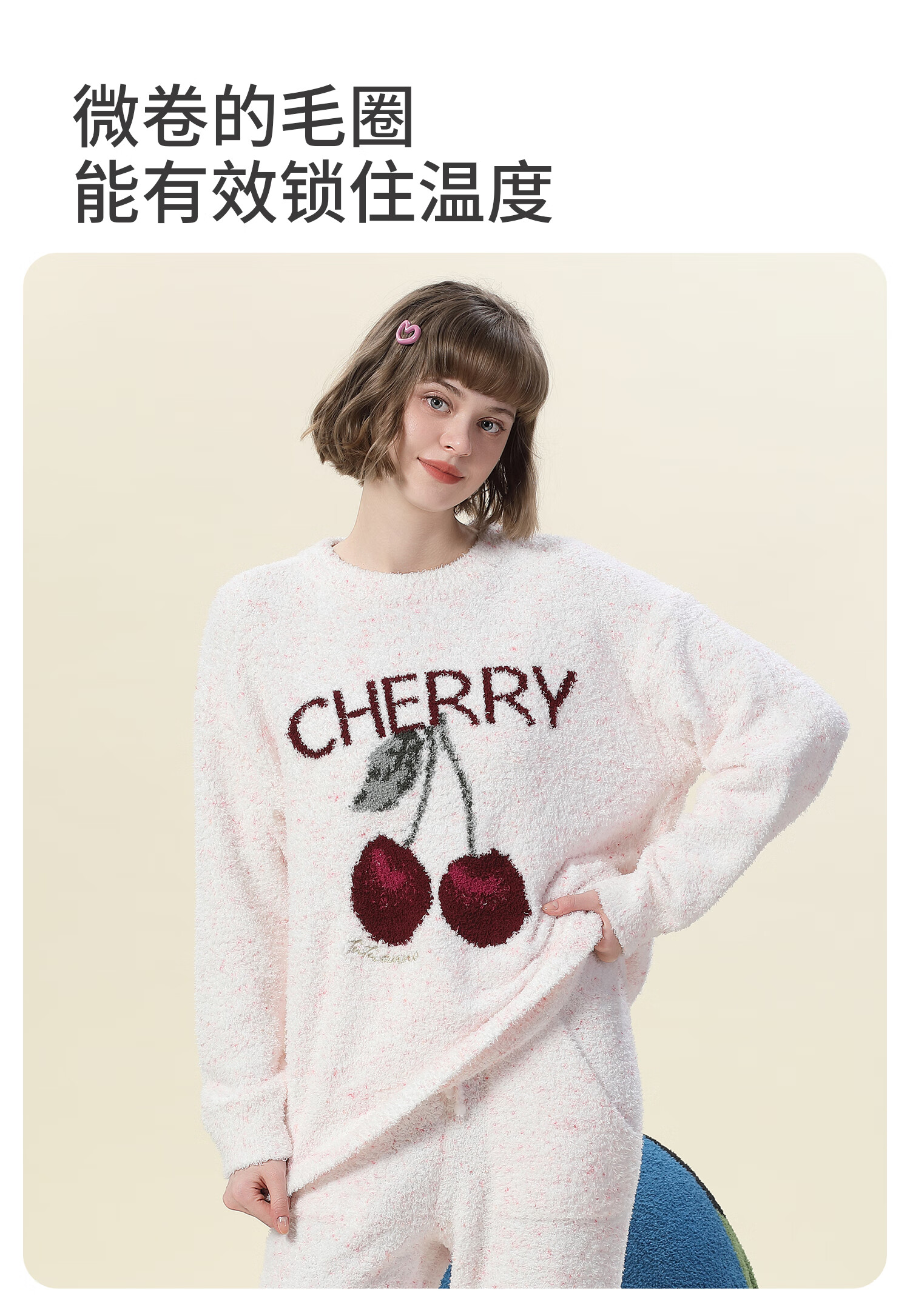 tutuanna半边绒水果印花家居服套装家居服睡衣秋冬保暖居家 樱桃 灰彩点 M 上衣160/84A 裤子160/70A