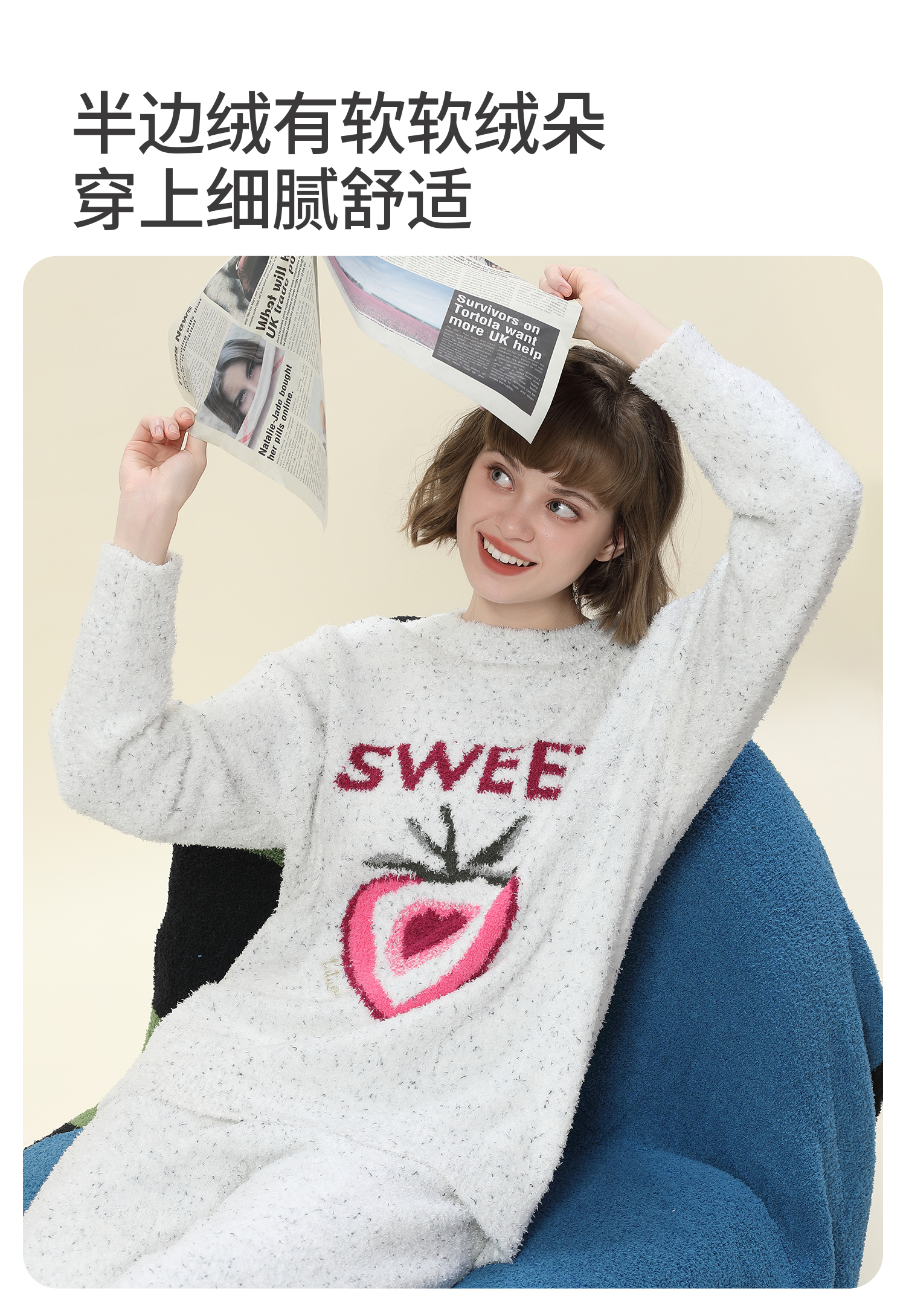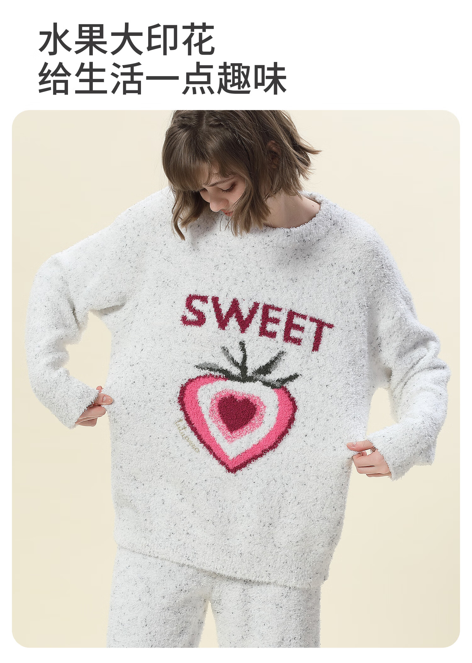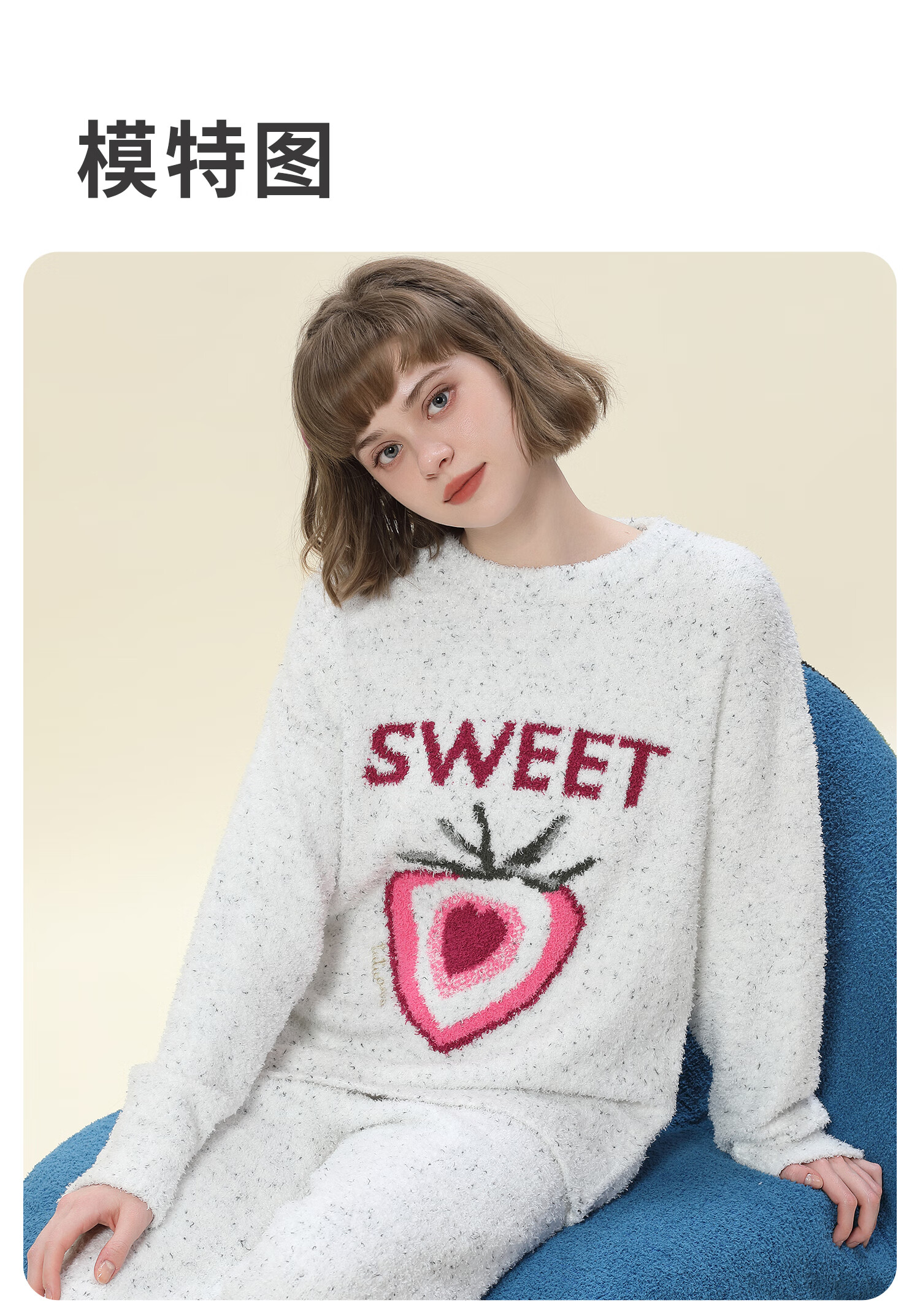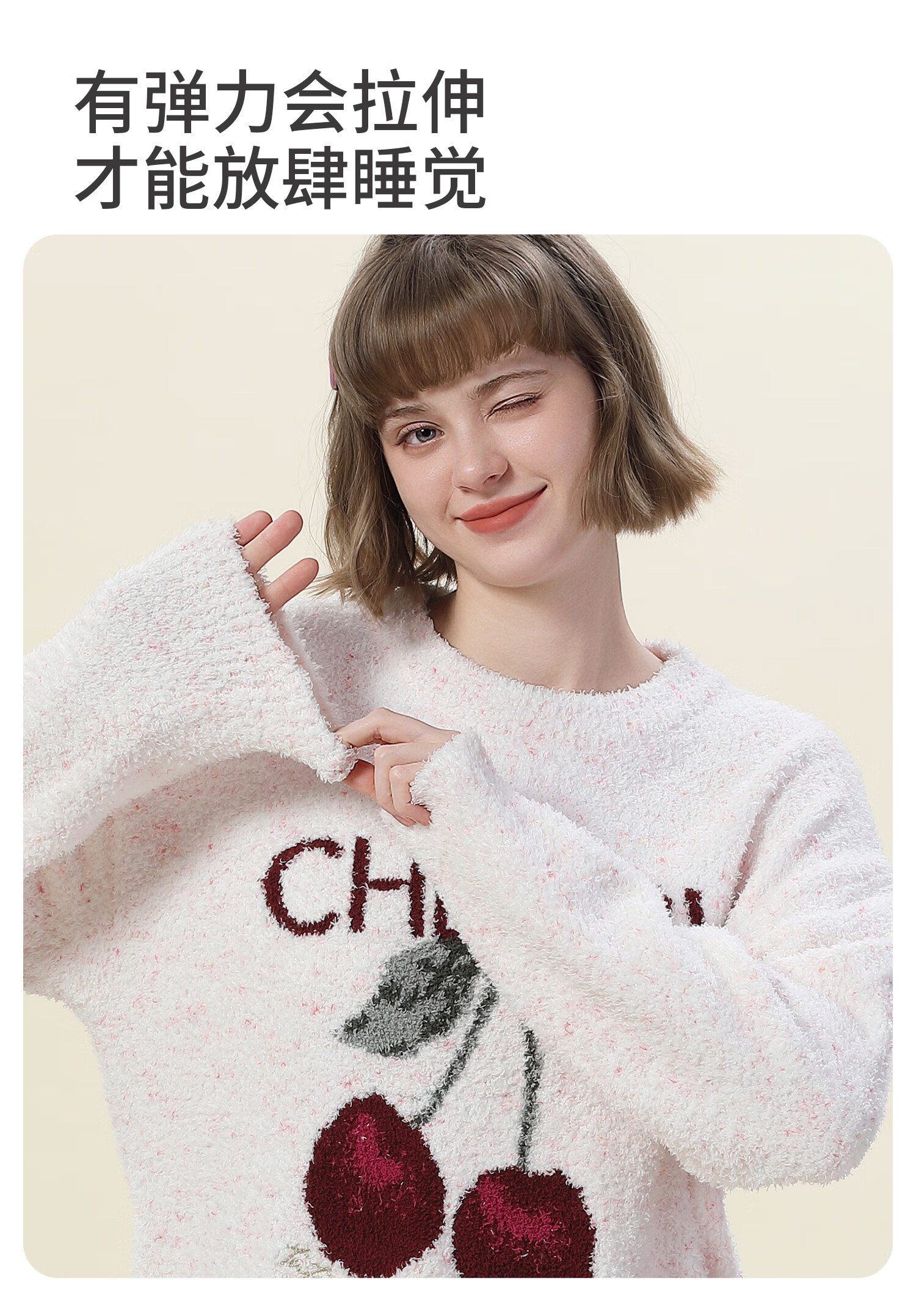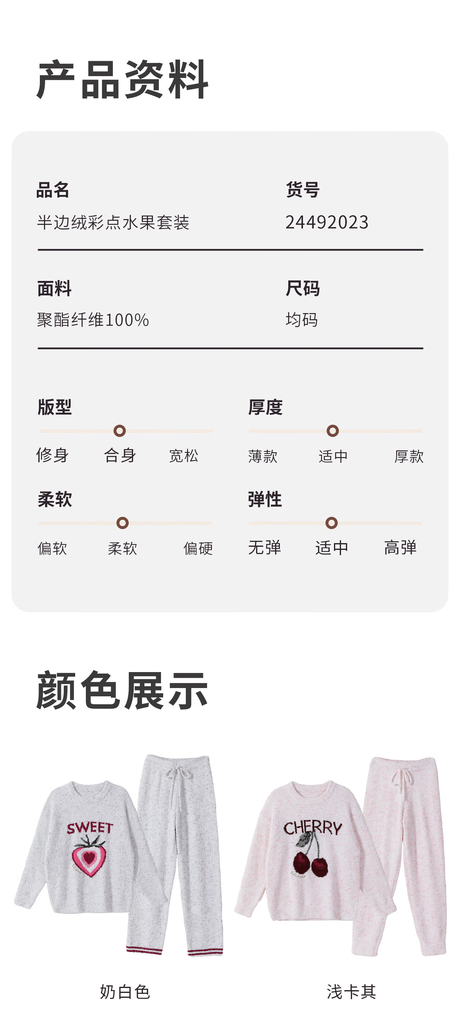tutuanna半边绒水果印花家居服套装家居服睡衣秋冬保暖居家 樱桃 灰彩点 M 上衣160/84A 裤子160/70A
