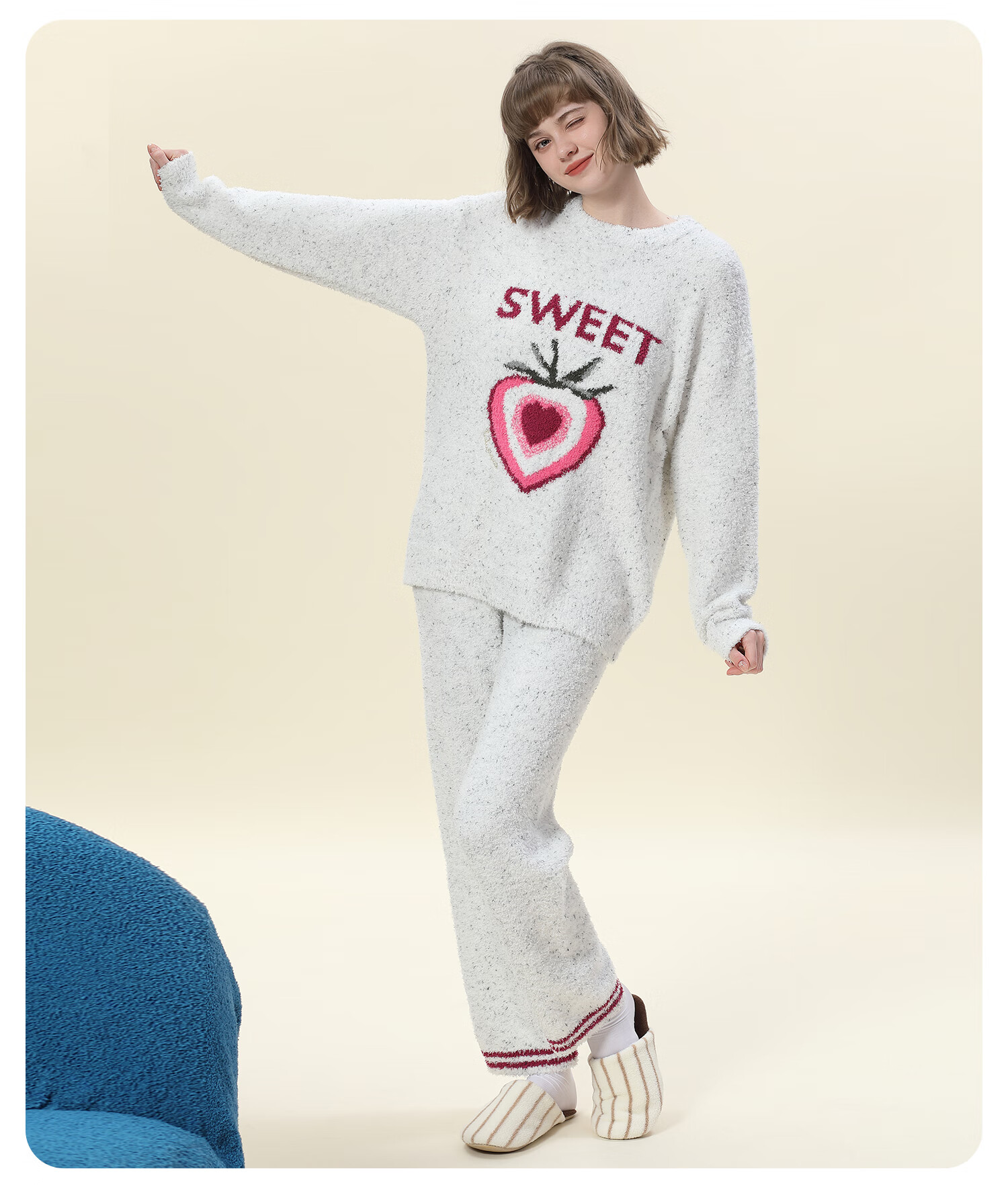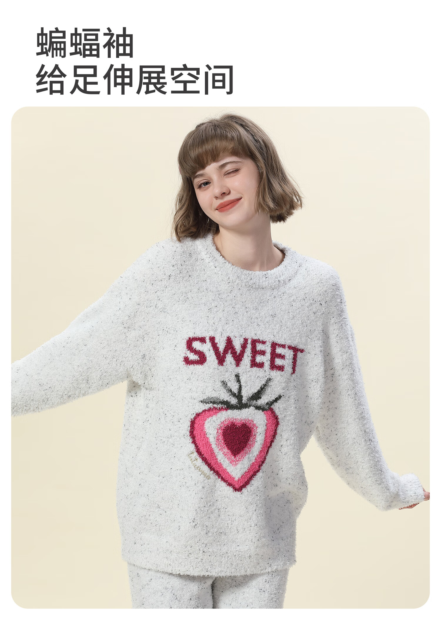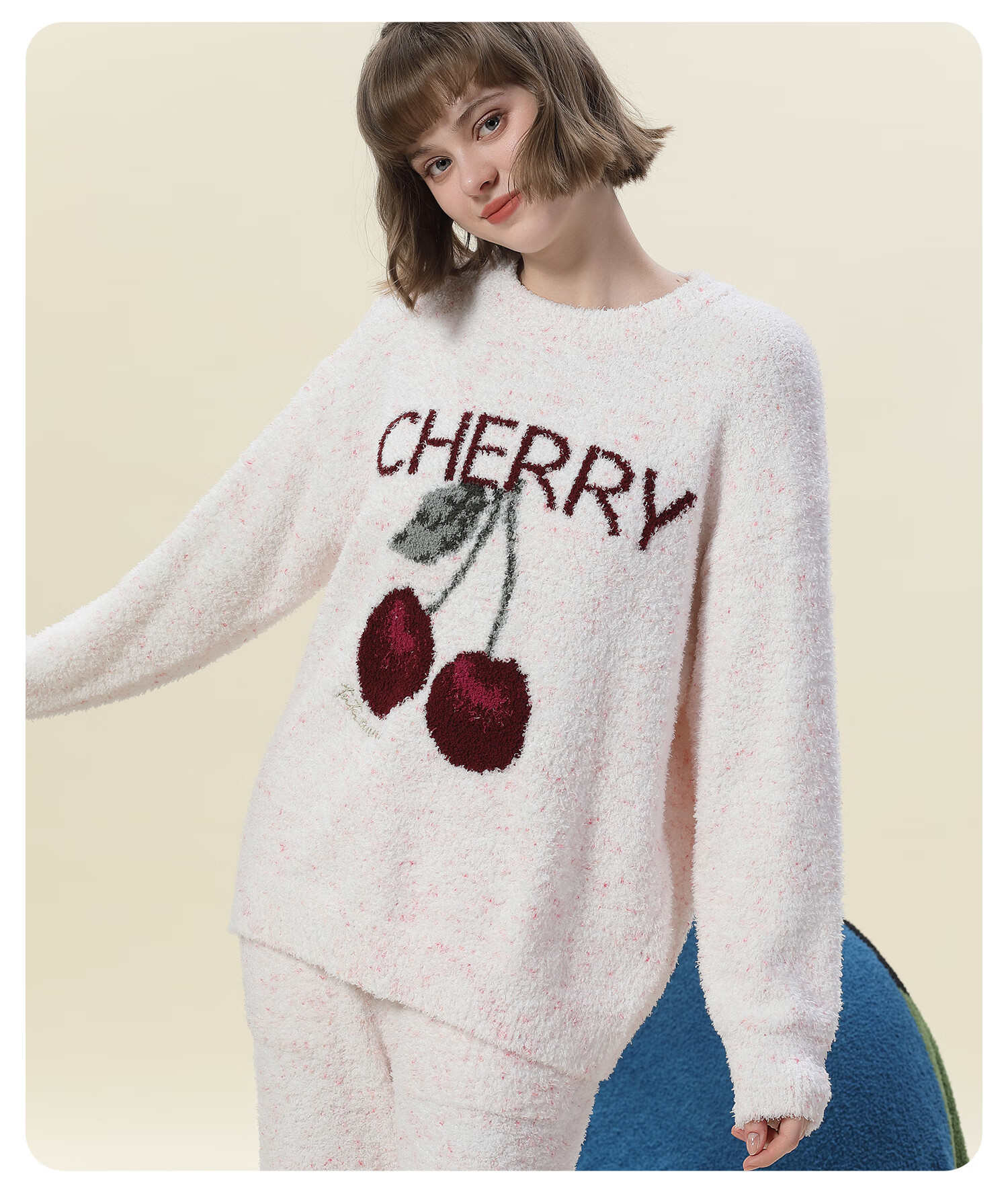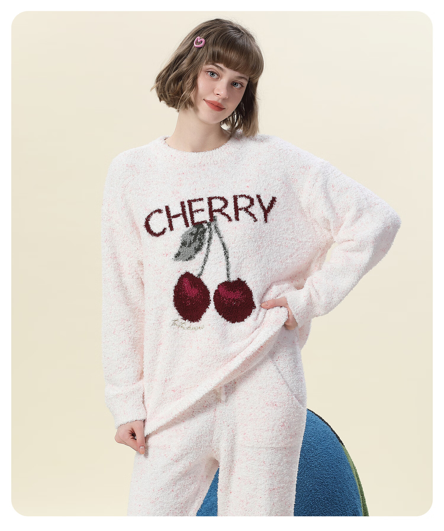tutuanna半边绒水果印花家居服套装家居服睡衣秋冬保暖居家 樱桃 灰彩点 M 上衣160/84A 裤子160/70A