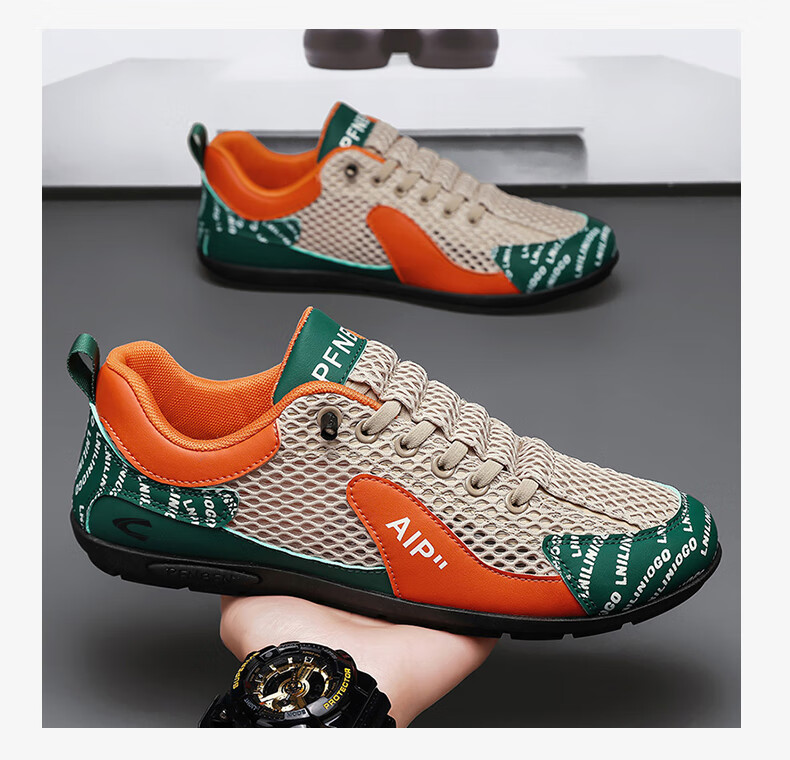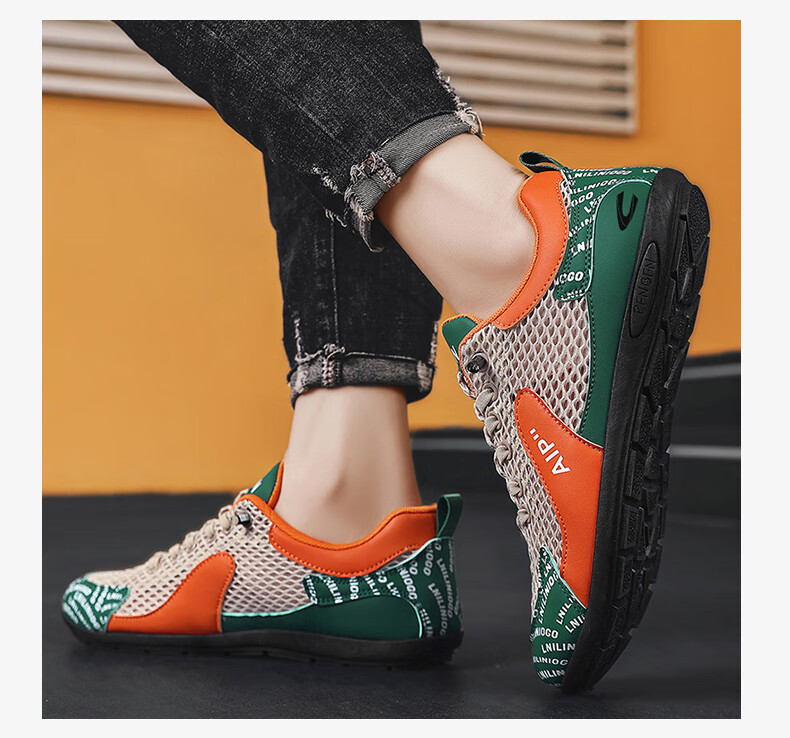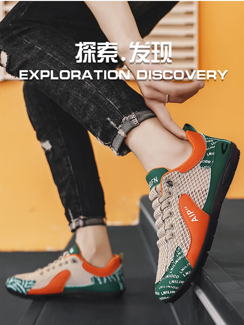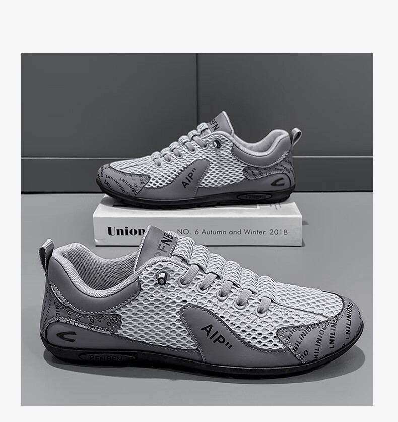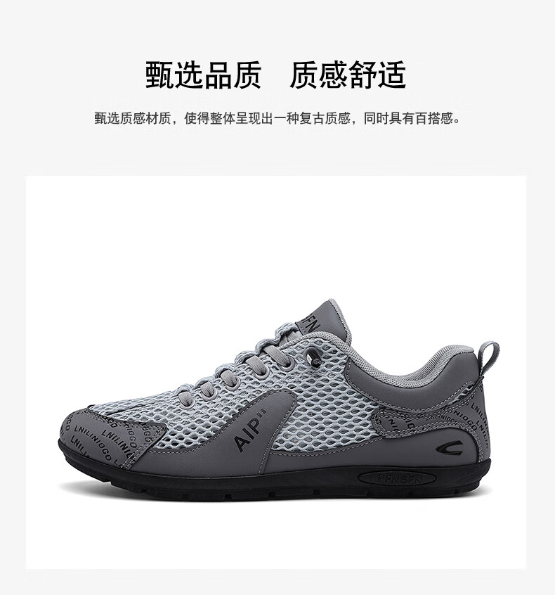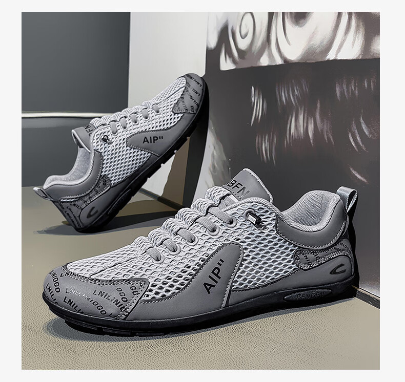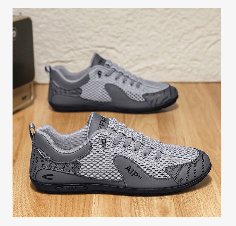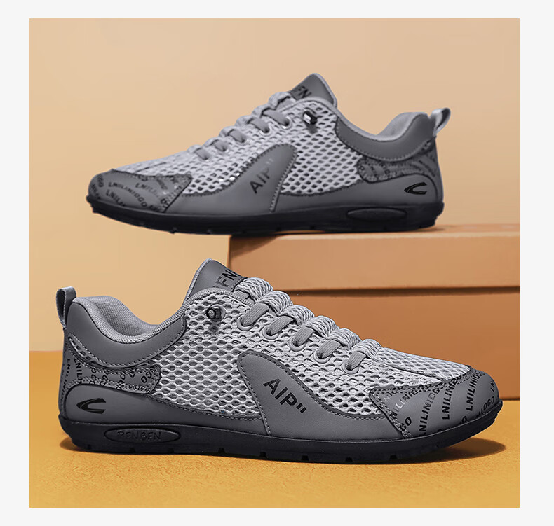 骆驼动感阿甘男鞋夏季透气防臭网面运动板鞋男士休闲跑步软底防滑豆豆潮鞋 灰色 44
