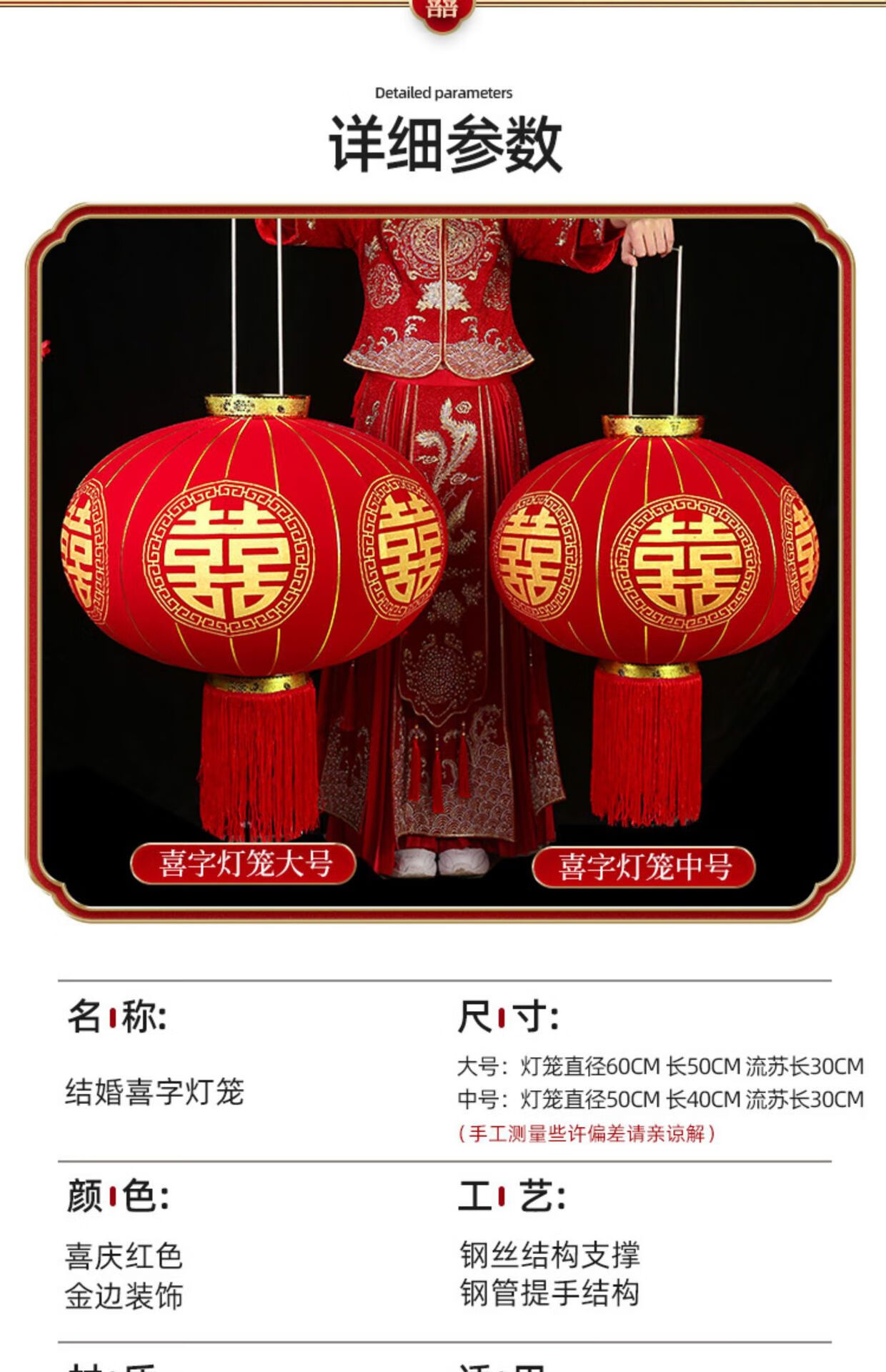 结婚喜字大灯笼挂饰大门户外院子婚庆婚礼布置用品中式喜庆挂件 120#娃娃喜大红灯笼一对(直径约80cm) 80cm