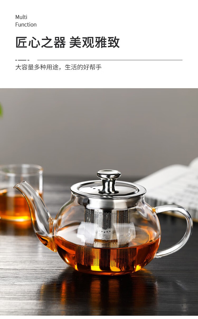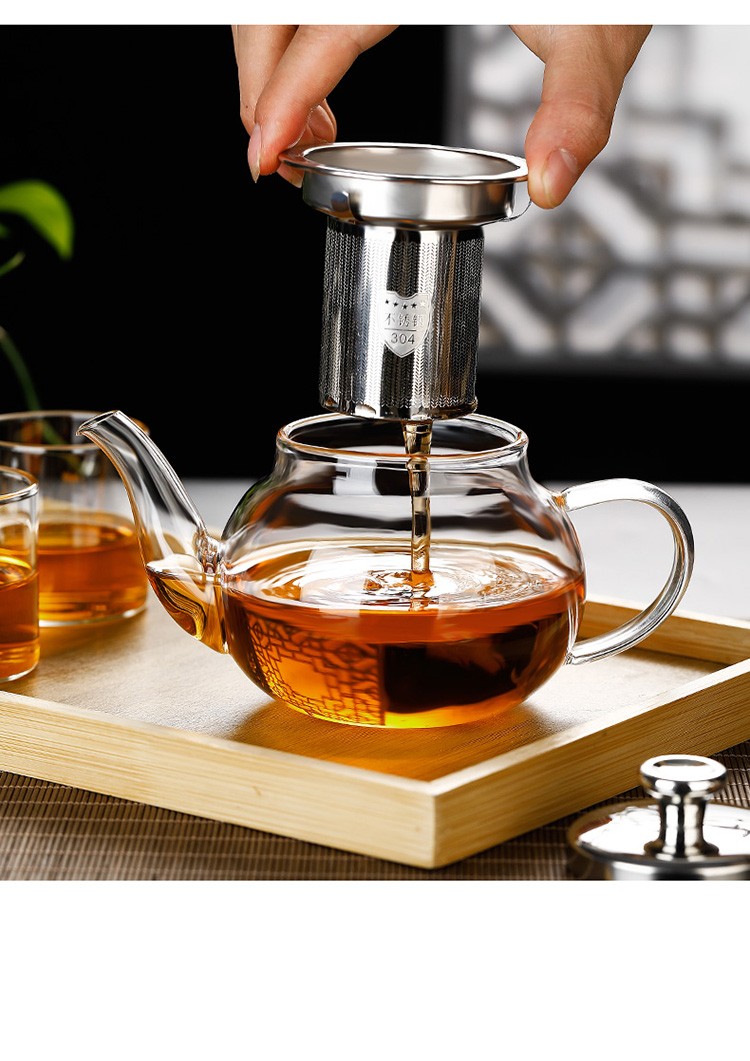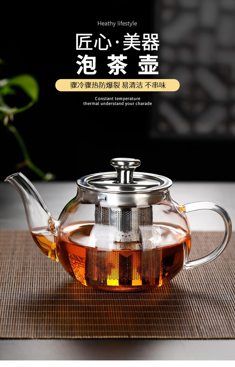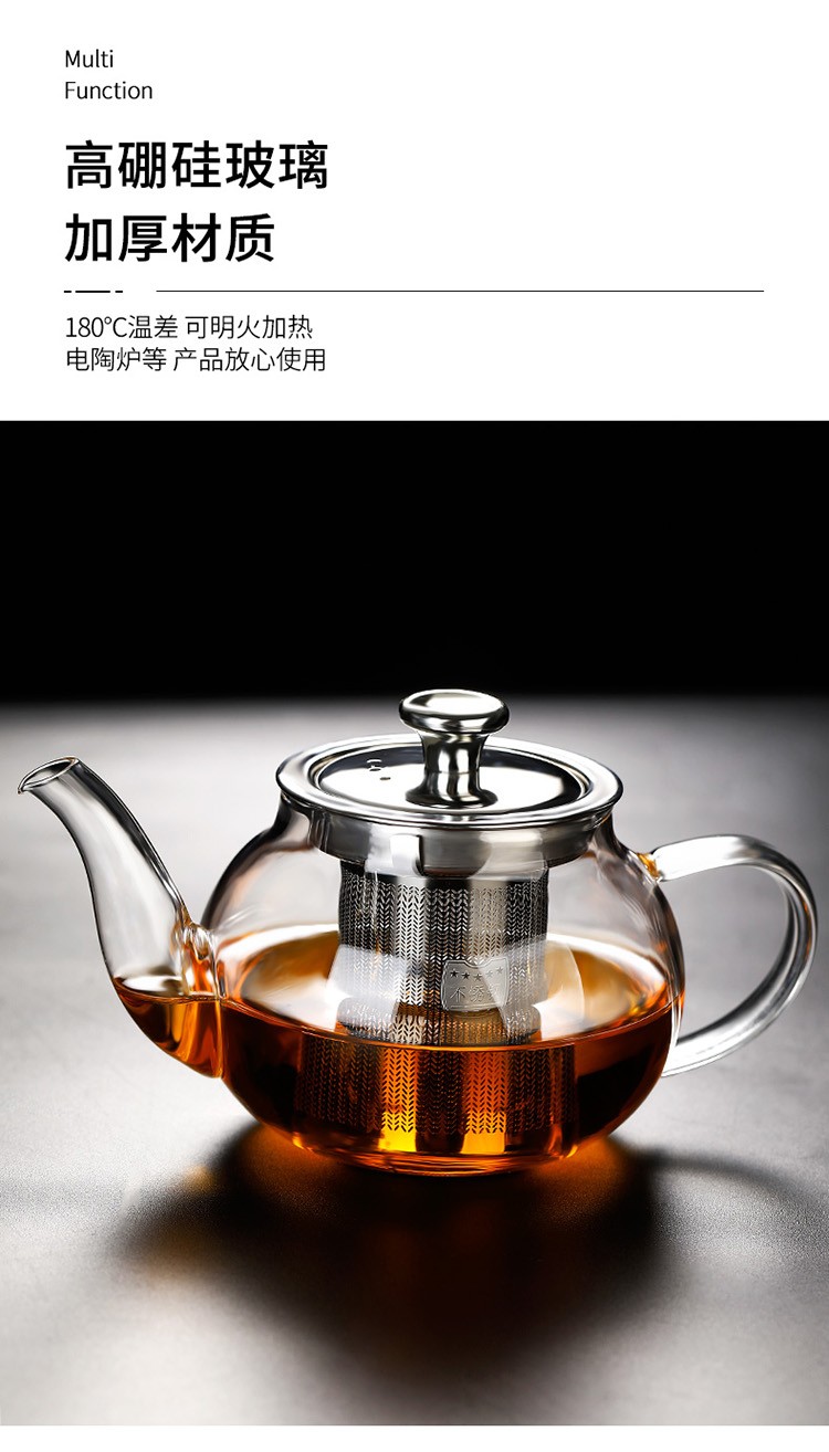 禾艾苏(heisou) 高硼硅耐热玻璃茶壶家用围炉煮茶壶不锈钢过滤泡茶壶加厚茶具 大号苹果壶600ml