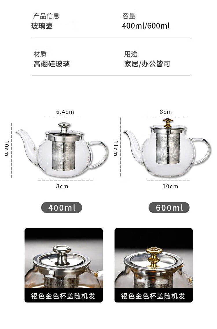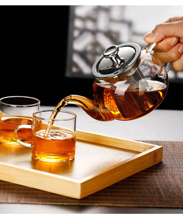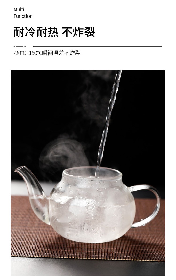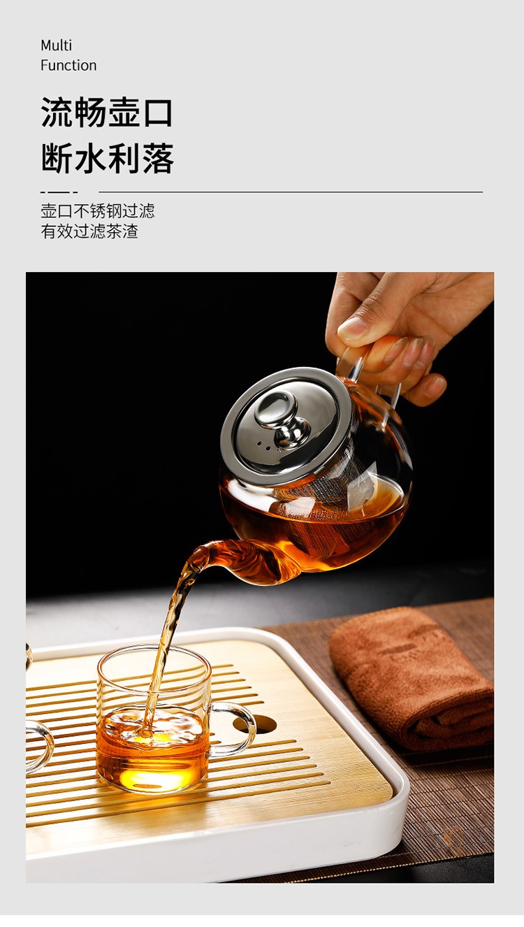 禾艾苏(heisou) 高硼硅耐热玻璃茶壶家用围炉煮茶壶不锈钢过滤泡茶壶加厚茶具 大号苹果壶600ml