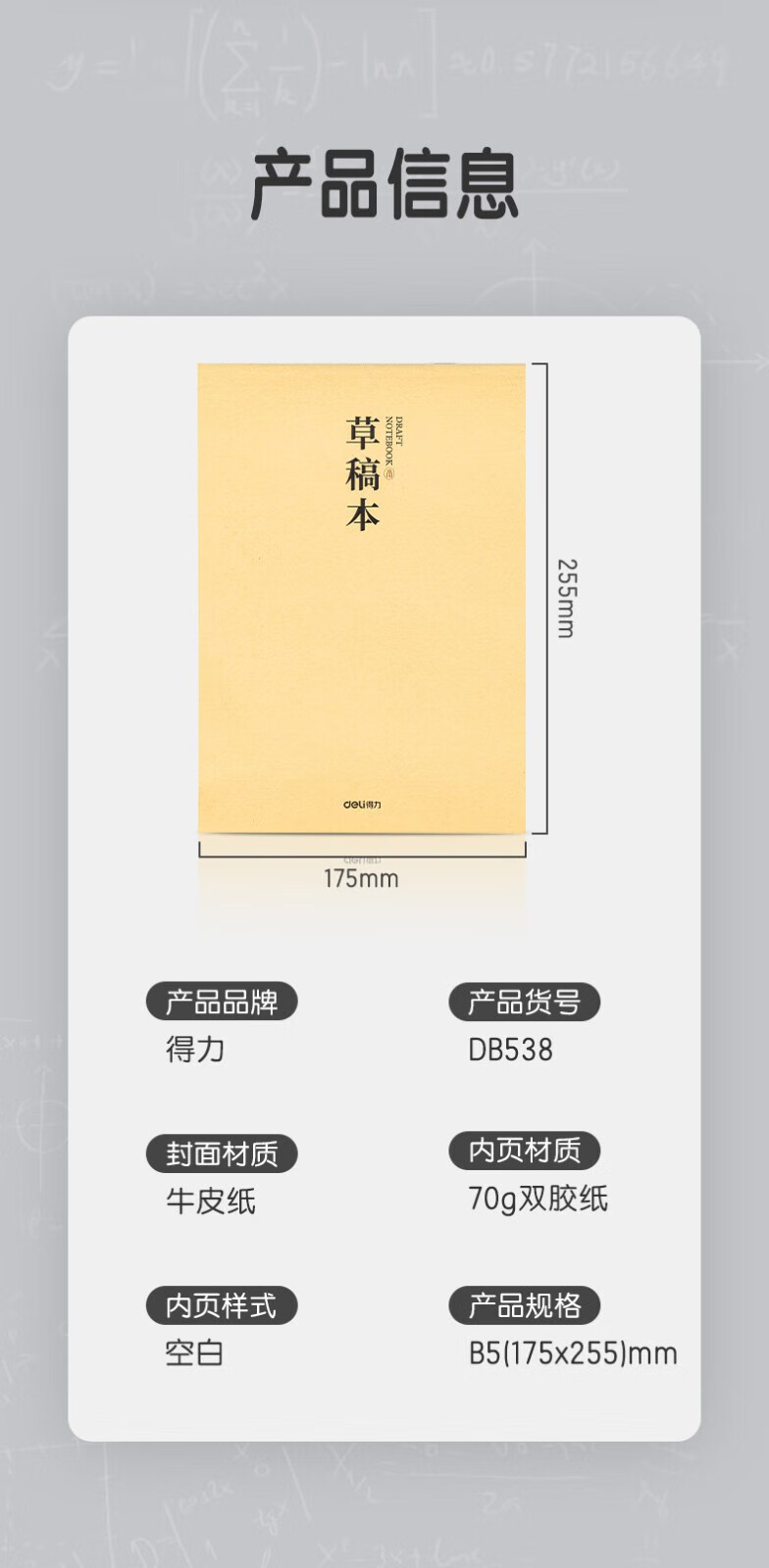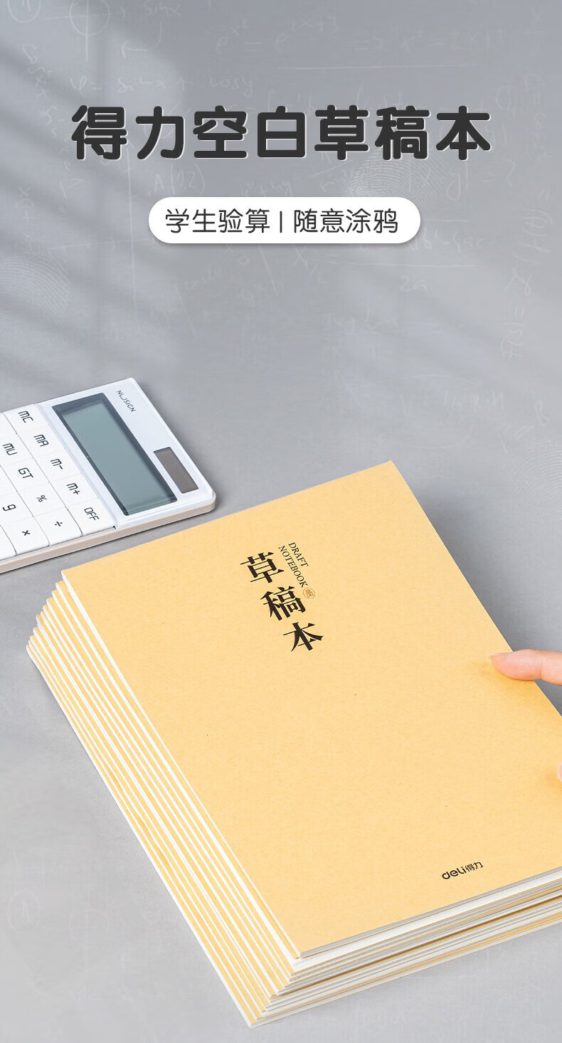 得力(deli)草稿本空白加厚草稿纸小学初中高中生学习数学运算考研演草纸16K演算纸验算纸练习纸稿纸 【16K400张】10本加厚草稿纸