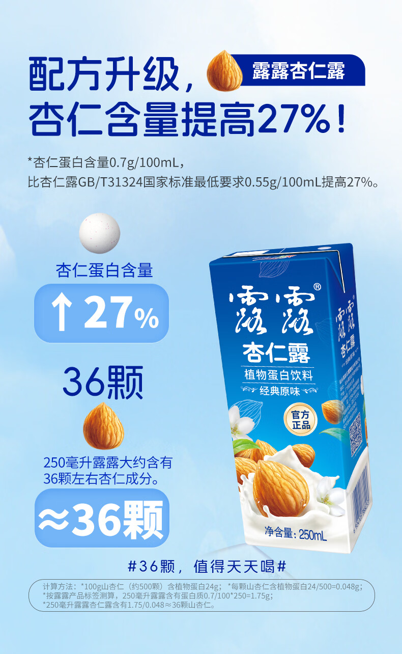 露露杏仁露经典小利乐250mL*24整箱囤货山杏仁植物蛋白营养早餐代餐 250毫升*24盒