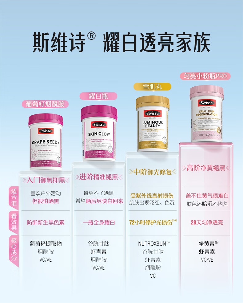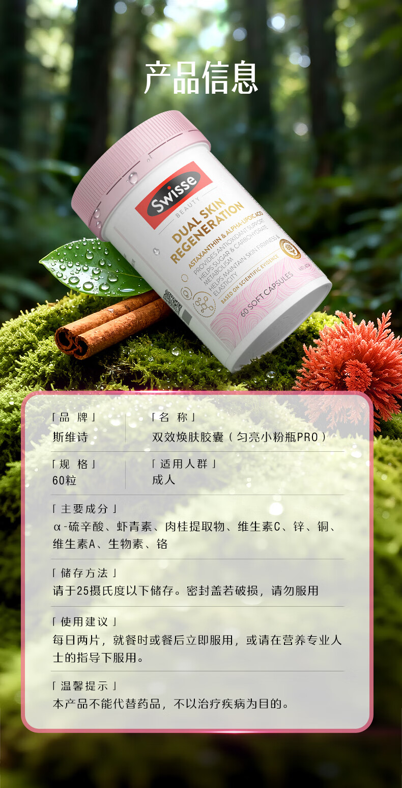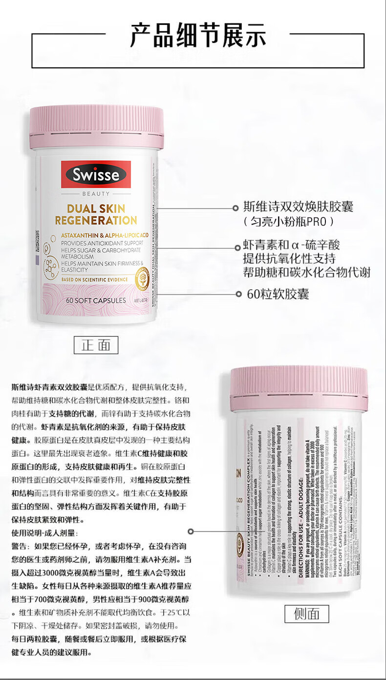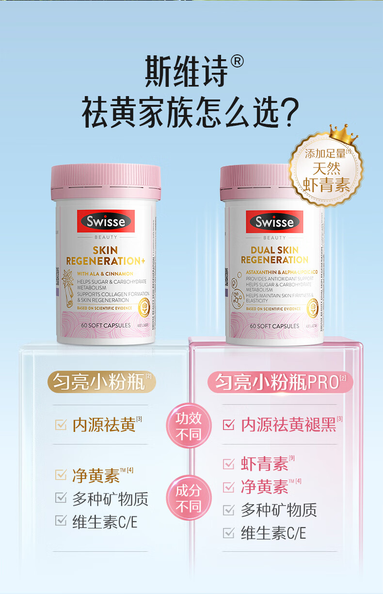 Swisse斯维诗匀亮小粉瓶Pro 抗糖抗氧化虾青素硫辛酸VC祛黄亮肤美白60粒