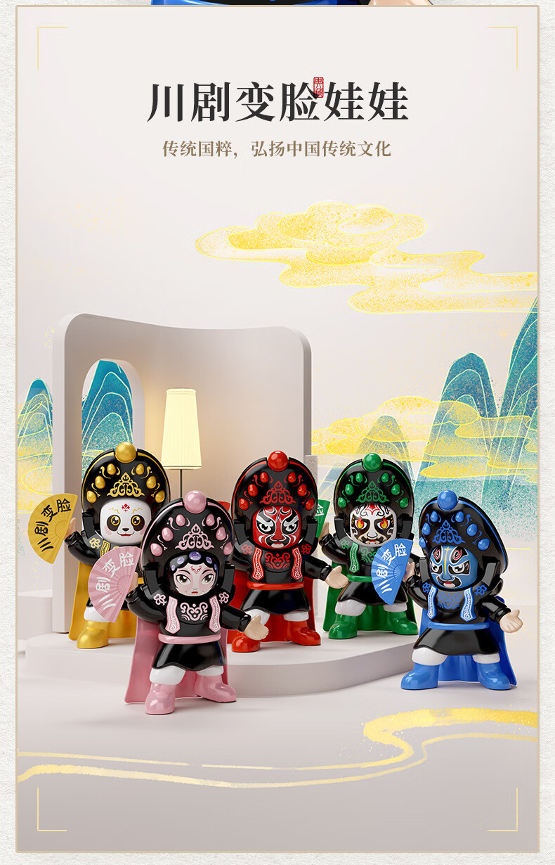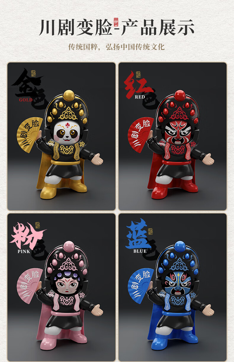 方赫变脸川剧娃娃熊猫变脸京剧脸谱玩偶四川男孩女孩趣味玩偶玩具 新年红包3款不重复(18个)