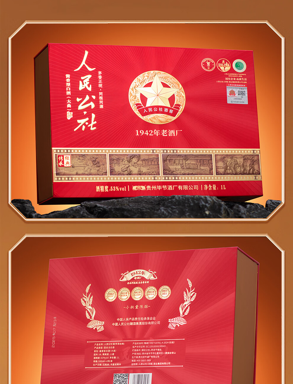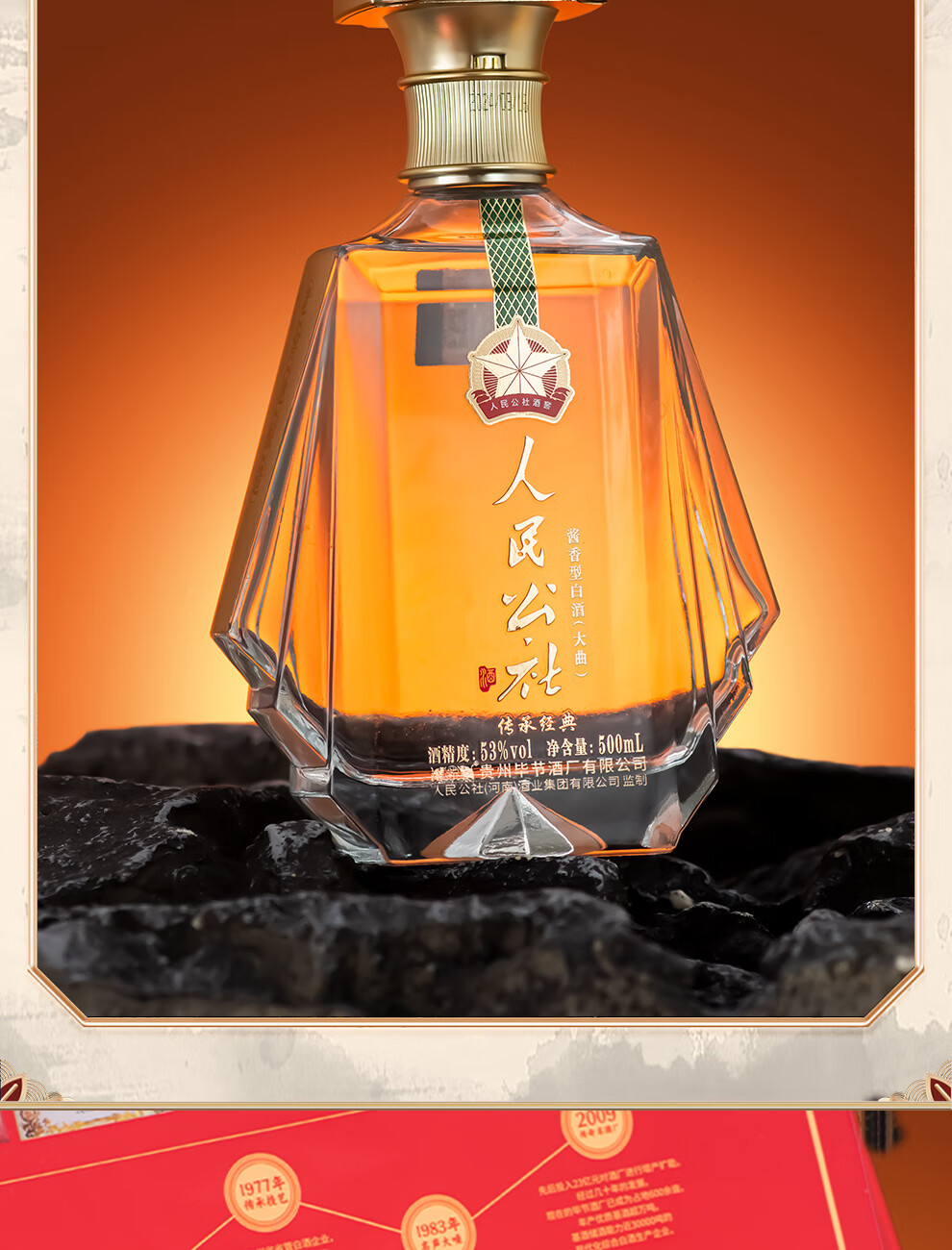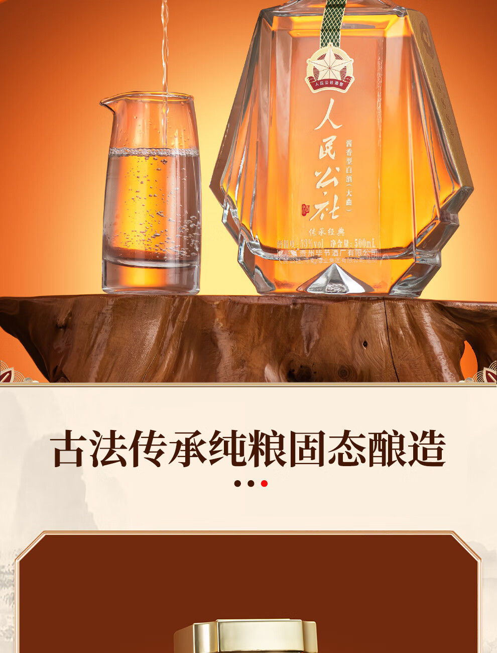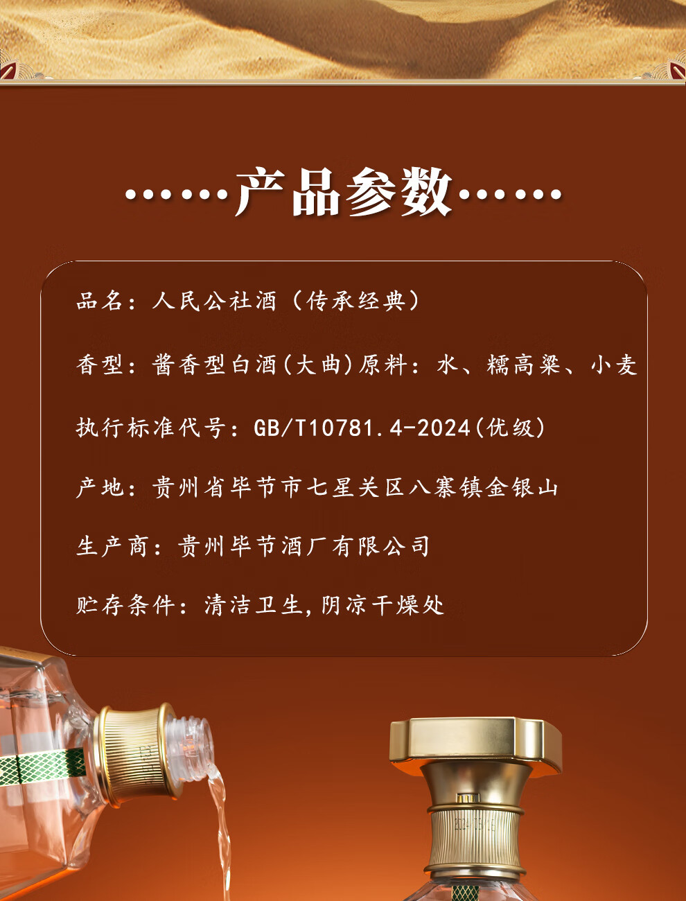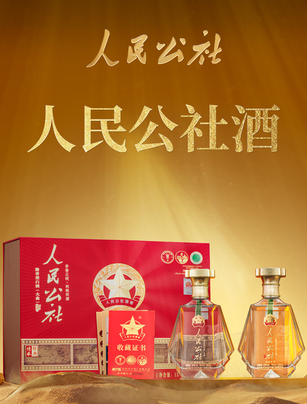 人民公社酒 传承经典 纯粮大曲坤沙传统工艺 贵州酱香型白酒 53%vol 500mL 2瓶 礼盒装