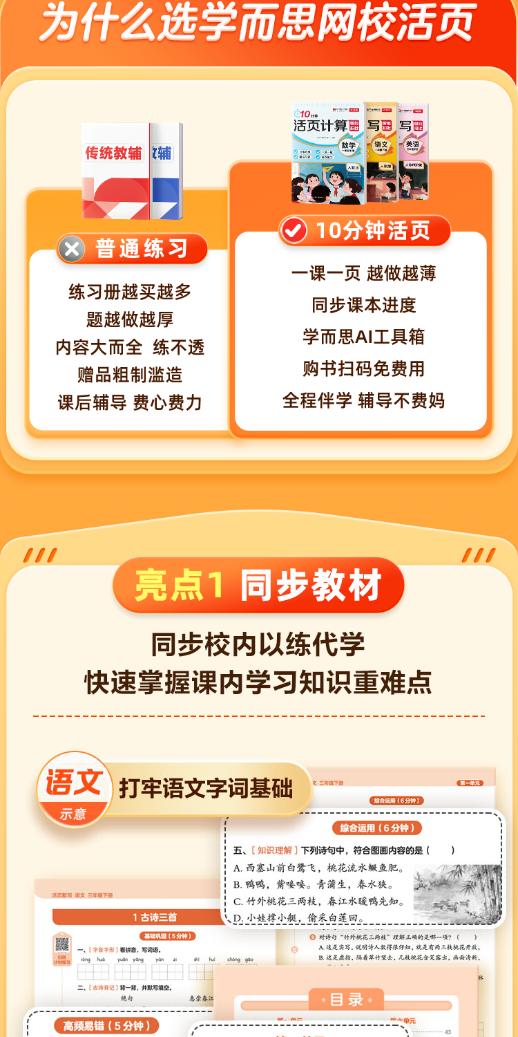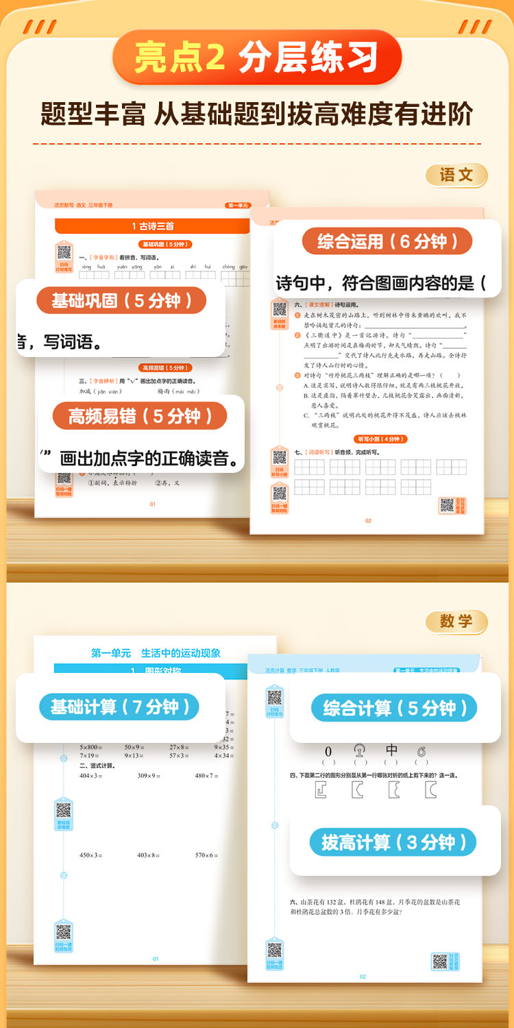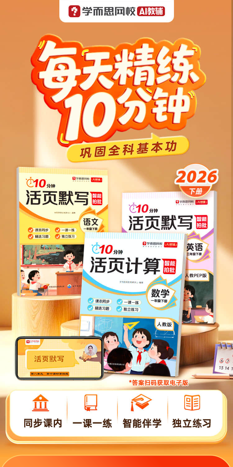 学而思【2026新版】10分钟计算/默写/英语默写活页下册 小学一到六年级数学方法精讲 语文校内同步课文 英语外教原声音频-WX 语文默写活页(单本)-人教 一年级下