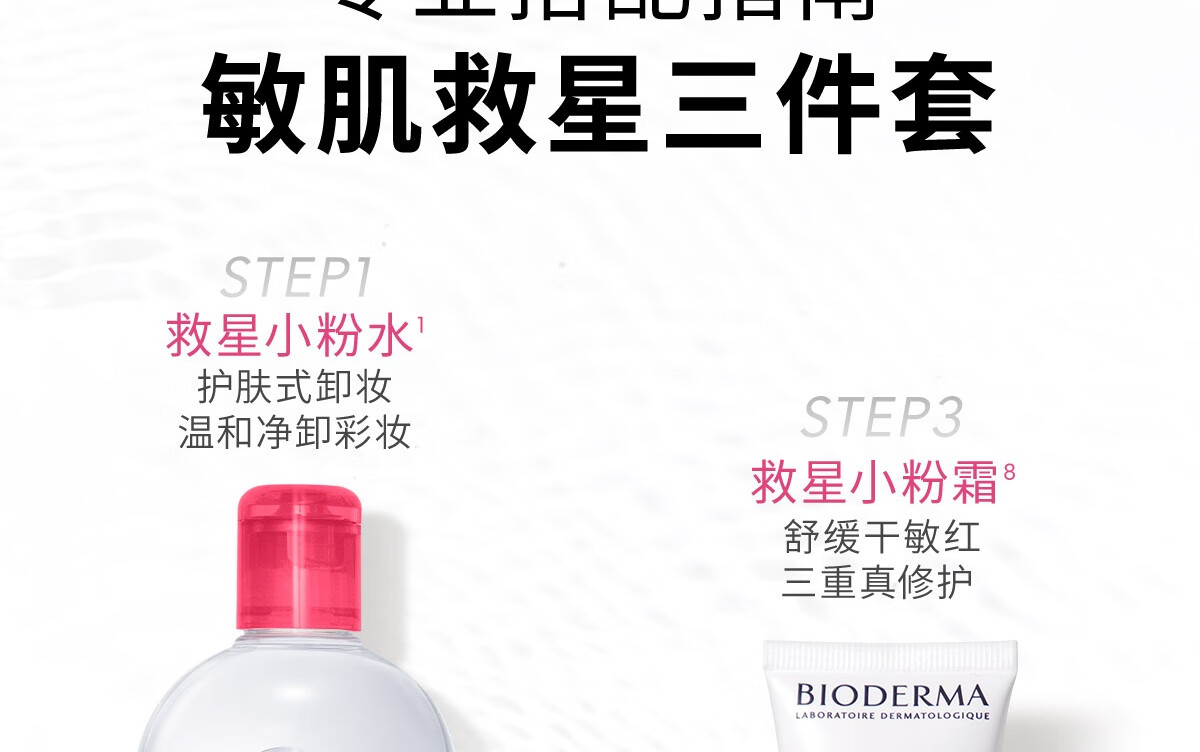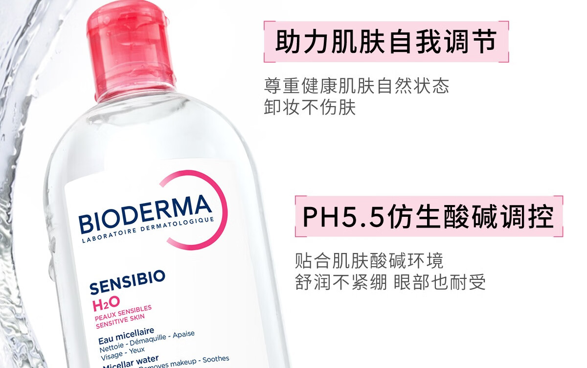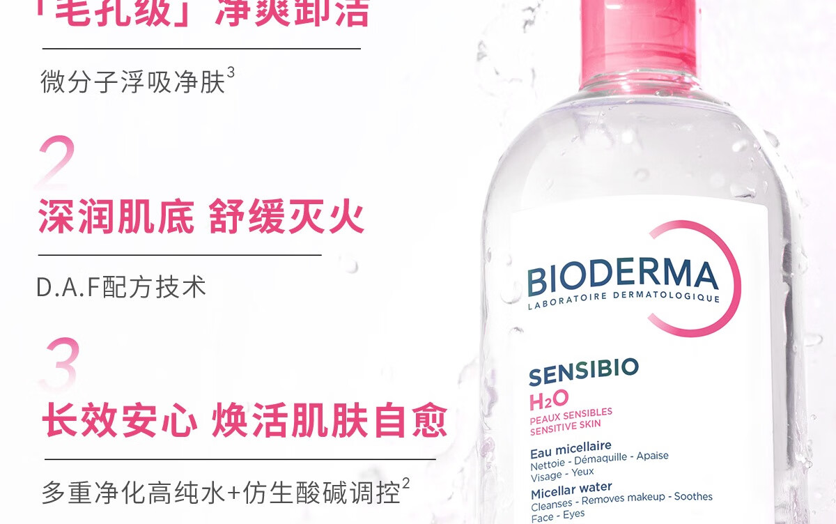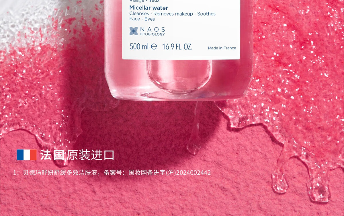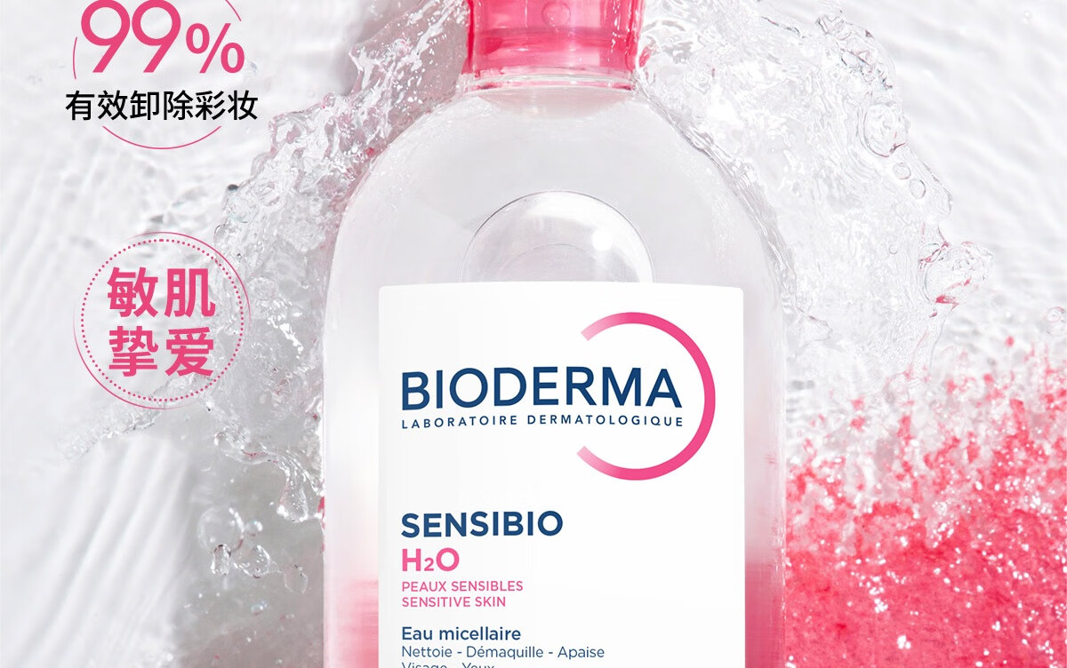 贝德玛(BIODERMA)粉水500ml舒妍多效洁肤液卸妆敏感肌卸防晒【新老包装随机发货】